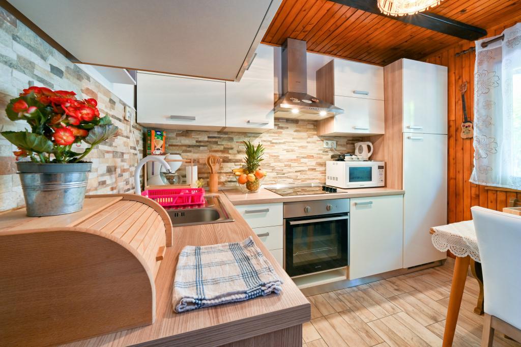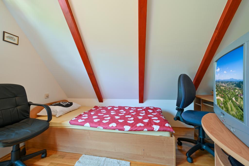 Feriehus Rukova Hiža Rukova Hiža er indrettet som en kombination af fortid og nutid, den nederste del er renoveret i gammel stil, mens loftet er indrettet i nutidens stil med moderne møbler og materialer, noget for enhver smag. Overnatning til 4 personer i tre værelser (+ barneseng). Der er fuldt udstyret køkken. Badeværelse + ekstra toilet Gratis wi-fi, IPTV. Der er grill i gården og to terrasser. Huset består af en stueetage, hvor der er et badeværelse, et køkken og en stue med et rummeligt bord, der kan rumme ti personer, mens der på loftet er tre soveværelser og et badeværelse. Værelserne har en dobbeltseng, to senge og en barneseng. Alle værelser er udstyret med sengelinned, tv-modtager, wi-fi-signal. I umiddelbar nærhed af Terme Jezerčica og Terme Stubičke toplice Gupčeva hytte Den levende ærkebiskop af Gupčeva lipa Kapel af St. Cross Gupčeva lipa Museum og slot En mand behøver meget lidt for at være lykkelig, og det er mærkeligt, hvor lidt han har brug for så ofte
