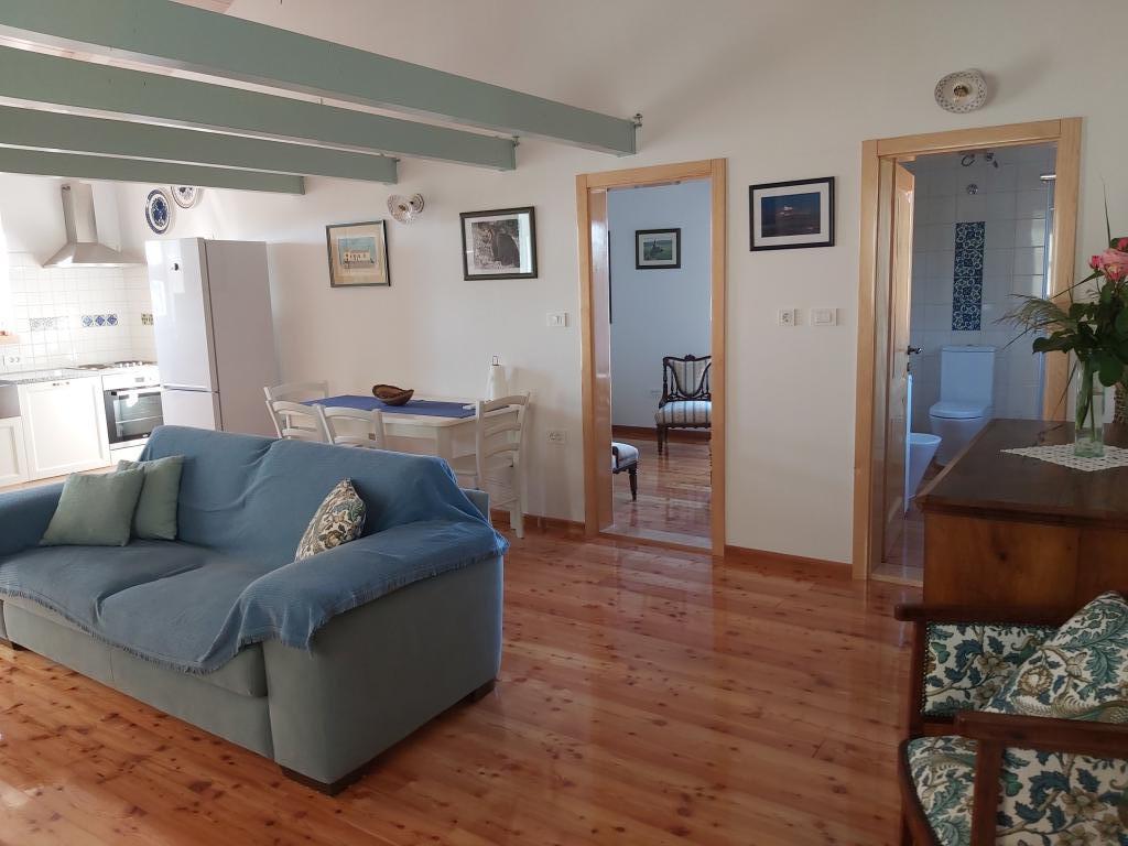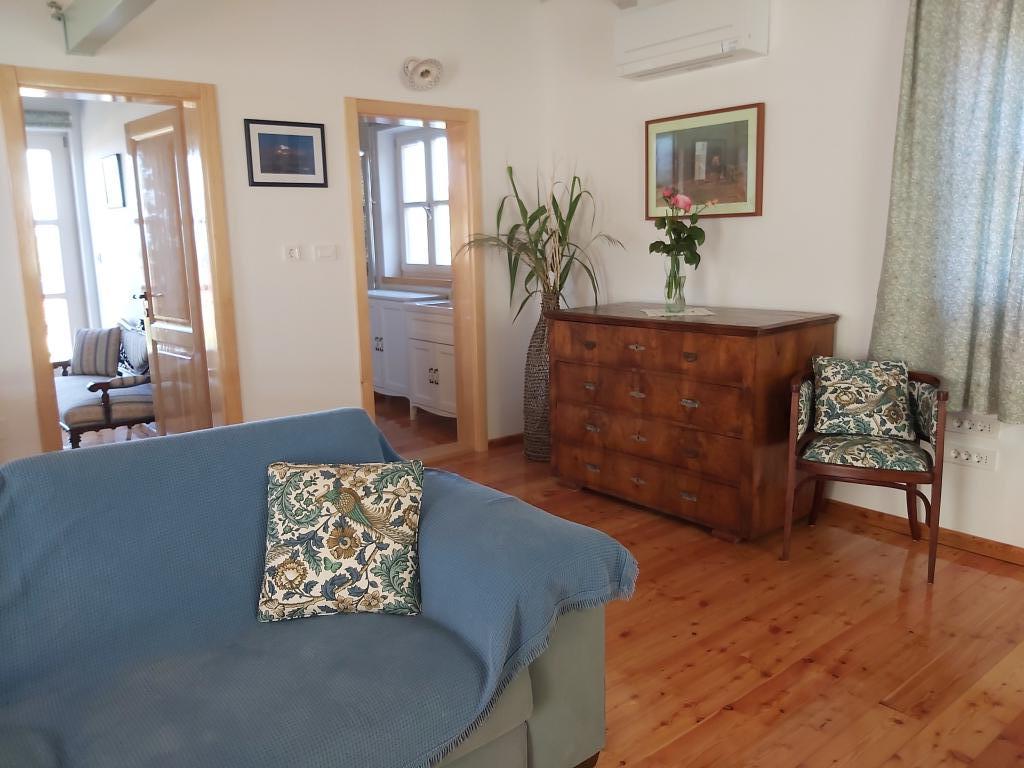 Selvom vores hus ligger 5 minutters gang fra centrum af den idylliske by Ilovik, er det specielt og et besøg værd. Den eneste inden for gården har vi en rummelig, luksuriøst indrettet lejlighed kategoriseret med 4 solsenge, som du ikke let finder på øerne. Trægulve, en kombination af moderne og antikke træmøbler, som vi for det meste gendanner os selv, vil overraske dig med deres komfort og skønhed. Fra soveværelset har du en smuk udsigt over hele havnen og de omkringliggende øer Sv. Peter og Orjule. Og vigtigst af alt, om natten har du stilhed og udsigt over stjernehimlen. Lejligheden opfylder alle moderne menneskers ønsker, men tilbyder også mere end det. Vi er forfattere til en monografi om Ilovik, her kan du finde ud af alt hvad du behøver at vide om øens historie, natur, skikke, der er et stort bibliotek til din rådighed. Vi er dyreelskere, vi opdrætter får og geder, som du kan hænge ud med, såvel som vores hunde, katte, ænder (vi er trods alt en gård!). På den store overdækkede terrasse kan du bruge et stort træbord.