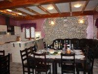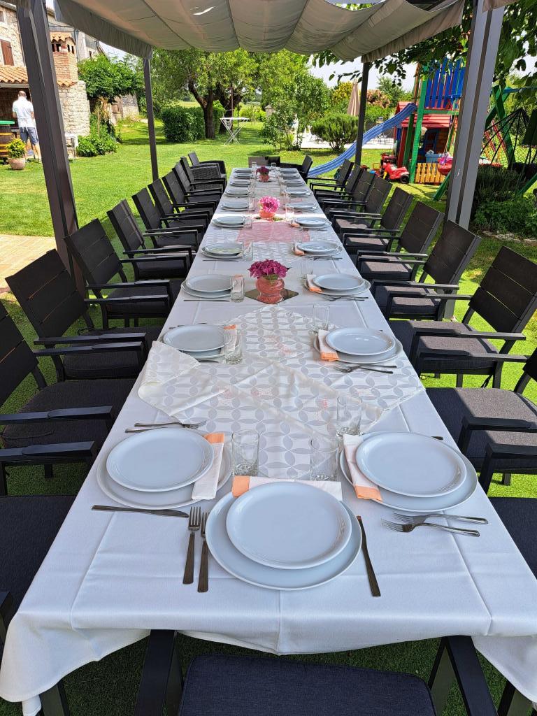 Traditionel istrisk arkitektur er blevet bevaret, med tilføjelse af dele i en mere moderne stil, hvilket resulterer i en rustik bygning, der emmer af tradition og opfylder de moderne krav fra nutidens gæster. I stueetagen er der landdistriktsturisme, hvor gæsterne kan nyde morgenmad eller halvpension. Til morgenmad tilbyder vi autoktone delikatesser, primært egen produktion af diverse syltetøj, brød, pålæg, oste, yoghurt, frugt, søde desserter, vi tilbyder også bio morgenmad, samt morgenmad efter særlige behov. Til middag tilbereder vi typiske istriske retter (diverse fuji-pasta, gnocchi, ravioli, lasagne med forskellige saucer og gryderetter, og forskellige kødfade med vores produkter, ost, prosciutto). I landturismen er der en smuk pejs, et rum til socialt samvær og hvile, som især i vinterperioden vil forstærke denne stemning med værternes gæstfrihed. Udover gæster på overnatning i vores landturisme, accepterer vi også annoncerede grupper på op til 30 personer til alle lejligheder.