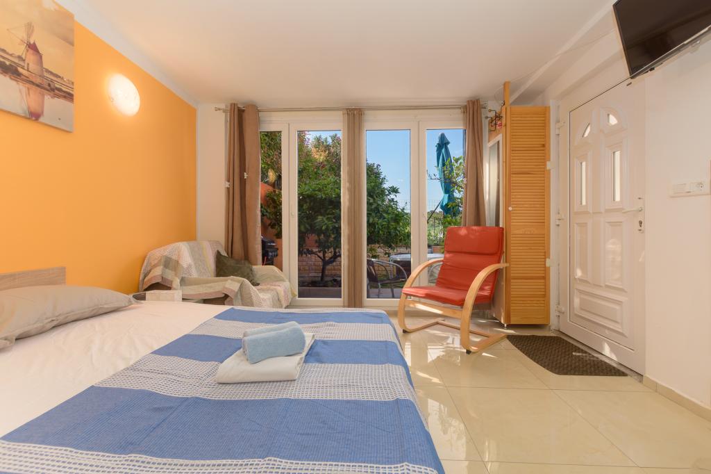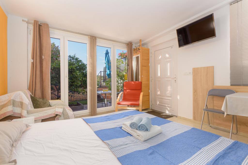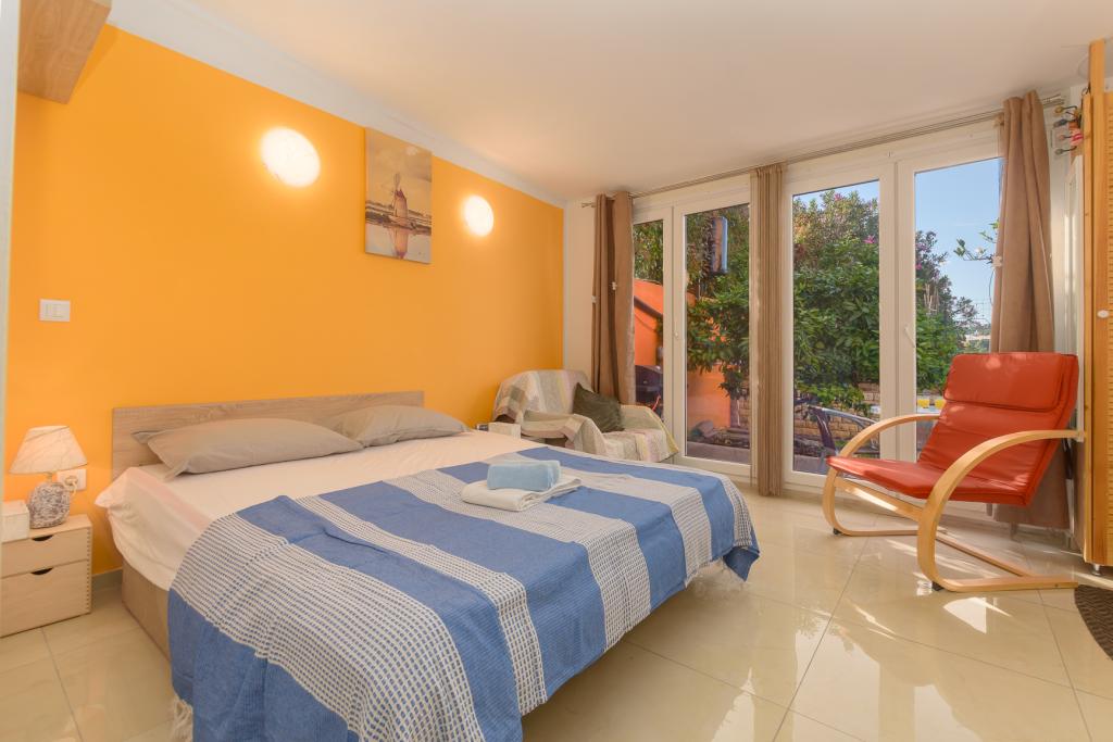 Moderne udstyret studielejlighed (2+1) første række til havet i et meget roligt turistområde som et separat hus. En lille terrasse med grill, udendørs bruser og udsigt over havet fra terrassen. Den har sit eget fortelt for et behageligt ophold i skyggen. Butikken og restauranten ligger 1000 meter væk, og den første strand ligger 300 meter væk. Parkering i nærheden af bygningen er gratis. Du kan nyde morgen- og aftenture langs havet til Del Mar Hotel og tilbage. Længere i nærheden ligger Kamenjak-Premantura nationalparken i en afstand af ca. 4000 meter.