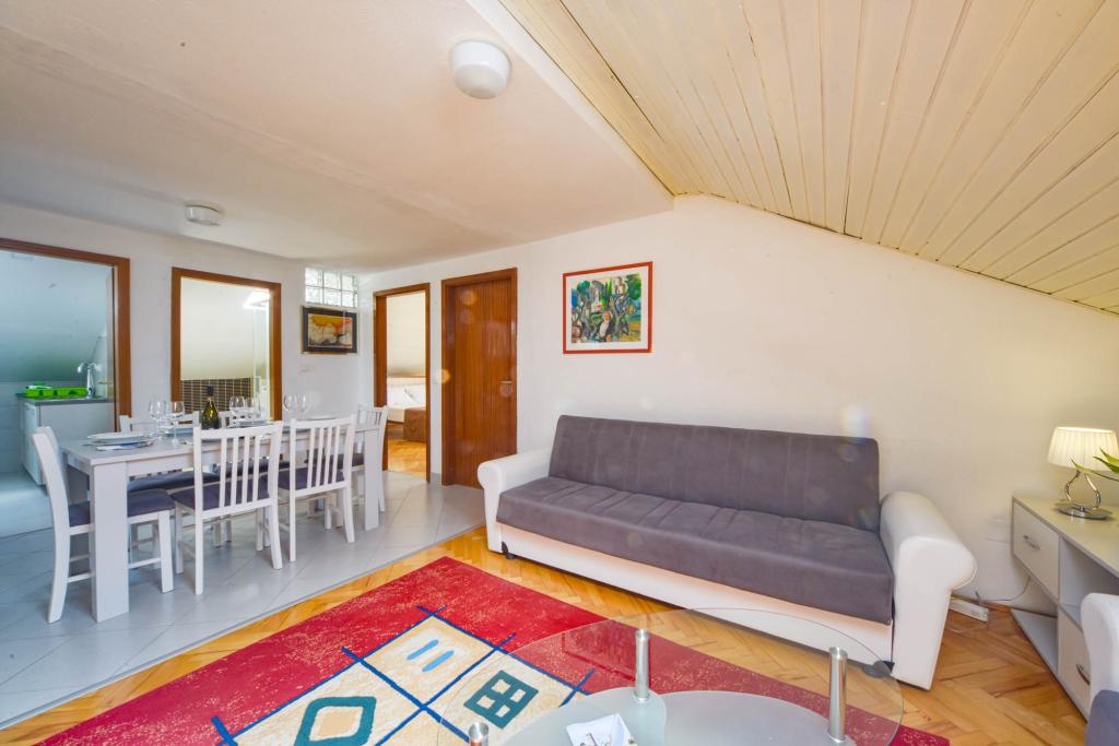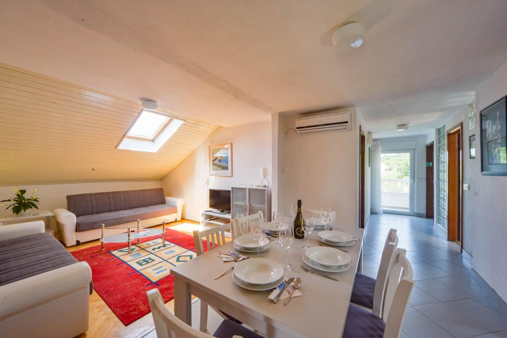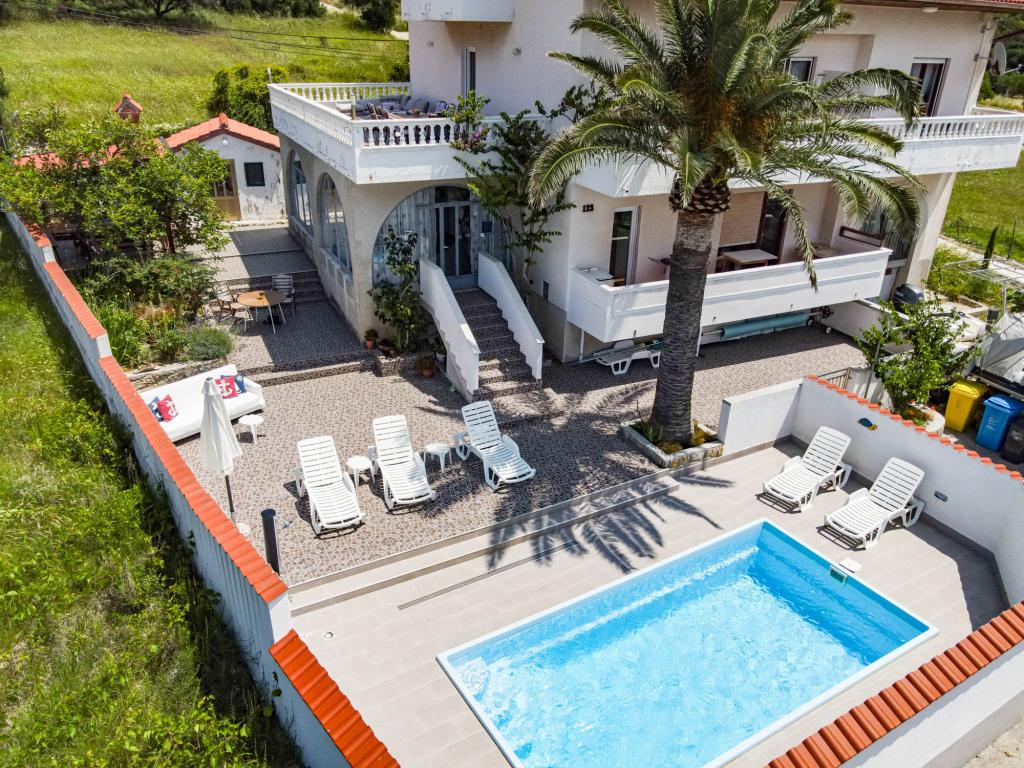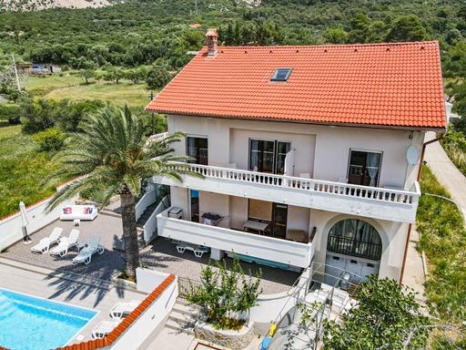 Fuldt udstyrede rummelige lejligheder med udsigt over Barbat-kanalen og St. Damjan (resterne af en byzantinsk spejderfæstning fra det 6. århundrede), med rigelig udendørs plads til, at forskellige grupper kan have deres eget privatliv enten på den rummelige terrasse, poolen eller det skyggefulde lysthus ved siden af grillhuset. Huset er også velegnet til komplet familieudlejning (12 personer). Børn og kæledyr er velkomne. Det ligger mindre end 5 minutters gang fra strandpromenaden med strande, restauranter og caféer - 300 m.