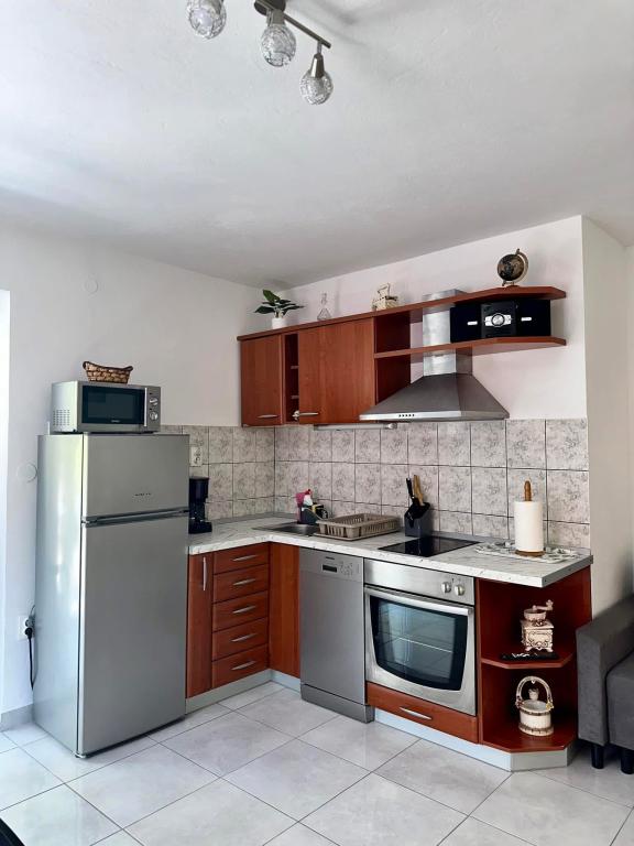 Vi tilbragte 10 vidunderlige dage i hr. Aurelio Vrankovićs lejlighed, og vi nød det virkelig! Beliggenheden er fredelig og smuk, med en udsigt som fra en drøm. Havet er i utrolige farver, meget rent. Lejligheden er fremragende udstyret (vaskemaskine, opvaskemaskine, kaffemaskine, brødrister, mikrobølgeovn, komfur, rummeligt køleskab, grill og parkering). Alt var rent og pænt. Hr. Aurelio er utrolig venlig og interessant. Han arrangerede uforglemmelige bådture for os. Vi var især begejstrede for, at der boede skildpadder i haven, og at værten gav børnene til opgave at fodre dem, et rigtigt lille eventyr. Beliggenheden er perfekt, rolig, men kun 10-20 minutters kørsel fra de større steder på øen. Kan varmt anbefales til en fredelig og afslappet ferie!