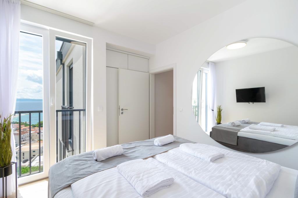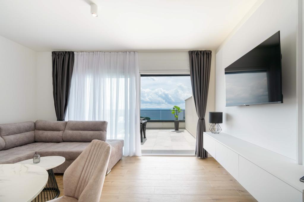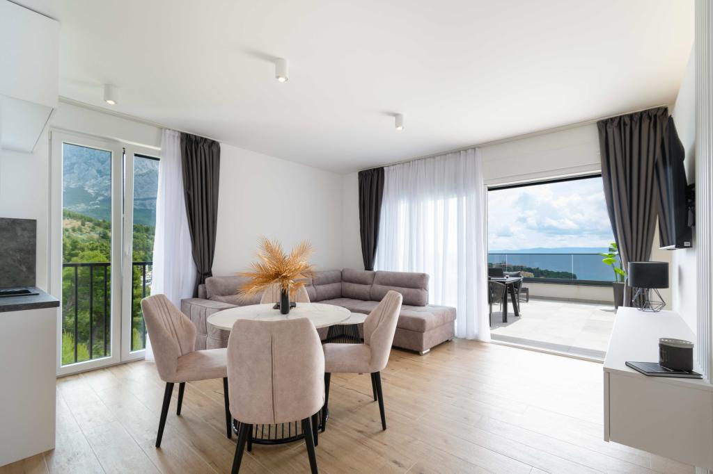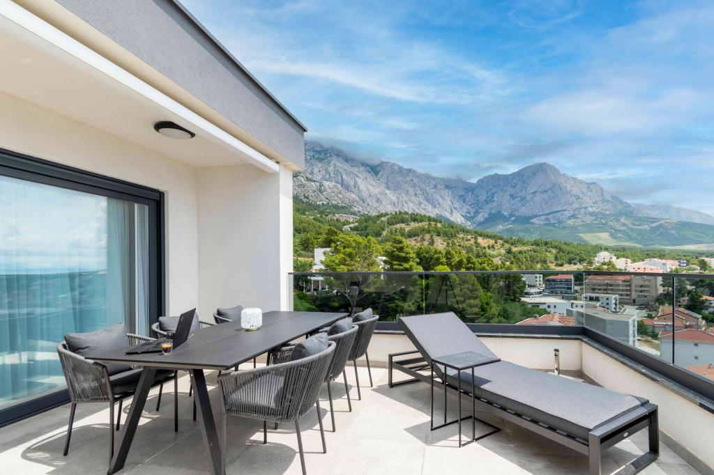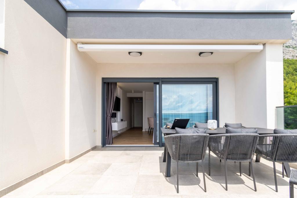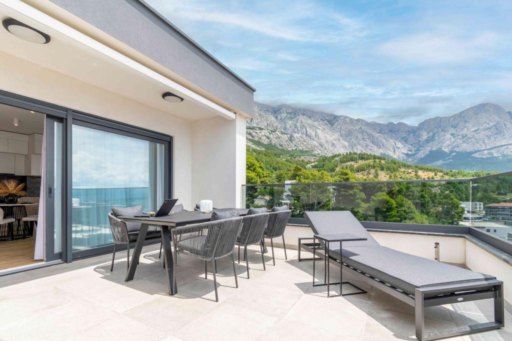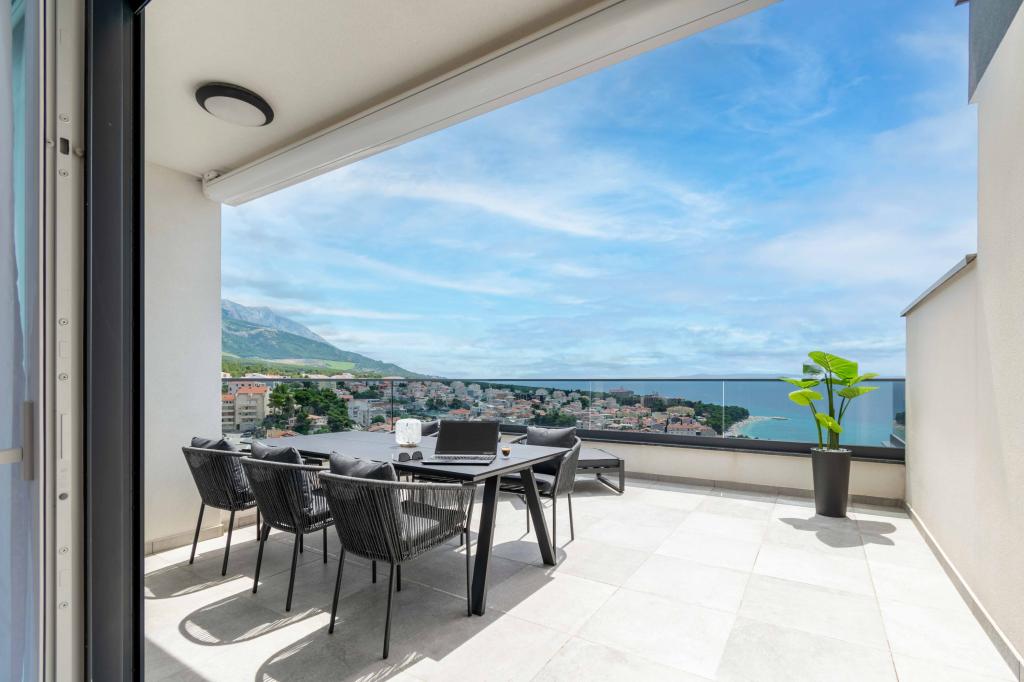 Apartment Sky tilbyder speciel indkvartering med en uforglemmelig udsigt over havet, Brač og Baška Voda. Denne moderne lejlighed består af 1 soveværelse, opholdsstue med sovesofa og stor terrasse med siddemøbler og liggestole. Du har en privat parkeringsplads bag huset.