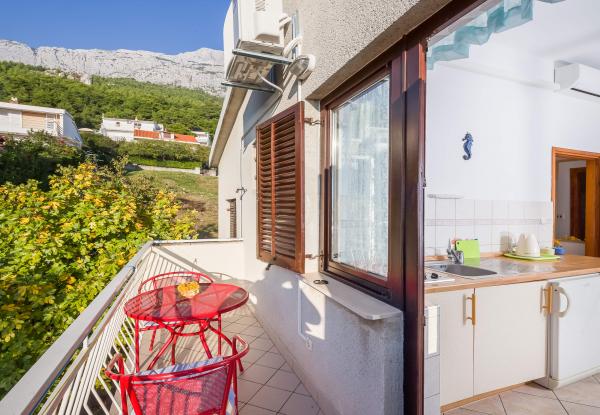 Lejligheder Jurišić er beliggende i den vestlige del af Baška Voda, ideel til en fredelig ferie. De ligger tæt på havet og stranden. Der er tre lejligheder på tilbud. På første sal er en lejlighed til 7-8 personer, på anden sal er der to lejligheder til 2-4 personer. Hver lejlighed har udsigt over havet og bjergene.
