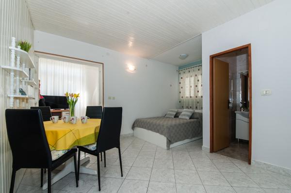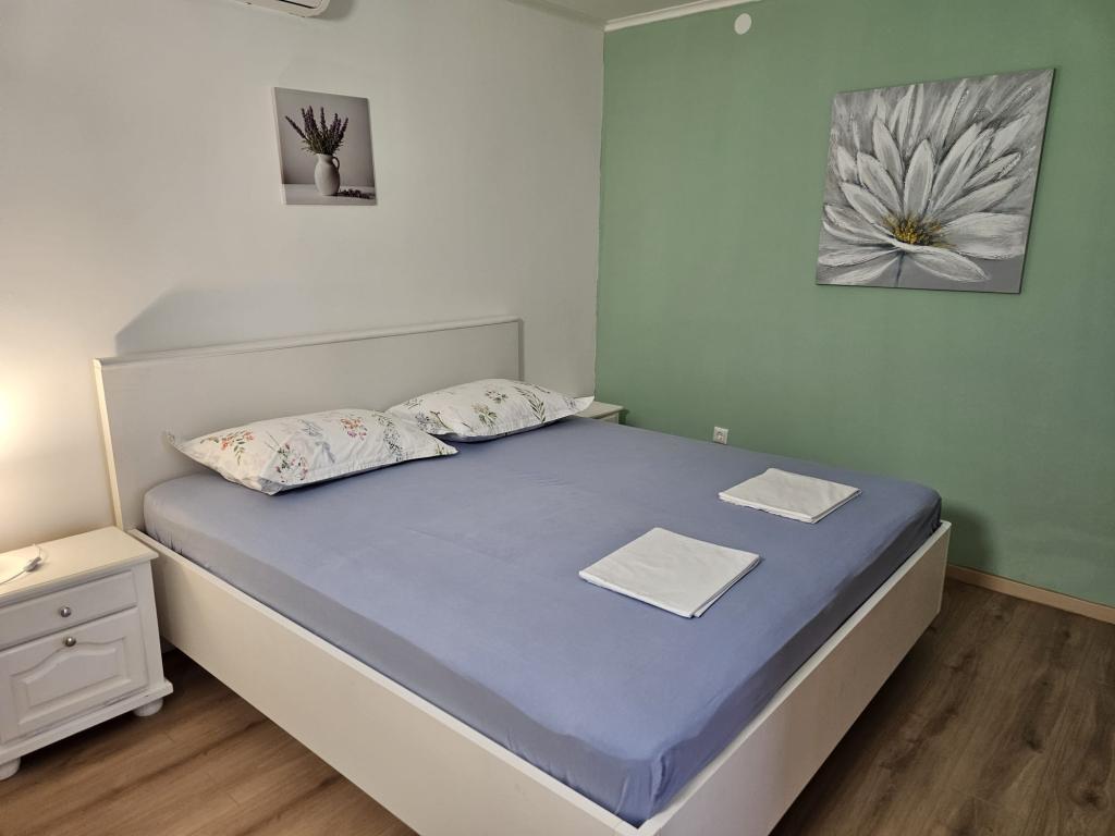 Vores hus ligger i en rolig del af Baska Voda. Det består af tre lejligheder med separate indgange. Huset kan lejes hele eller hver lejlighed separat. Hver lejlighed har en parkeringsplads. Hver lejlighed har aircondition og har trådløs internetadgang. Vi er opmærksomme på renlighed og ryddighed, især i dagens situation med COVID-19-virus, efter at hver gæst er desinficeret. Velkommen! Hilsen fra Baška Voda!