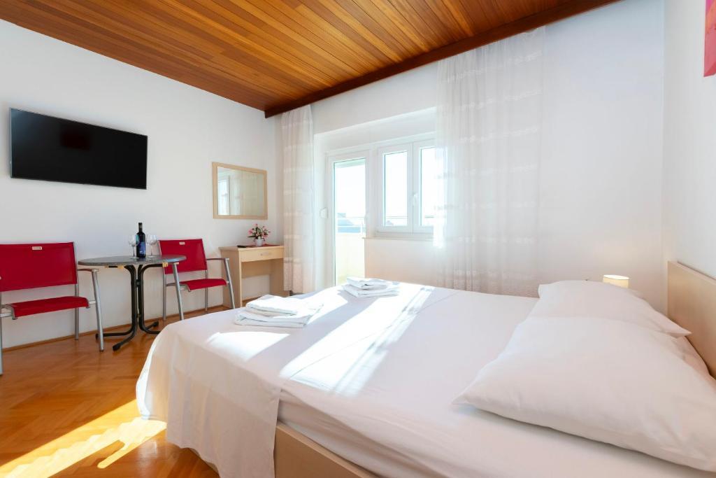 Turistskat er inkluderet i prisen.Vi opholdt sig i et studio lejlighed +1. Lejligheden er den samme som vist i fotografierne .. Vi er rigtig glade og behageligt overrasket af tjenesten .. Lejligheden var meget rent og ryddeligt. Sheer og lyse. Alle ros for lejligheden og dens vedligeholdelse. Ejerne, udlejer og værtinden er meget tilgængelige, ikke påtrængende, de vil altid hjælpe dig, hvis du har brug for noget ... altan i lejligheden var smuk, udsigten fra det er en fortryllende og magisk. Vi nød nat brugt på det .. Baska Voda er et smukt sted, et sted med sjæl, afslapning for krop og sjæl. Så rolig og fredelig ... Vi er glade og begejstrede .. anbefale til alle, Baska Voda og Villa Ancora, du vil ikke fortryde det!