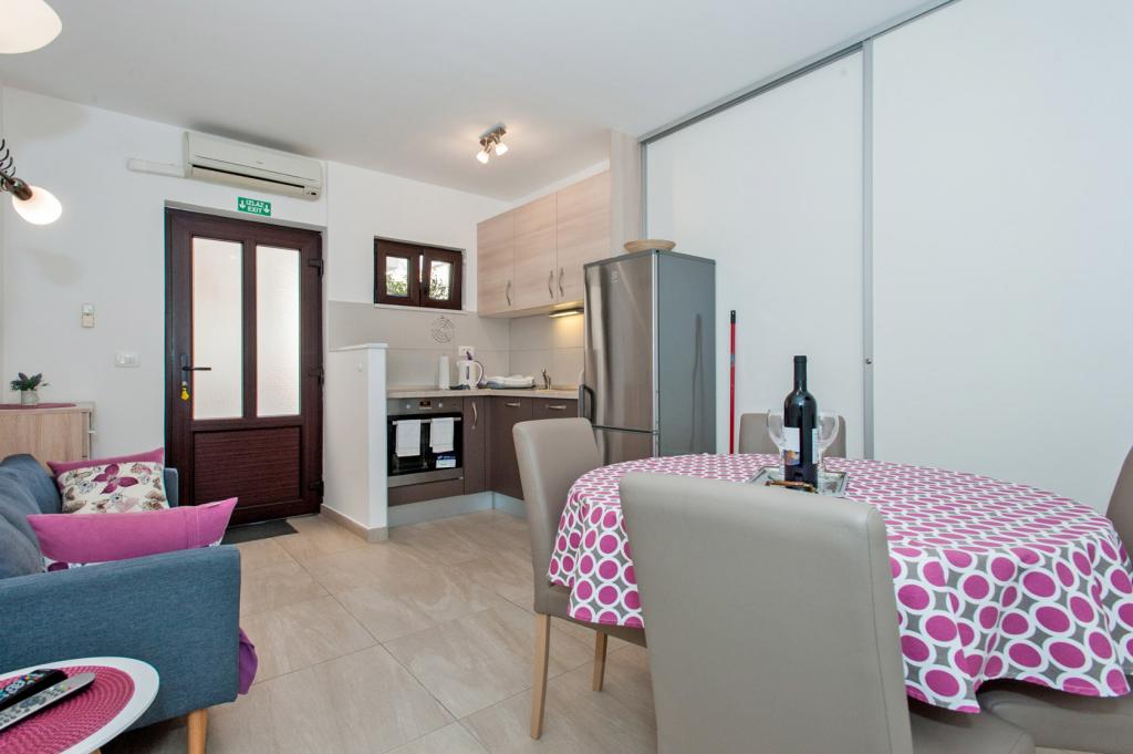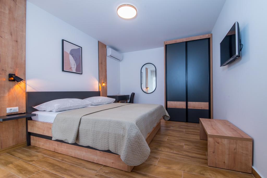 I vores hus tilbyder vi komfortable lejligheder med 2-7 senge. Alle lejligheder er udstyret med køkken, aircondition og satellit-tv. Vi er beliggende i en rolig del af byen, kun 100 meter fra havet og sandstranden. Restauranter og butikker er let tilgængelige og organiserede udflugter til øerne og bjergene. Motorvejen ligger 20 km derfra.