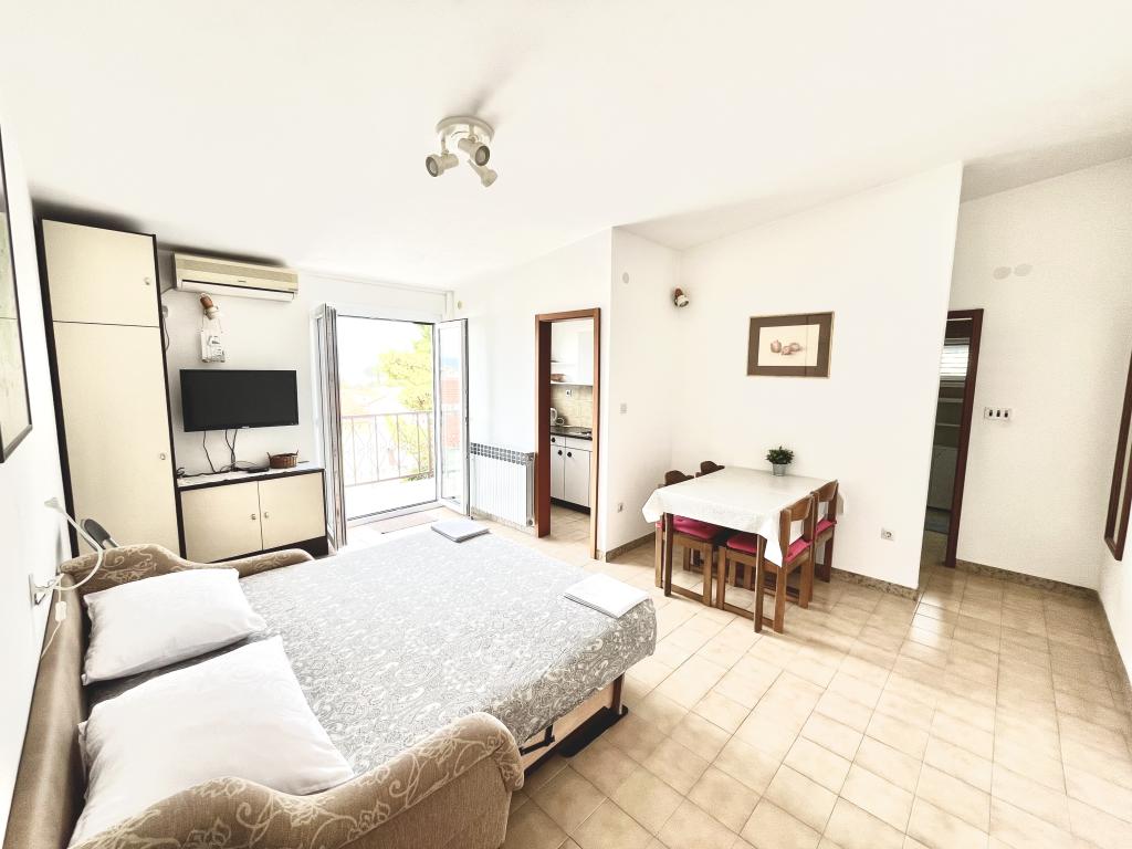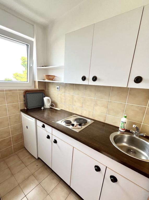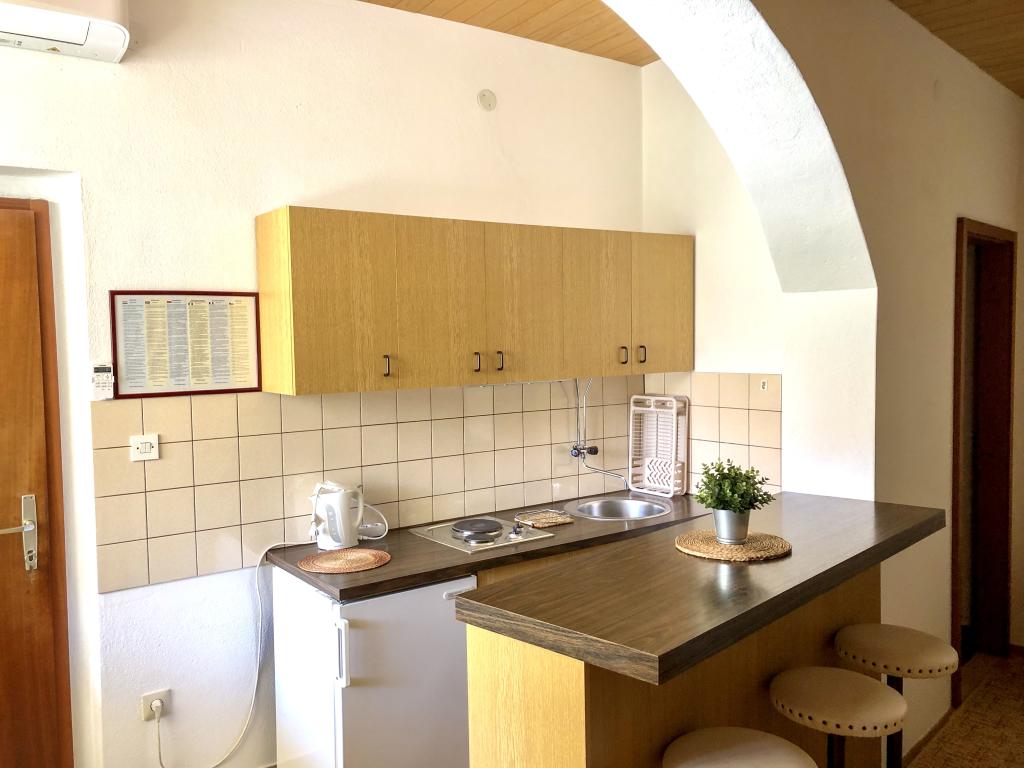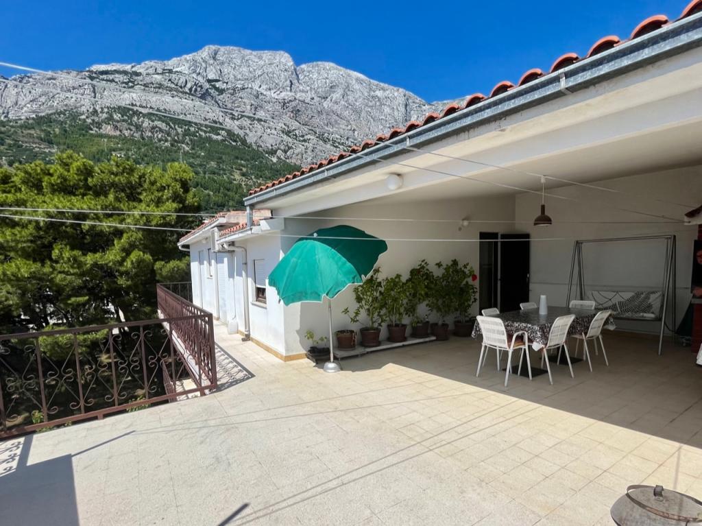 Velkommen til vores familiehus i en rolig del af centrum af Baška Voda, lige ved siden af fyrreskoven og kirken St. Lovre. Huset ligger 2 minutters gang fra havet og stenstranden og byder på en smuk udsigt over bjerget Biokovo og øerne Brač og Hvar. Lejligheden i stueetagen er ideel til et par med børn eller to par. Det omfatter et køkken, et hovedsoveværelse med badeværelse og et separat værelse med eget badeværelse, hvilket sikrer ekstra privatliv og komfort. Terrassen byder på udsigt over vores have og den nærliggende fyrreskov og er perfekt til morgenkaffe eller aftenafslapning. Lejligheden på anden sal byder på en ekstraordinær åben udsigt og er ideel til et par med børn eller bare et par. Det har et separat køkken, en stue med en stor sovesofa, et soveværelse og et badeværelse. Den store terrasse er et ideelt sted at nyde privatlivets fred under din ferie. Vi giver vores gæster privat parkering 7 minutters gang fra huset. Kom og oplev vores gæstfrihed og nyd den ideelle beliggenhed for en perfekt ferie i Baška Voda!