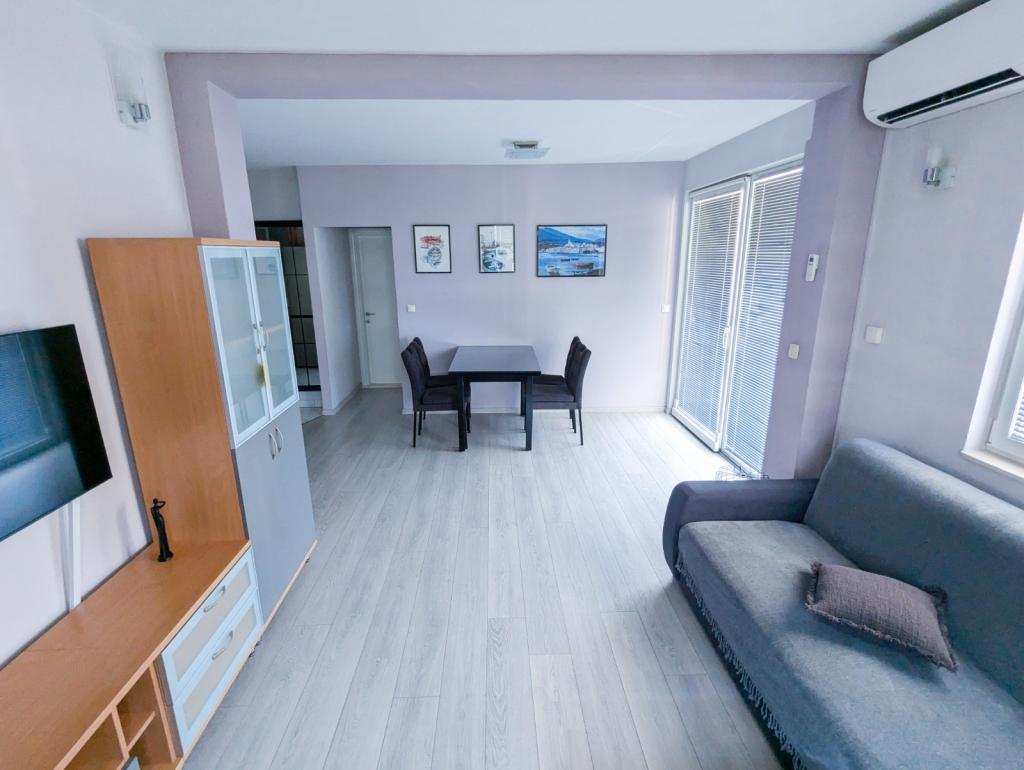 Lejligheden er fuldt udstyret og ligger cirka halvandet til to minutters gang fra stranden.