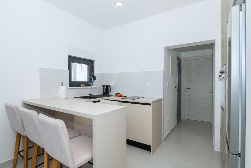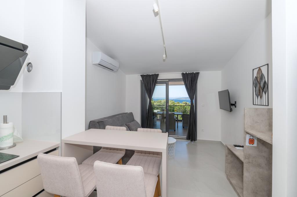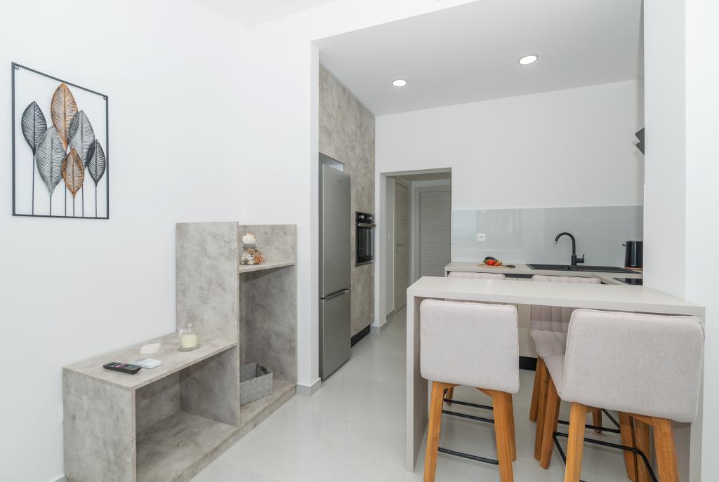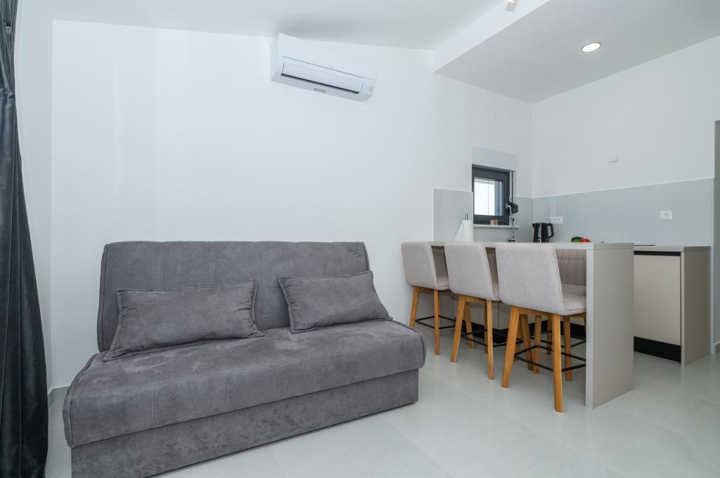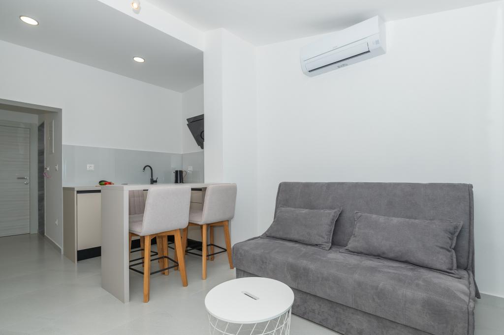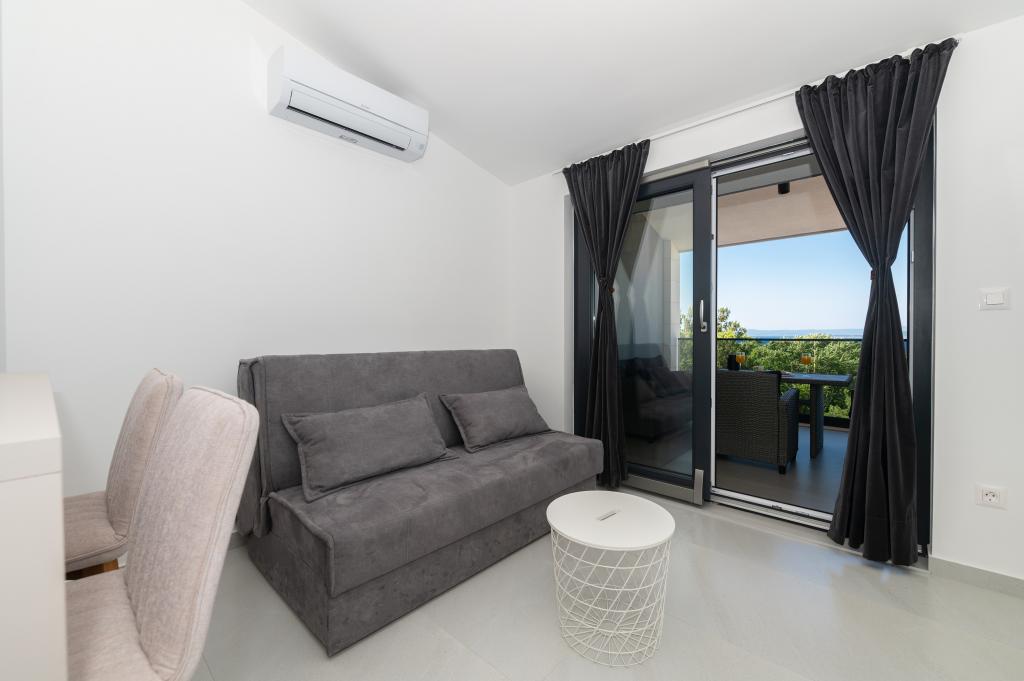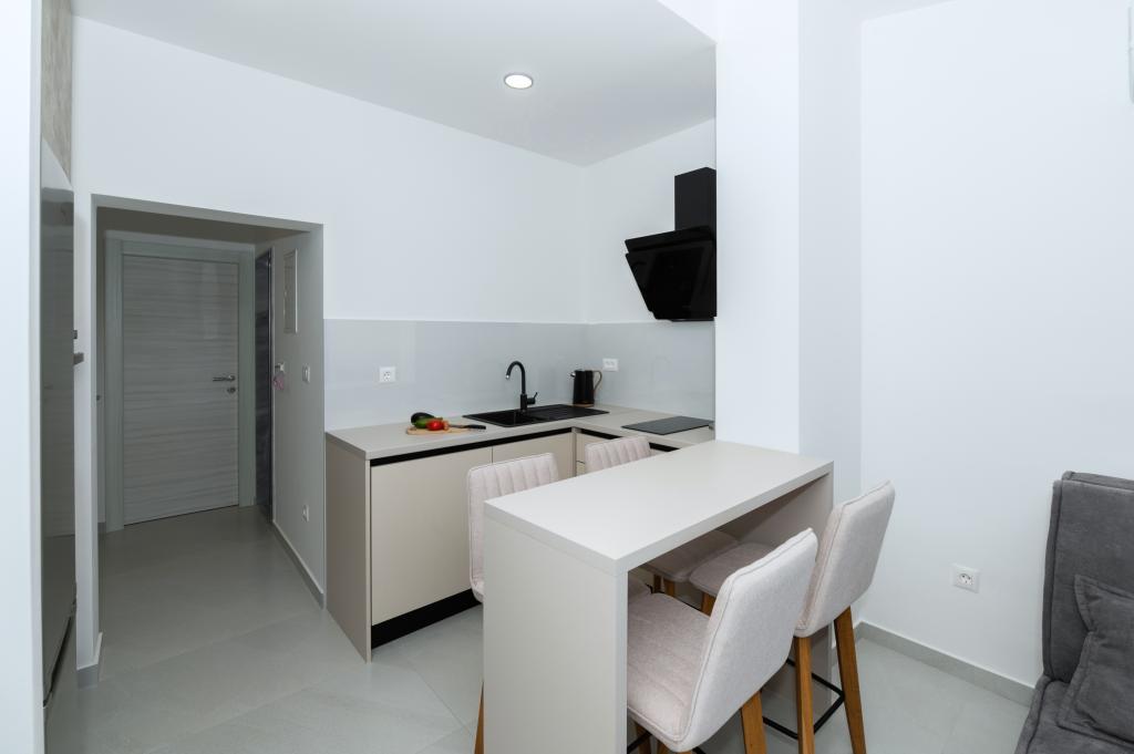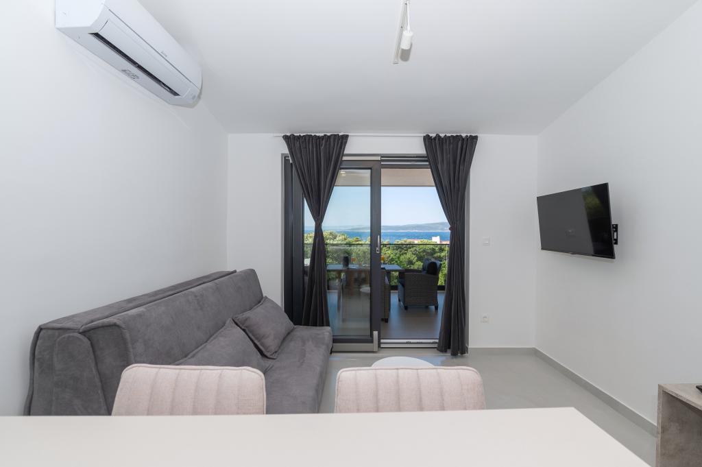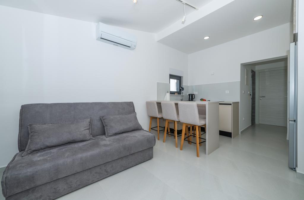 Lejlighederne er moderne udstyret med alle de nødvendige faciliteter for et behageligt ophold. Par eller familier vil ligeså nyde komforten i lejligheden. Terrassen med udsigt over havet er udstyret med siddemøbler. Anlægget er beliggende nær et bageri, et supermarked og har privat gratis parkering. Afstanden fra havet, stranden og alle faciliteter er 500m. Vores gæster er altid tilfredse med tilbuddet og beliggenheden af lejlighederne! Velkomst!