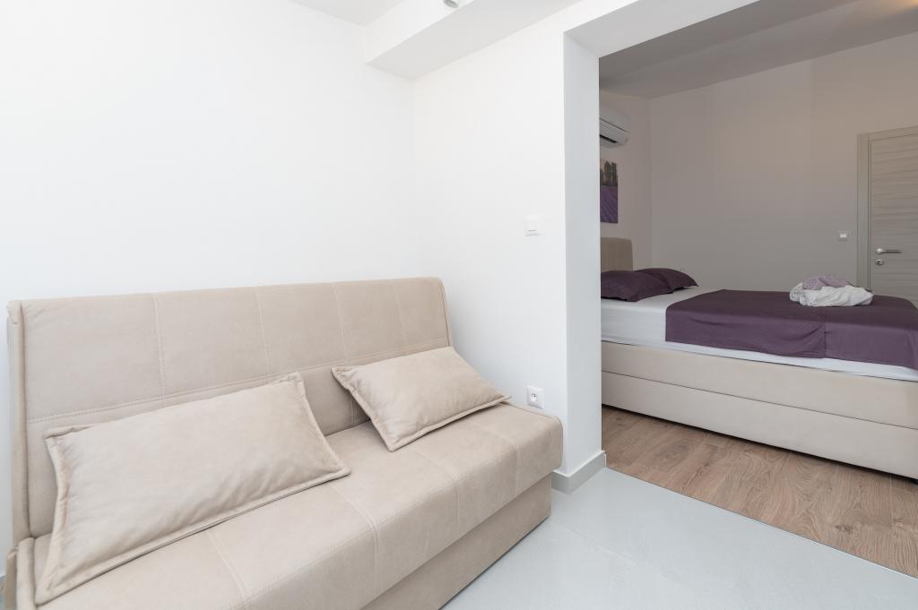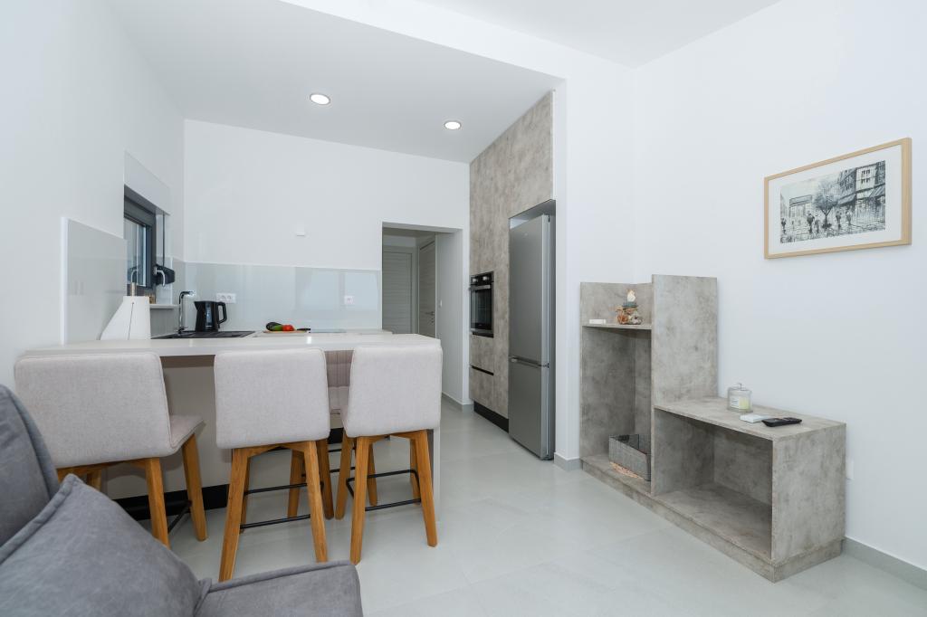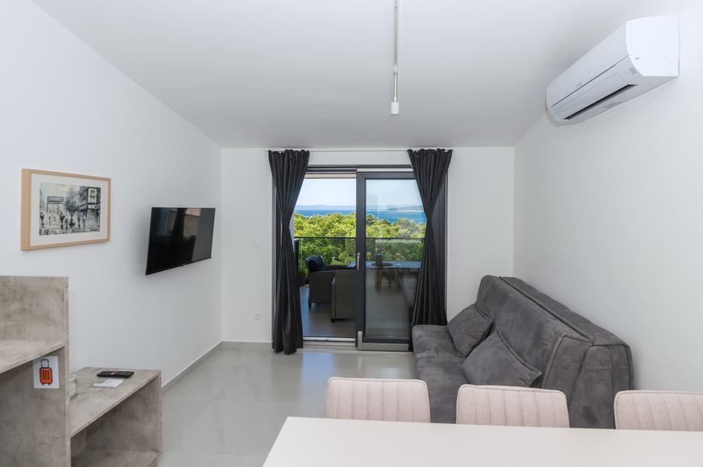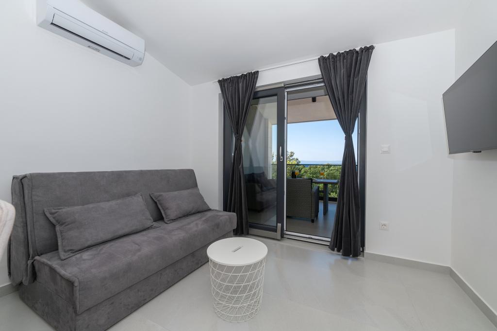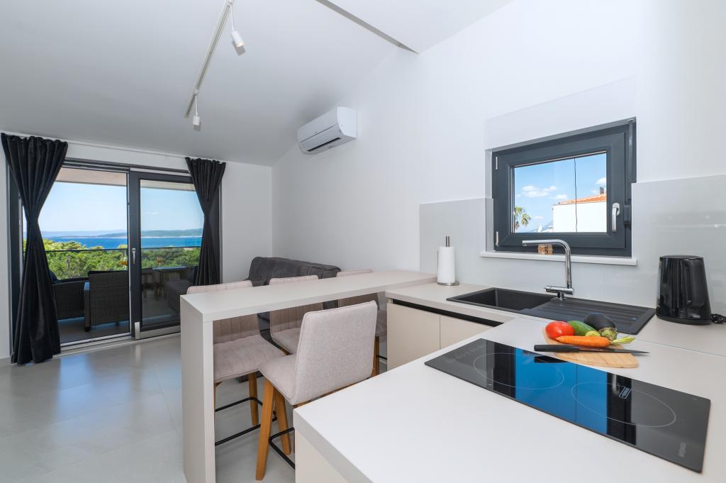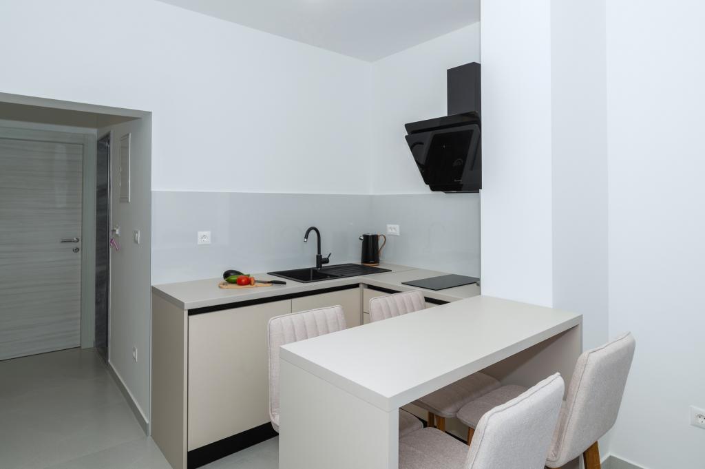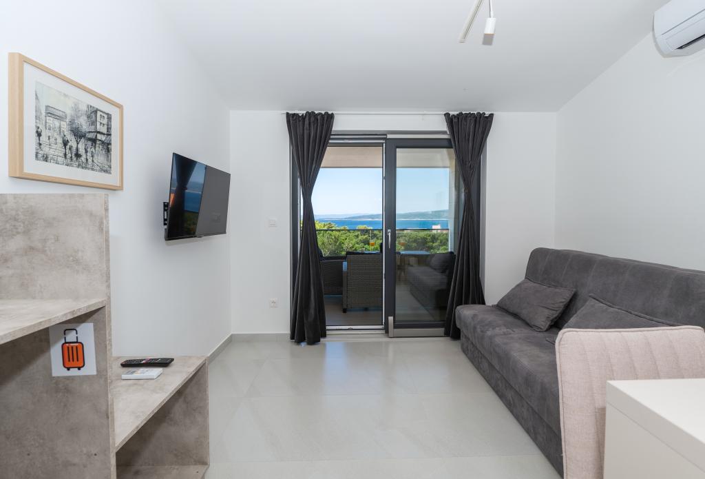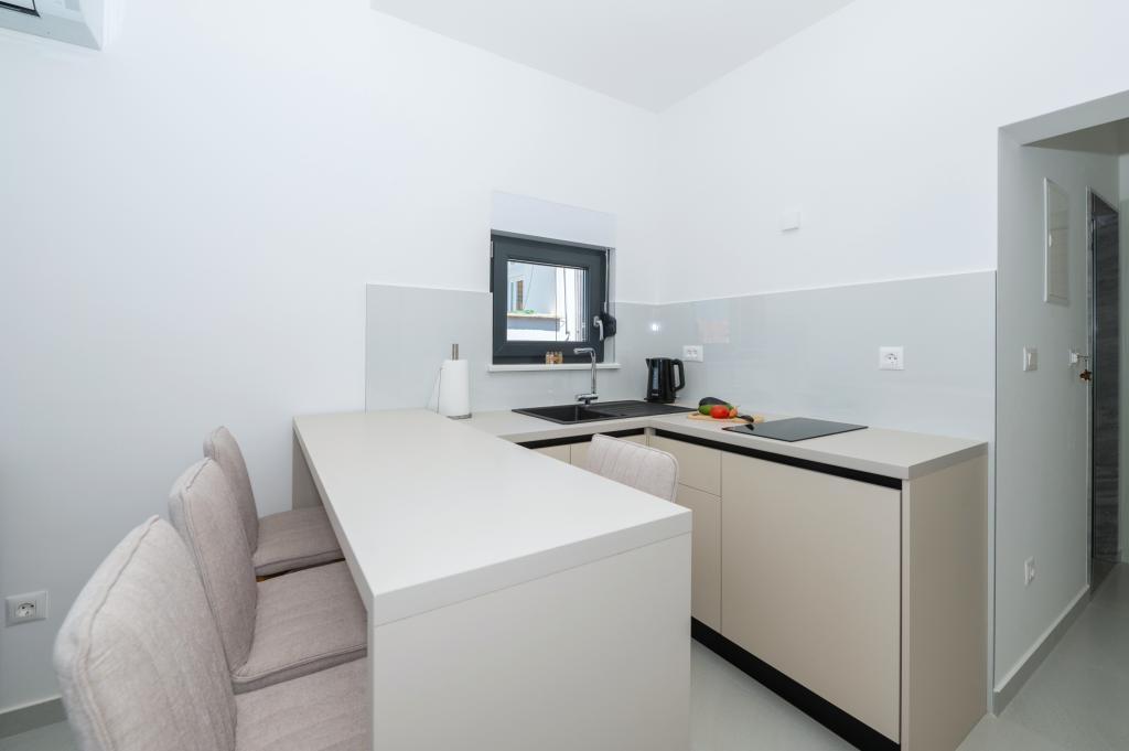 Lejlighederne er moderne udstyret med alle de nødvendige faciliteter for et behageligt ophold. Par eller familier vil ligeså nyde komforten i lejligheden. Terrassen med udsigt over havet er udstyret med siddemøbler. Anlægget er beliggende nær et bageri, et supermarked og har privat gratis parkering. Afstanden fra havet, stranden og alle faciliteter er 500m. Vores gæster er altid tilfredse med tilbuddet og beliggenheden af lejlighederne! Velkomst!