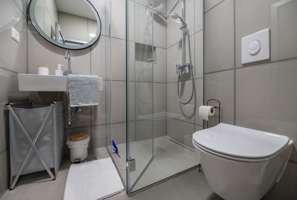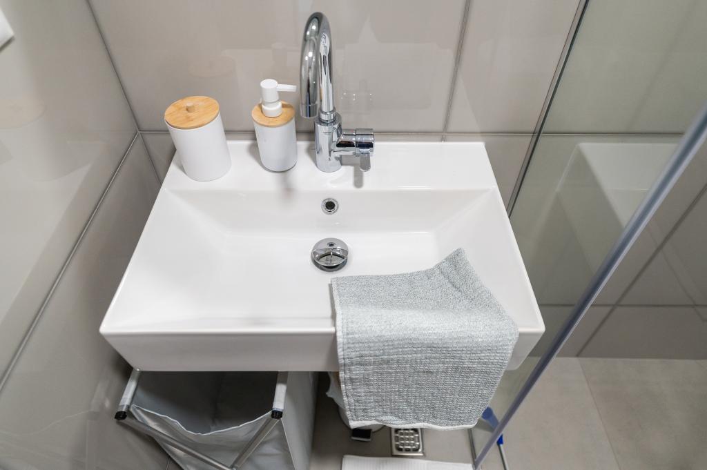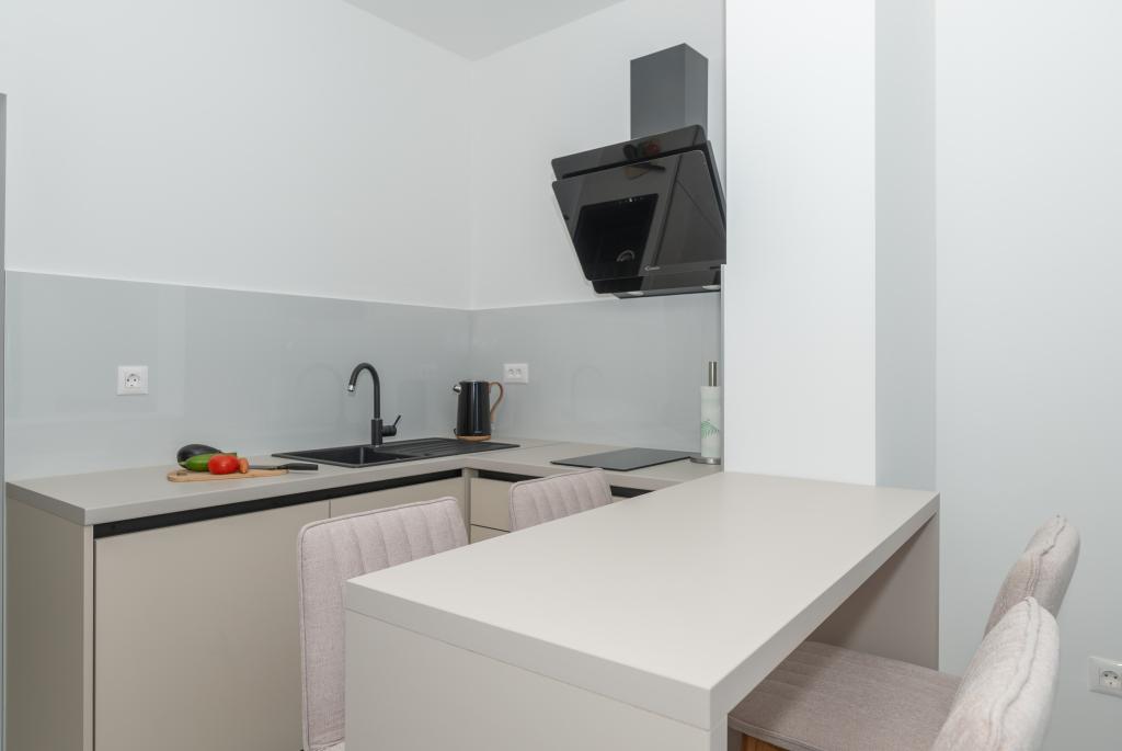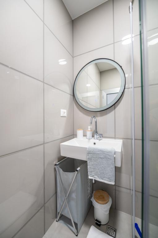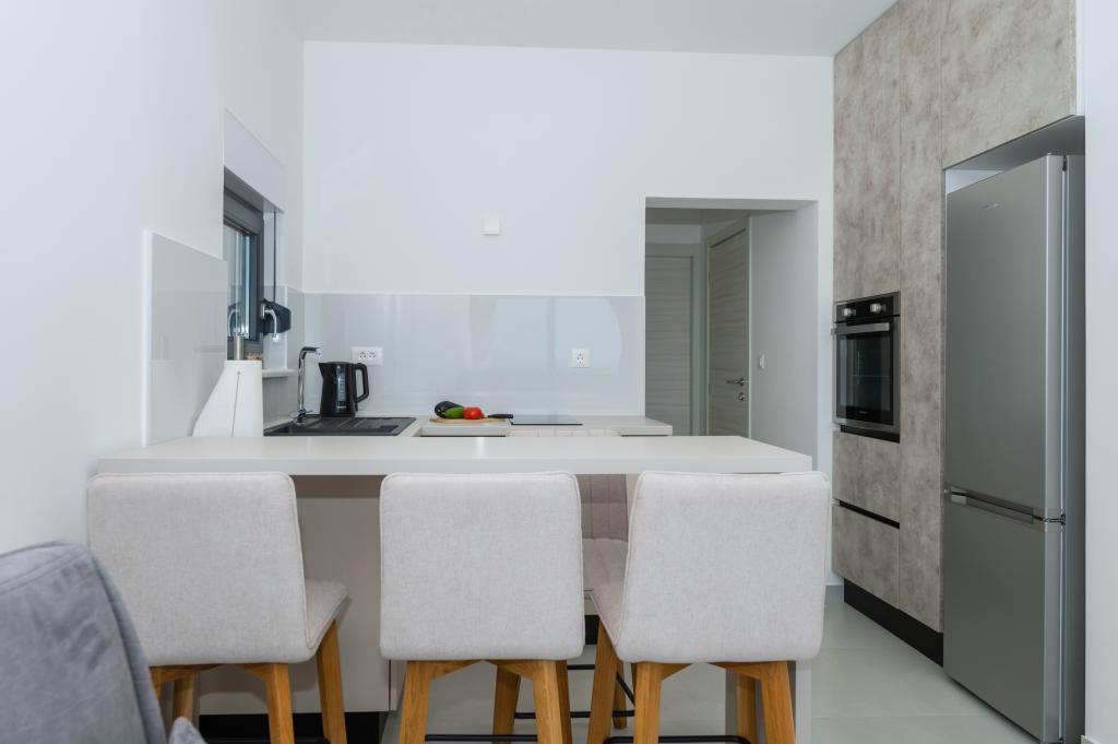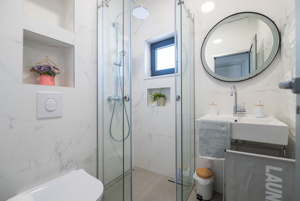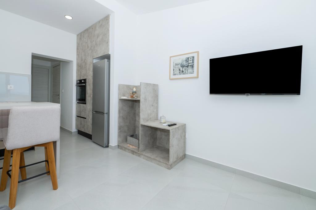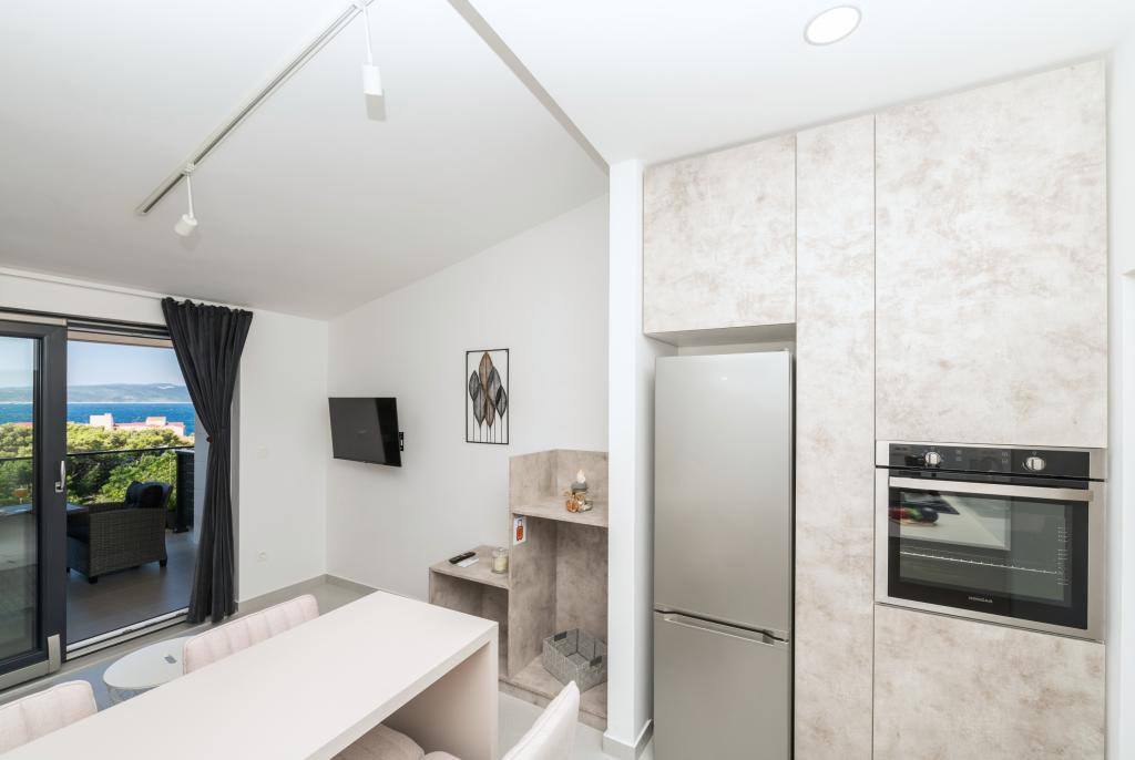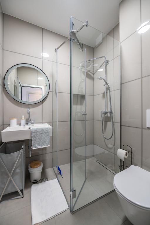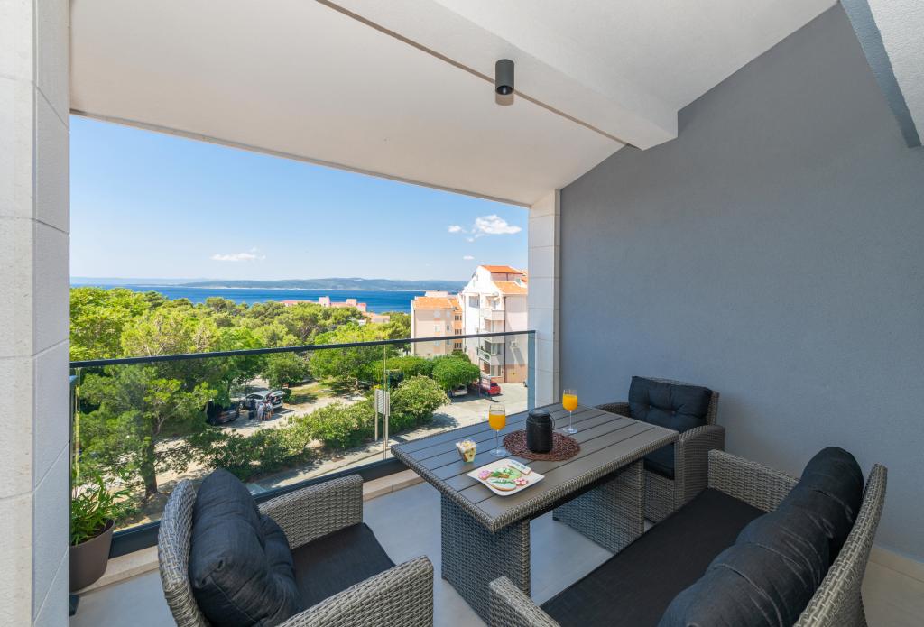 Lejlighederne er moderne udstyret med alle de nødvendige faciliteter for et behageligt ophold. Par eller familier vil ligeså nyde komforten i lejligheden. Terrassen med udsigt over havet er udstyret med siddemøbler. Anlægget er beliggende nær et bageri, et supermarked og har privat gratis parkering. Afstanden fra havet, stranden og alle faciliteter er 500m. Vores gæster er altid tilfredse med tilbuddet og beliggenheden af lejlighederne! Velkomst!