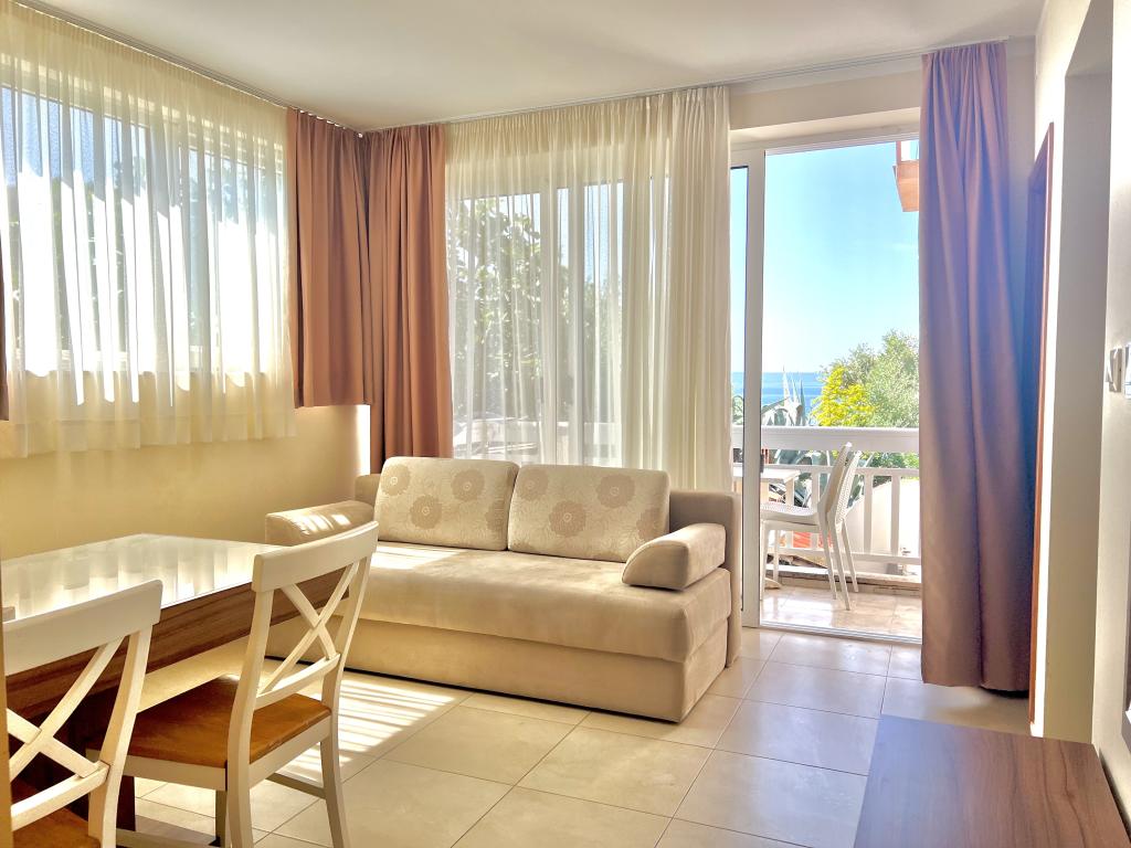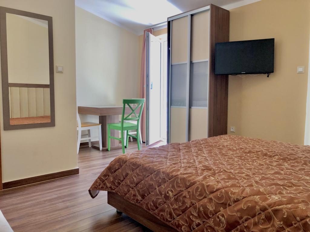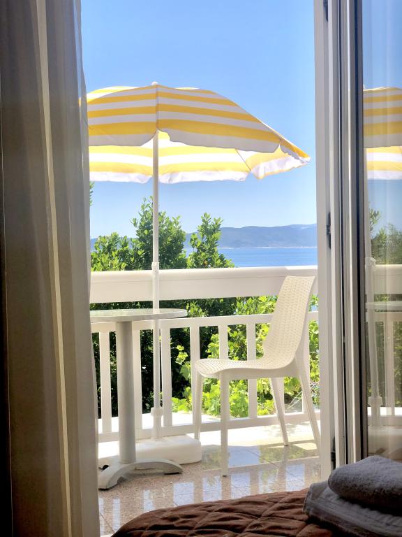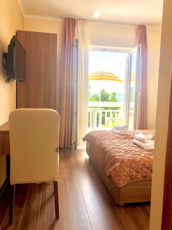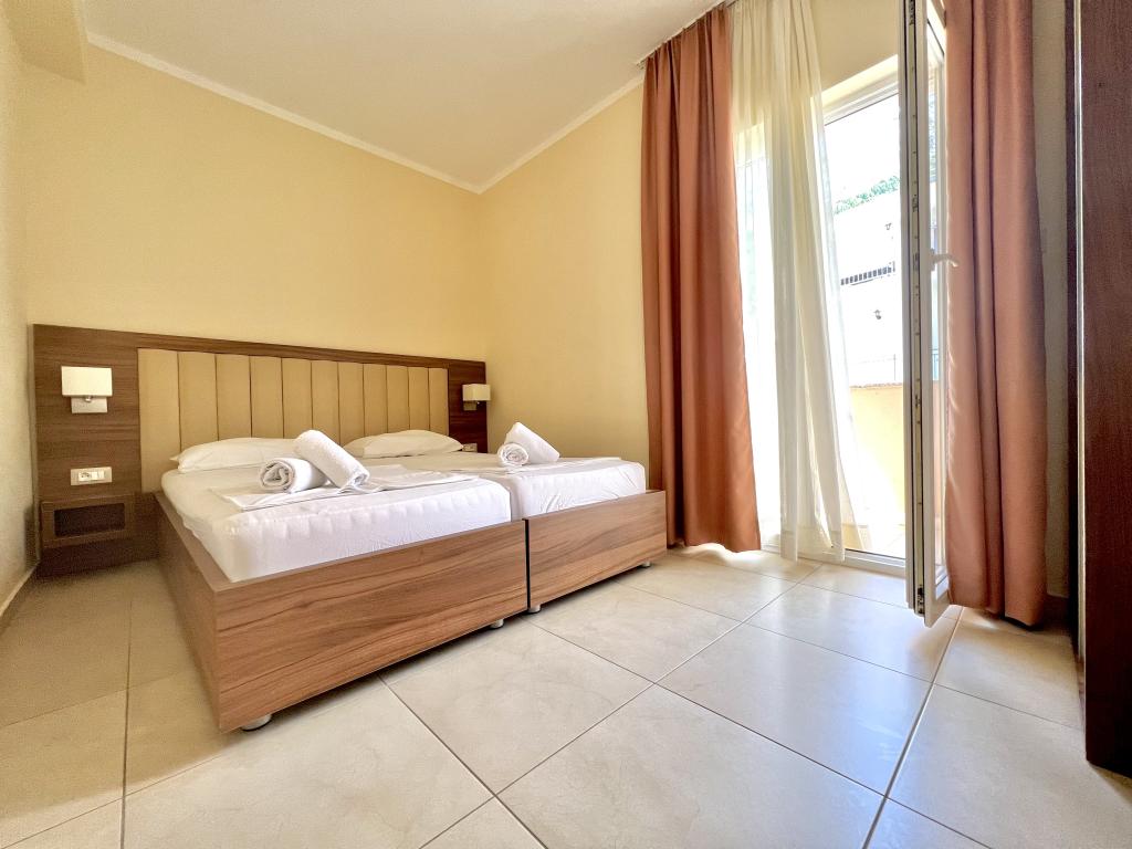 Turistskat er inkluderet i prisen.Alle værelser og lejligheder er smagfuldt indrettede og hvert værelse/hver lejlighed har egen altan. Forsiden af huset har udsigt over havet. Rygning er forbudt i alle værelser og lejligheder. Kæledyr har desværre ikke adgang! Vi har 3 dobbeltværelser, som er udstyret med følgende: - WiFi - Aircondition (delvis) - køleskab - bad/toilet - INGEN KØKKEN Vi har også 4 lejligheder med følgende muligheder: 3 senge (2 1); to gange 4 senge (2 2); 5 senge (4 1). De er udstyret med: - WiFi - Aircondition (delvis) - Eget komplet køkken - Stue (undtagen lejlighed 8 og 10) - Bruser/toilet Yderligere tjenester: - Parkering tilgængelig mod et ekstra gebyr (ca. 200 meter, overvåget 24 timer) - Hvis du vil have en barneseng gratis