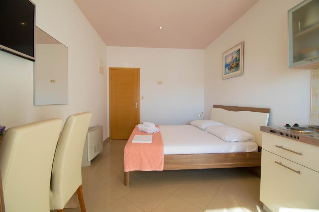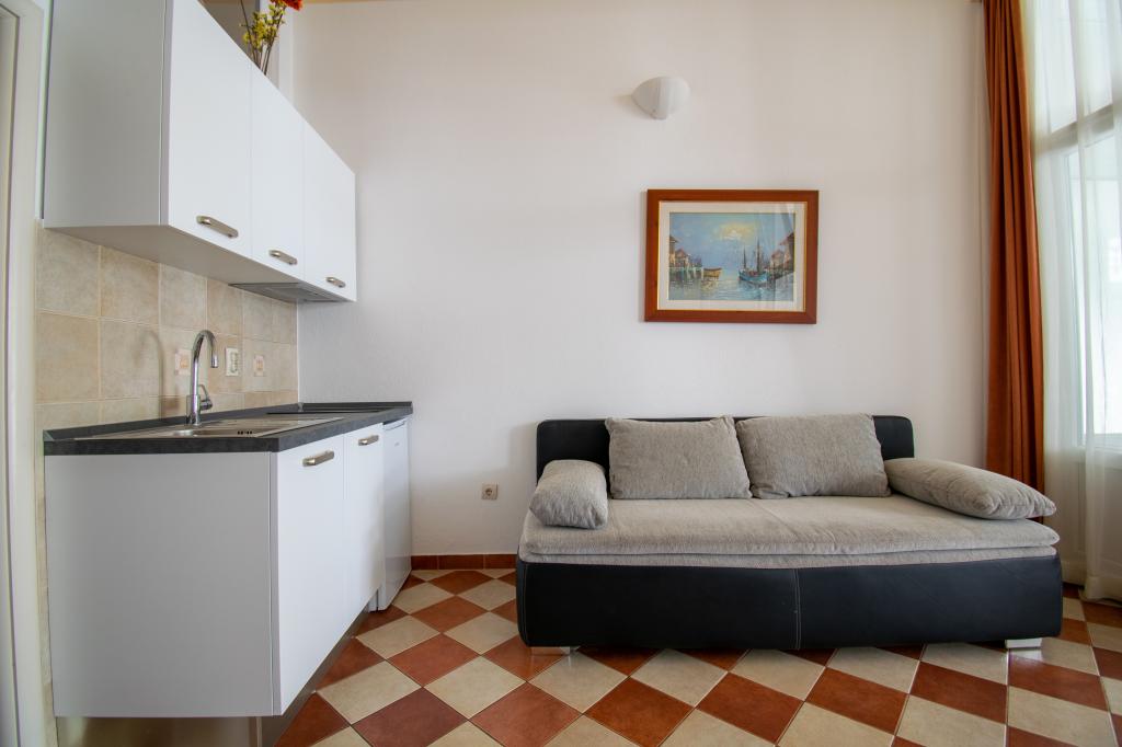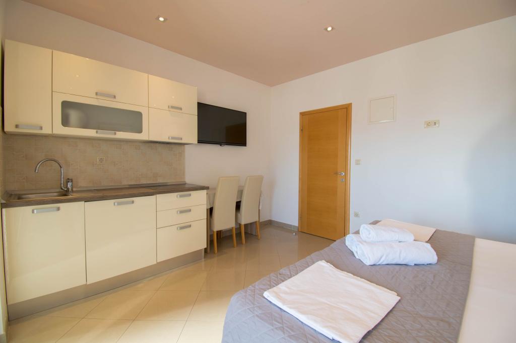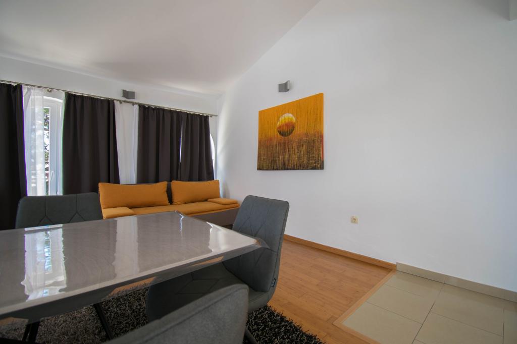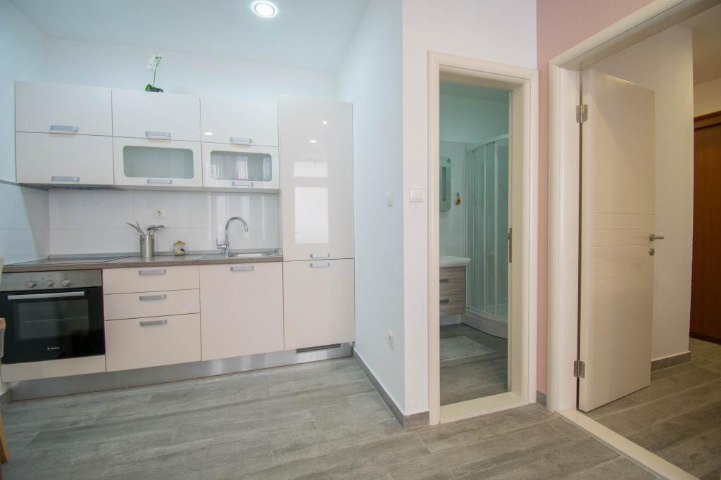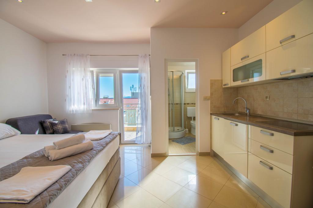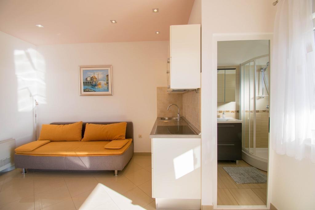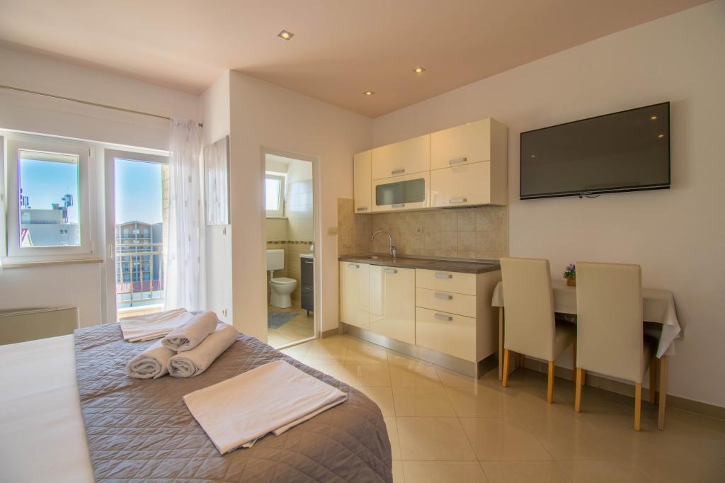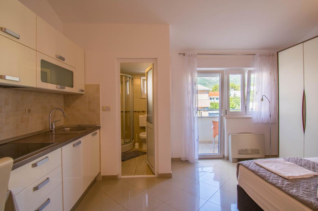 Vi boede i en studiolejlighed 2+2. Lejligheden er den samme som vist på billederne, meget ren og pæn, al ros for lejligheden og dens vedligeholdelse. Værtinden er meget behagelig, ikke påtrængende og vil altid hjælpe dig, hvis du har brug for det ... balkonen i lejligheden har en vidunderlig udsigt, udsigten er fortryllende. Vi er glade, og børnene hyggede sig virkelig. Jeg anbefaler det på det varmeste til alle, du vil ikke fortryde det!