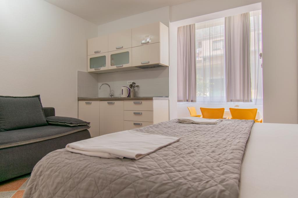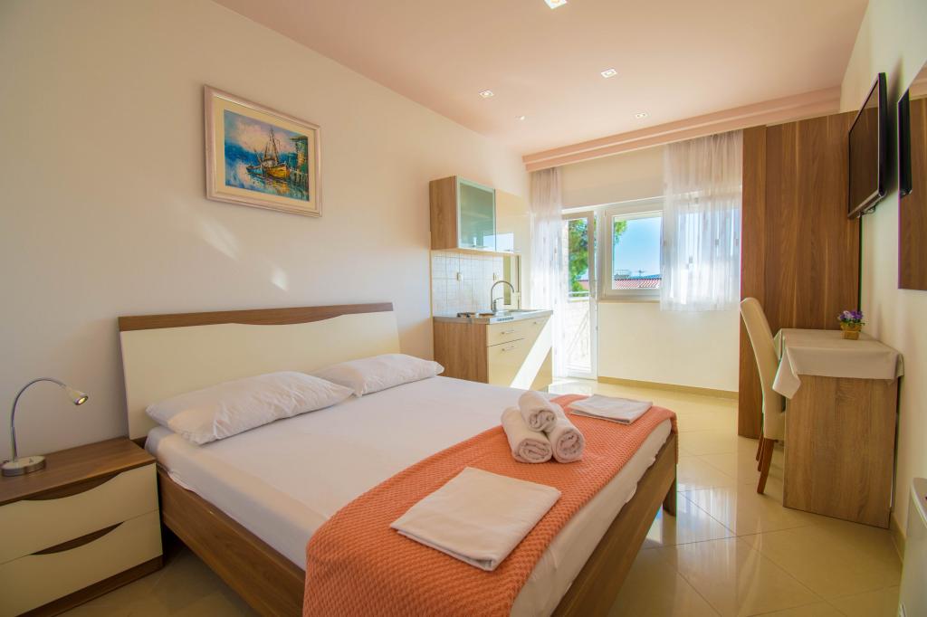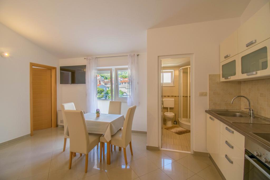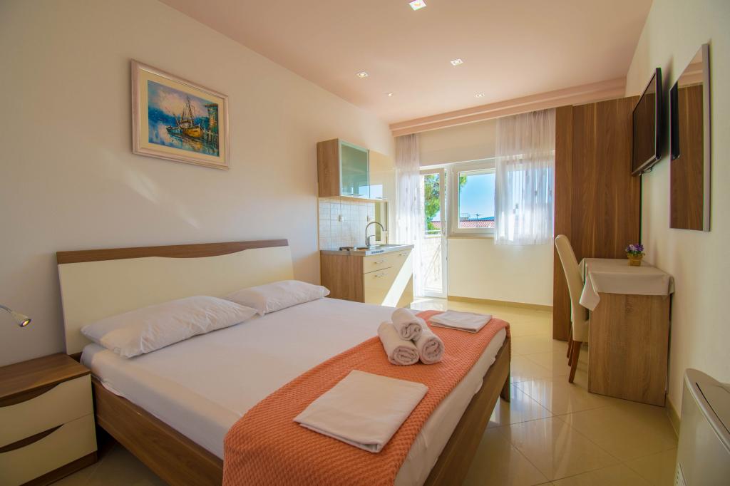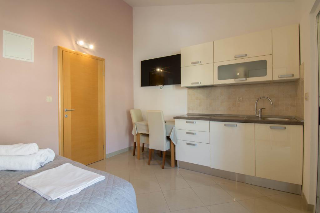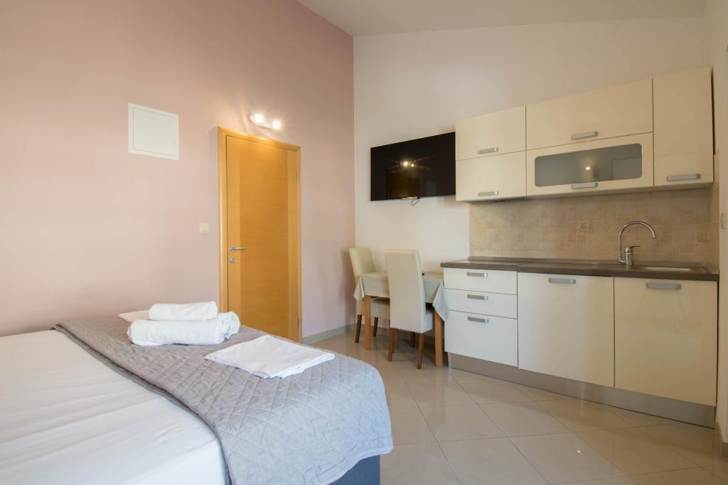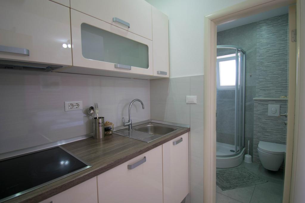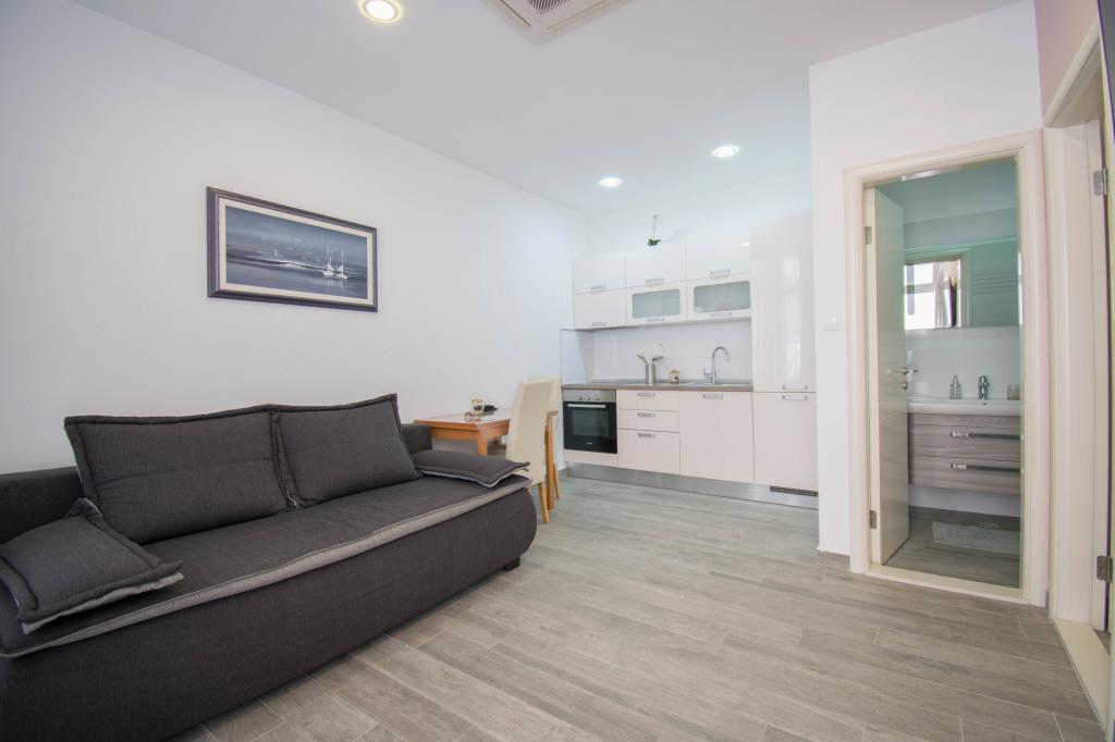 Vi boede i en studiolejlighed 2+2. Lejligheden er den samme som vist på billederne, meget ren og pæn, al ros for lejligheden og dens vedligeholdelse. Værtinden er meget behagelig, ikke påtrængende og vil altid hjælpe dig, hvis du har brug for det ... balkonen i lejligheden har en vidunderlig udsigt, udsigten er fortryllende. Vi er glade, og børnene hyggede sig virkelig. Jeg anbefaler det på det varmeste til alle, du vil ikke fortryde det!