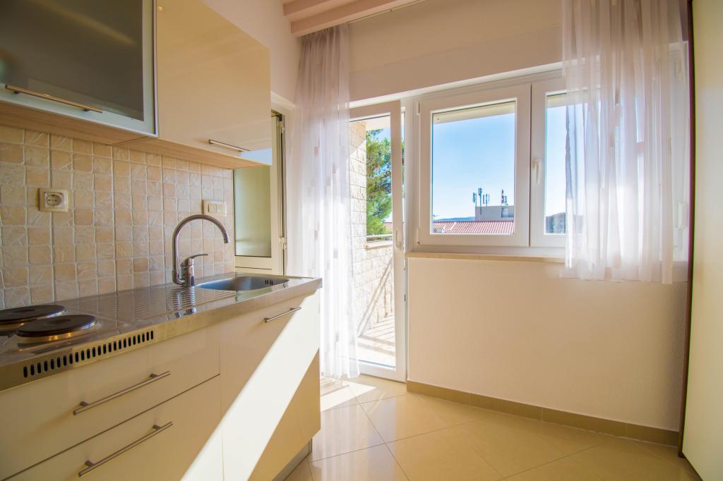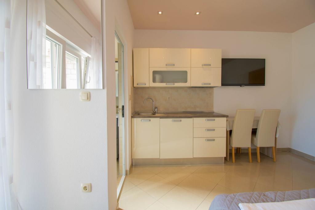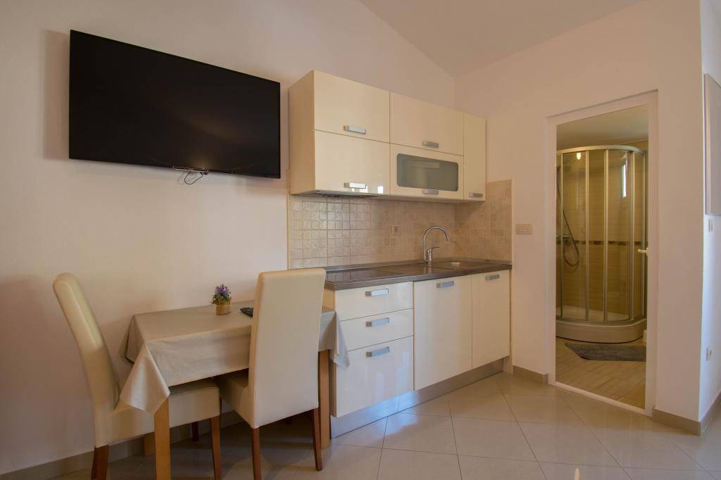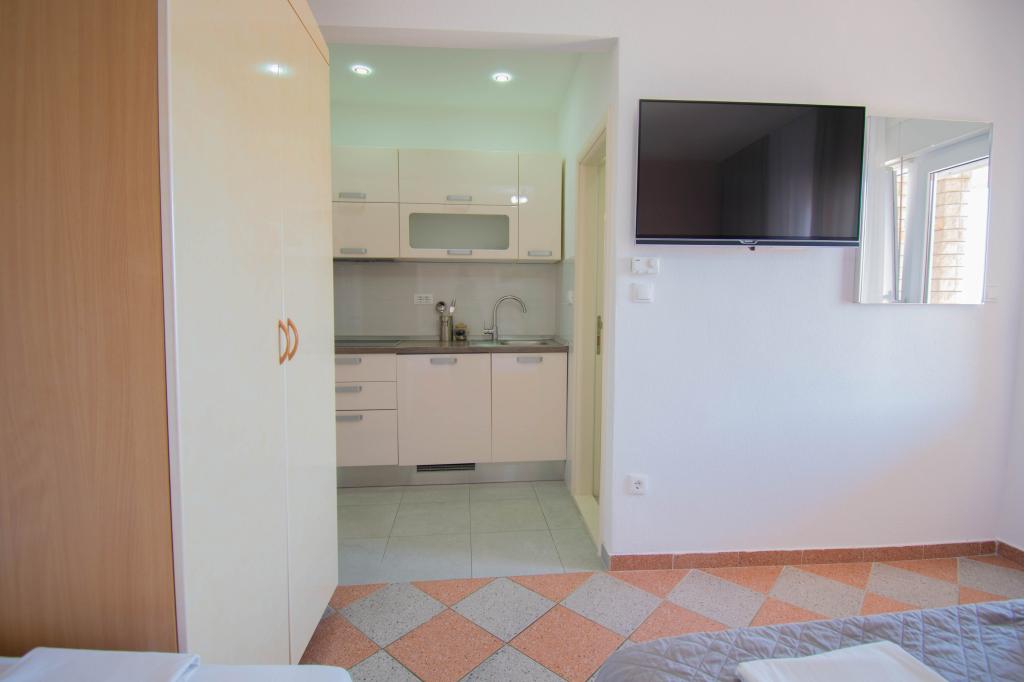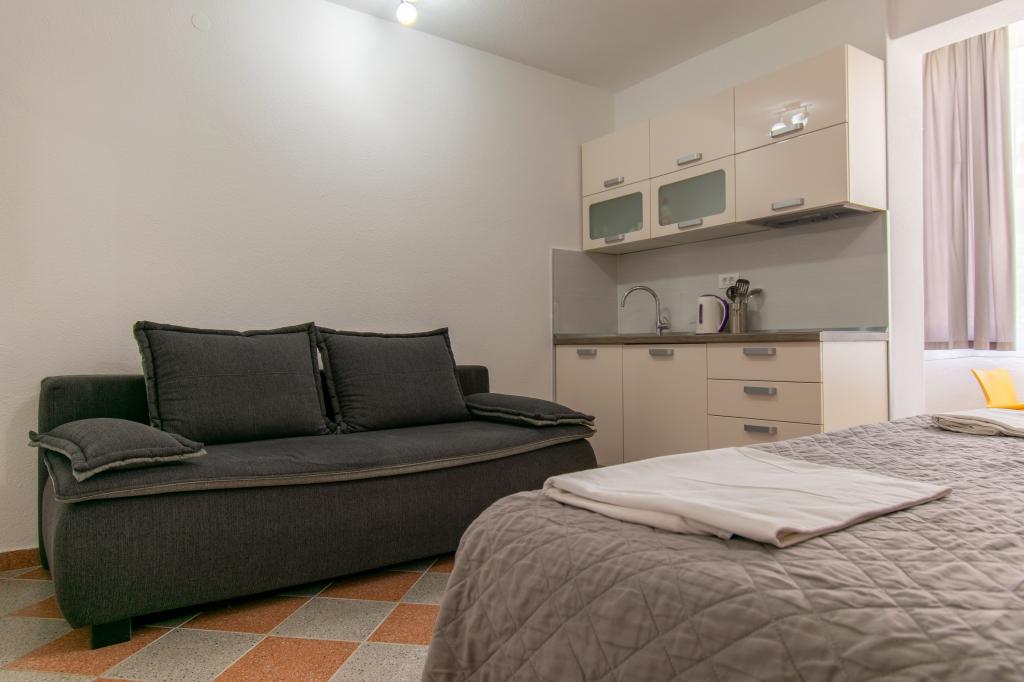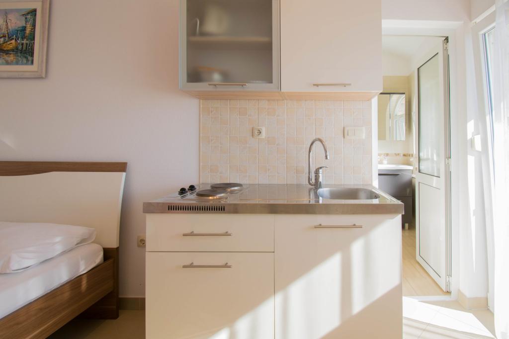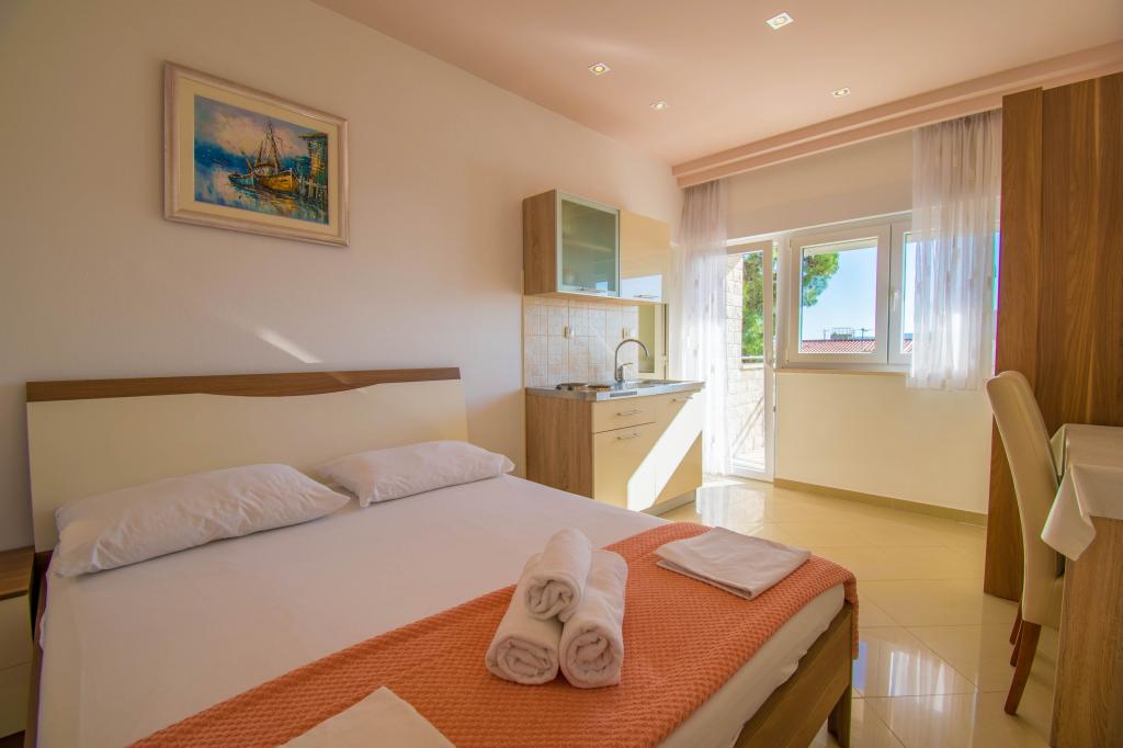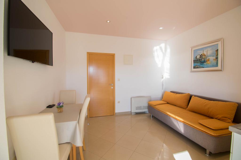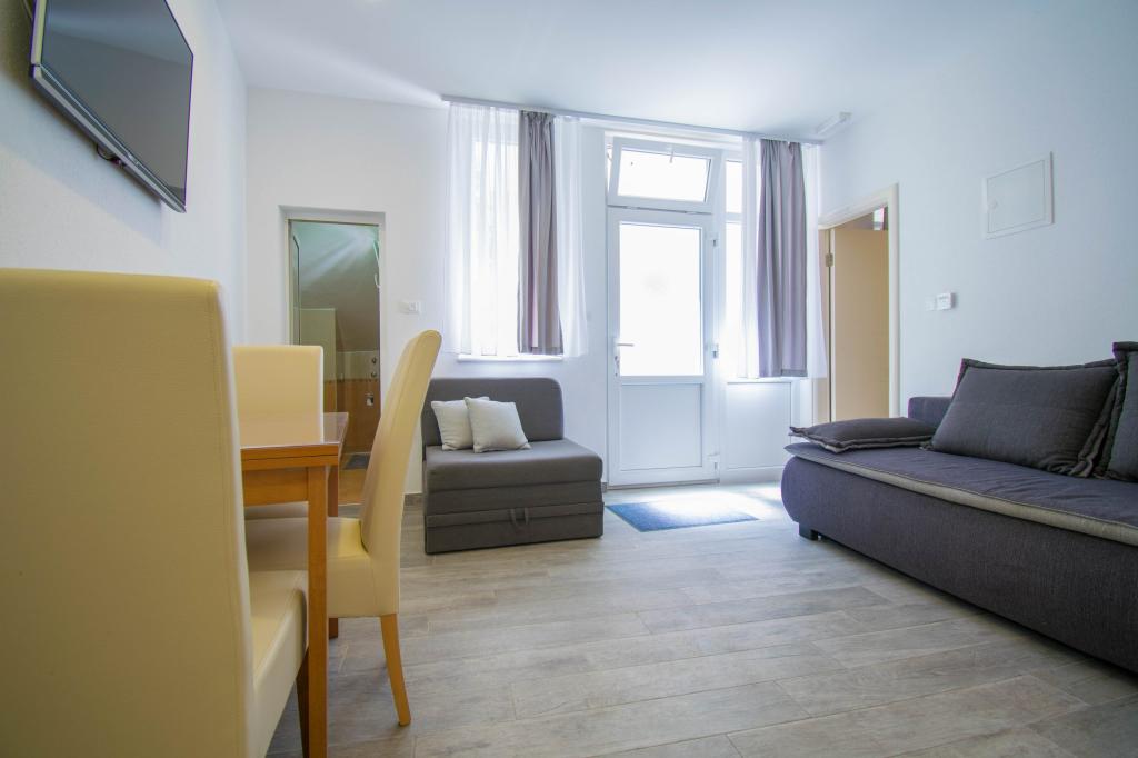 Vi boede i en studiolejlighed 2+2. Lejligheden er den samme som vist på billederne, meget ren og pæn, al ros for lejligheden og dens vedligeholdelse. Værtinden er meget behagelig, ikke påtrængende og vil altid hjælpe dig, hvis du har brug for det ... balkonen i lejligheden har en vidunderlig udsigt, udsigten er fortryllende. Vi er glade, og børnene hyggede sig virkelig. Jeg anbefaler det på det varmeste til alle, du vil ikke fortryde det!