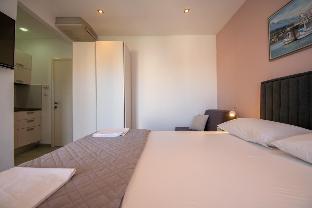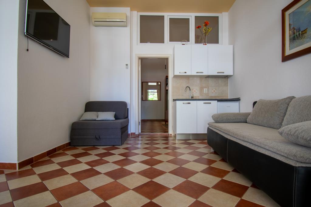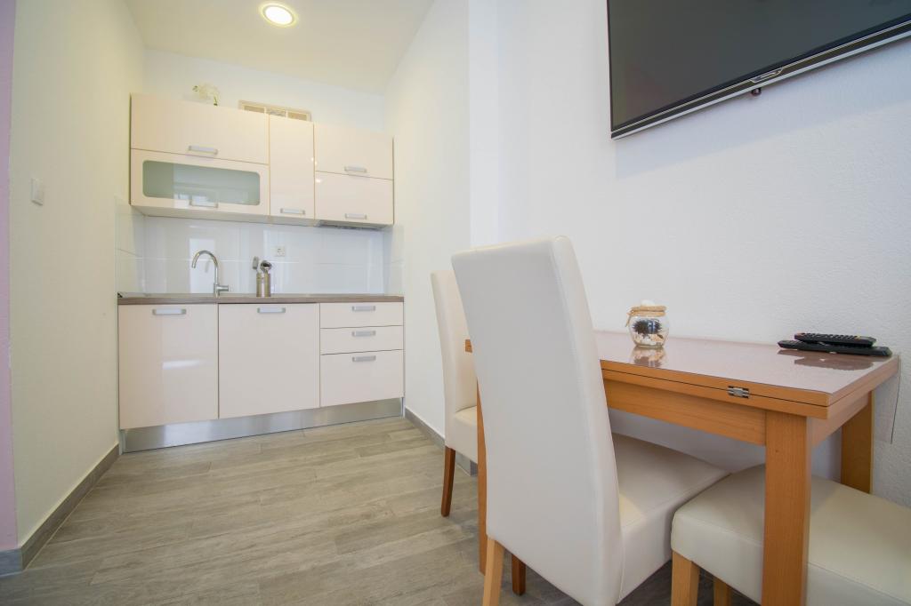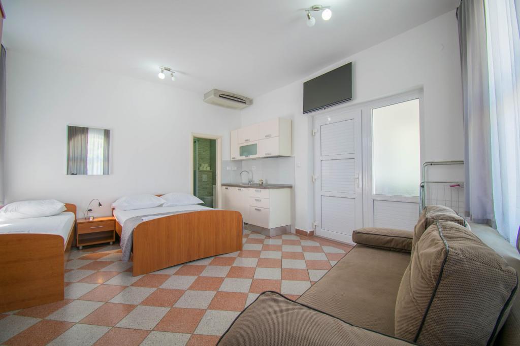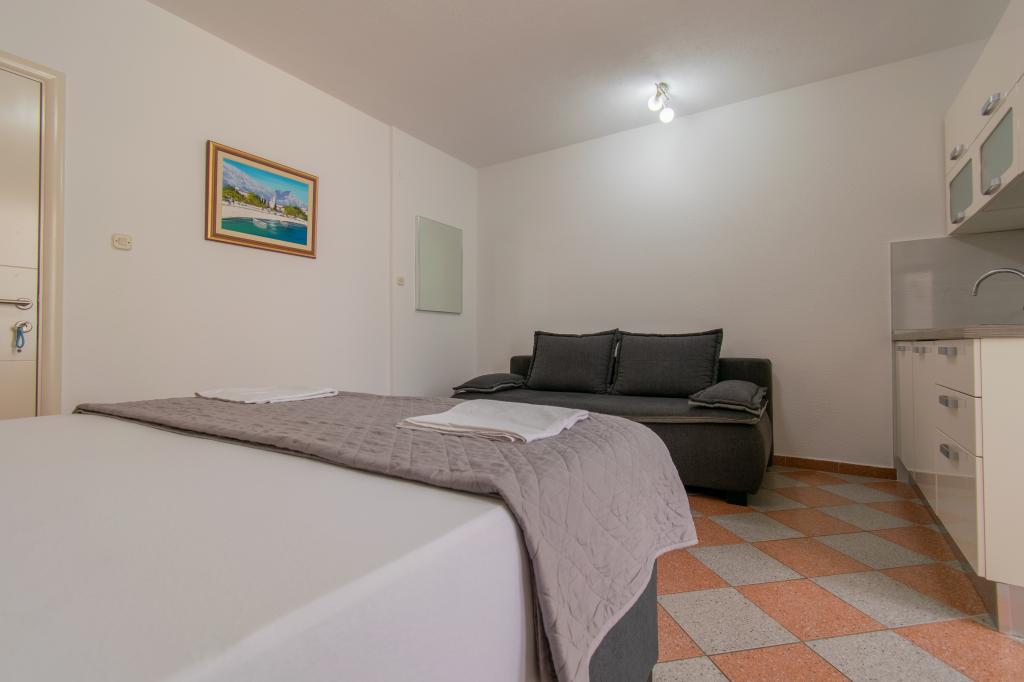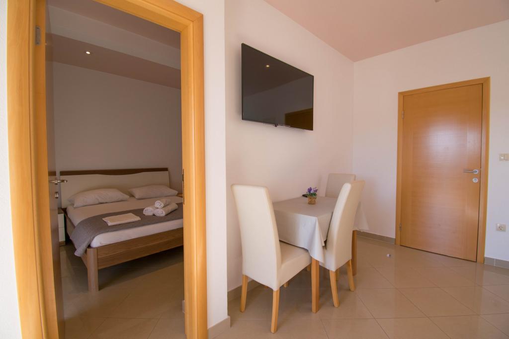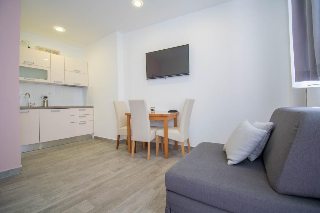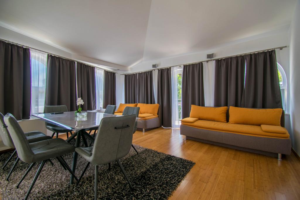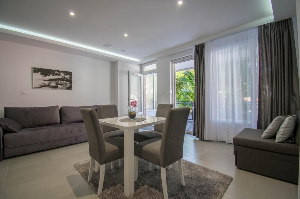 Vi boede i en studiolejlighed 2+2. Lejligheden er den samme som vist på billederne, meget ren og pæn, al ros for lejligheden og dens vedligeholdelse. Værtinden er meget behagelig, ikke påtrængende og vil altid hjælpe dig, hvis du har brug for det ... balkonen i lejligheden har en vidunderlig udsigt, udsigten er fortryllende. Vi er glade, og børnene hyggede sig virkelig. Jeg anbefaler det på det varmeste til alle, du vil ikke fortryde det!