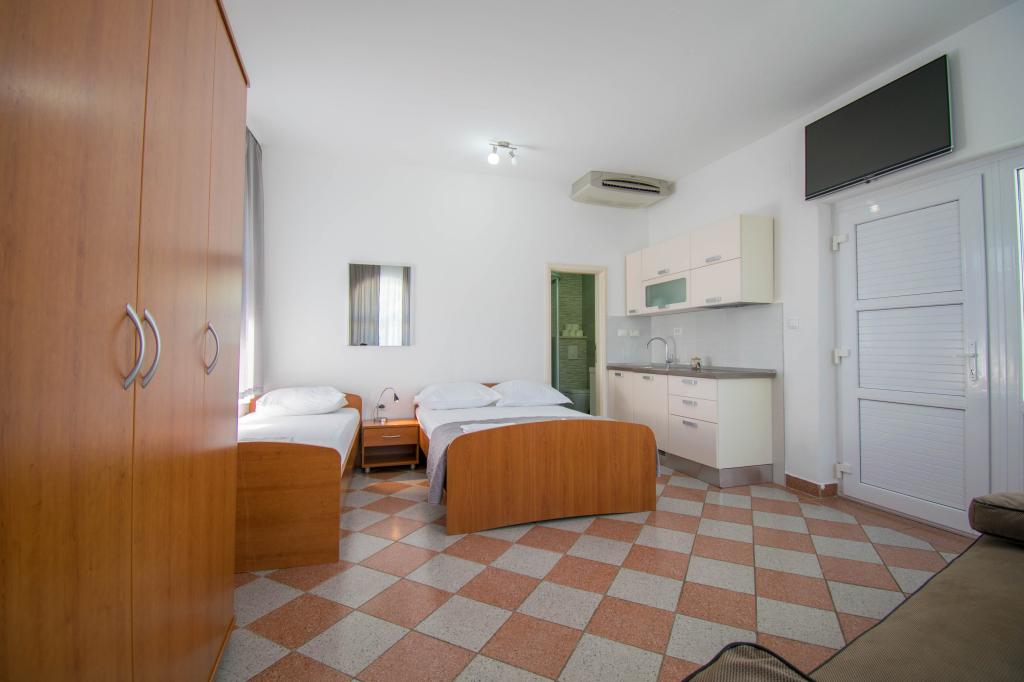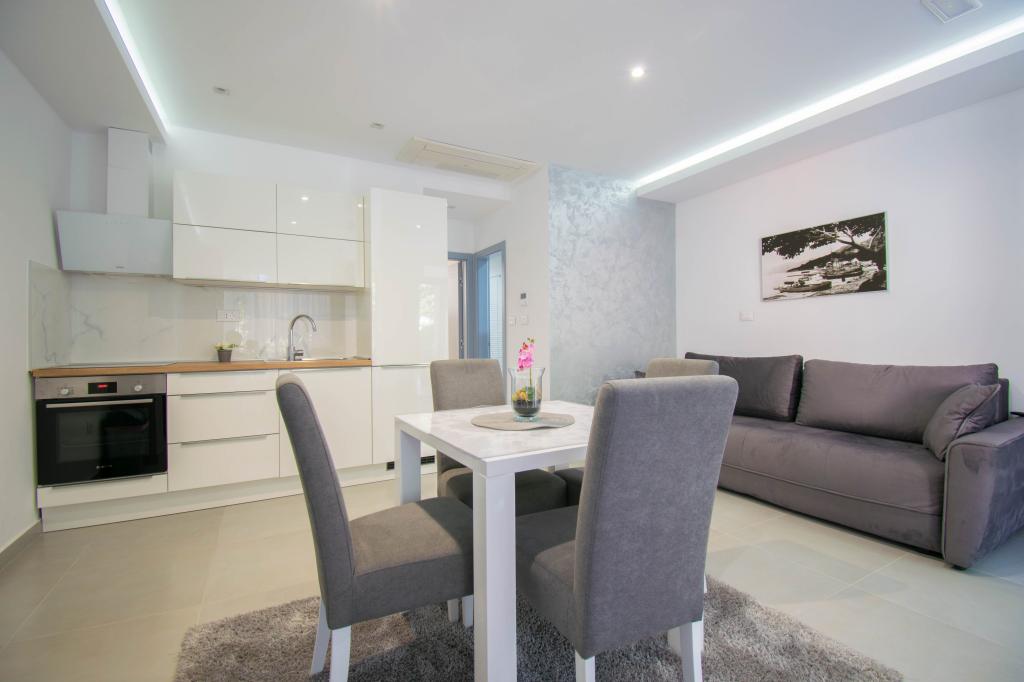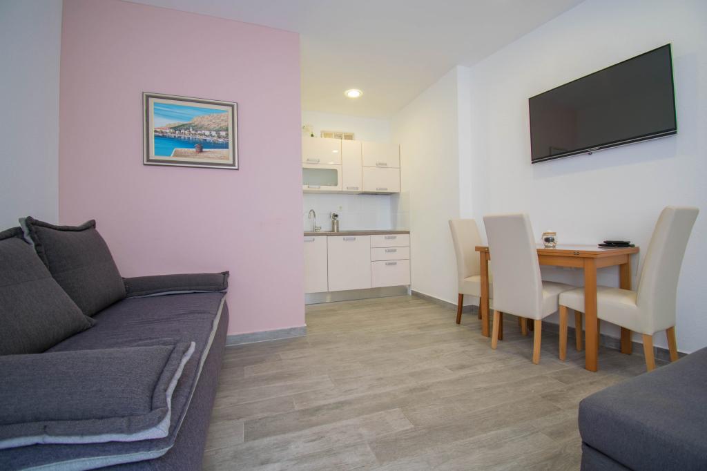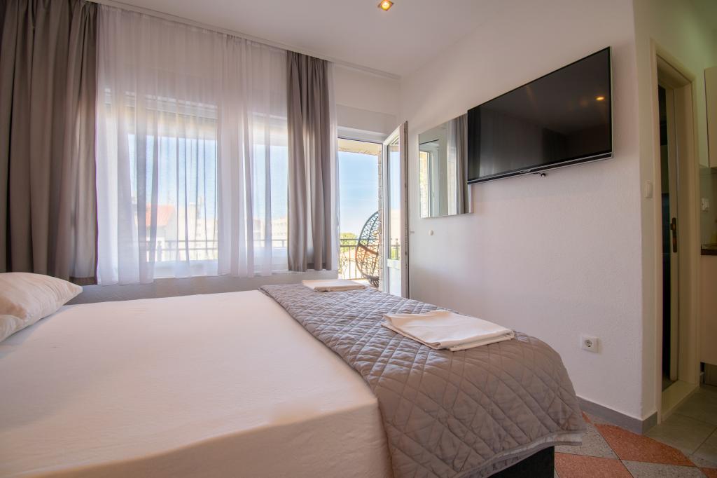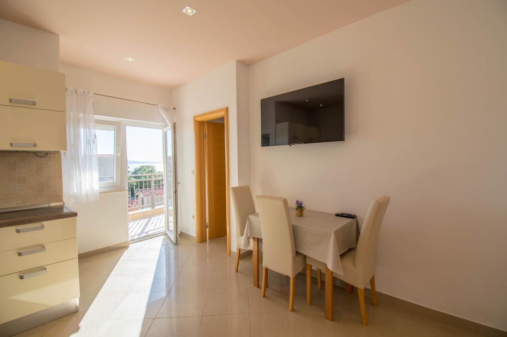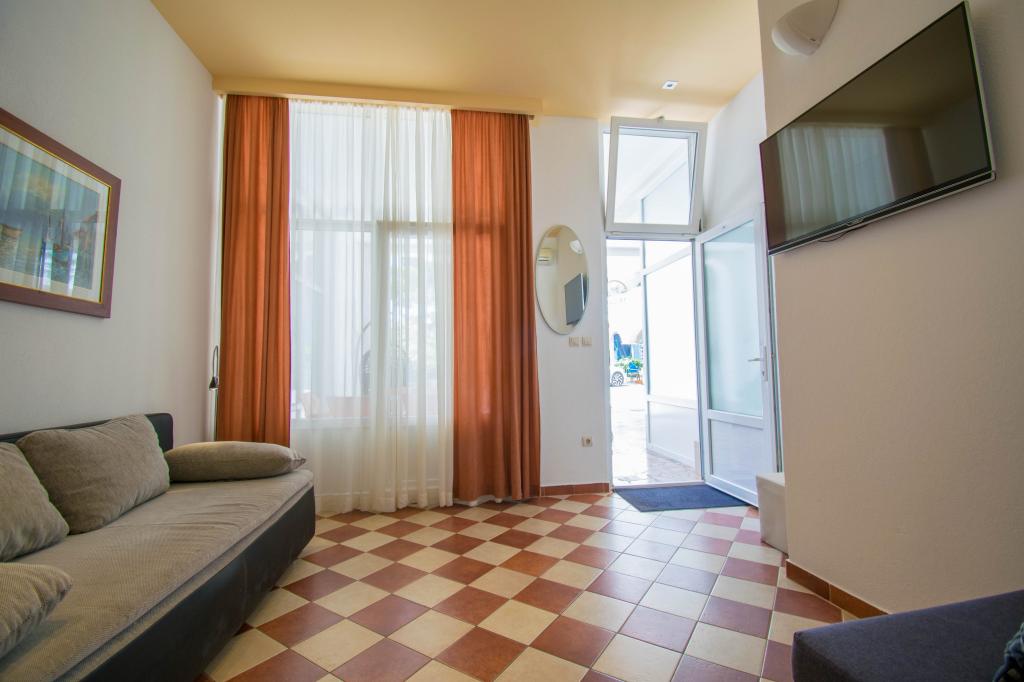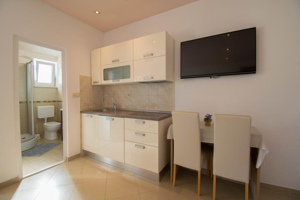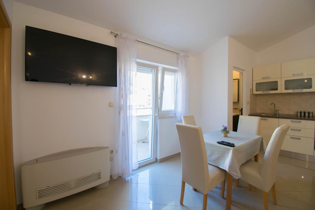 Vi boede i en studiolejlighed 2+2. Lejligheden er den samme som vist på billederne, meget ren og pæn, al ros for lejligheden og dens vedligeholdelse. Værtinden er meget behagelig, ikke påtrængende og vil altid hjælpe dig, hvis du har brug for det ... balkonen i lejligheden har en vidunderlig udsigt, udsigten er fortryllende. Vi er glade, og børnene hyggede sig virkelig. Jeg anbefaler det på det varmeste til alle, du vil ikke fortryde det!