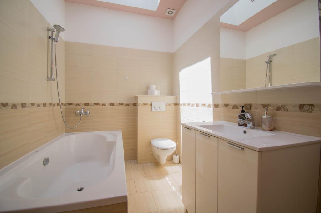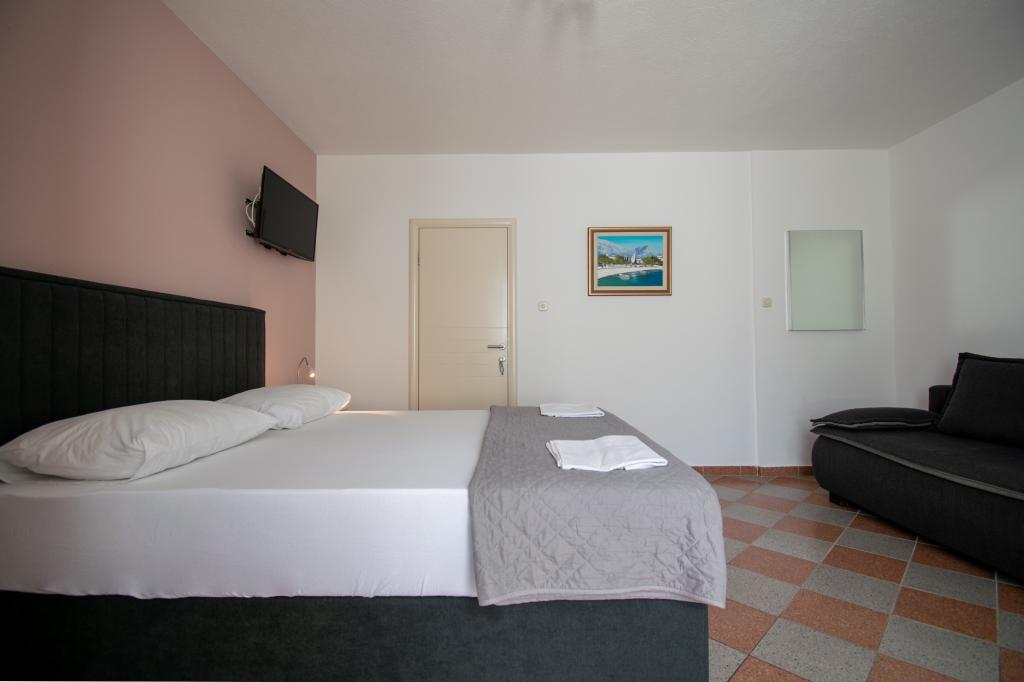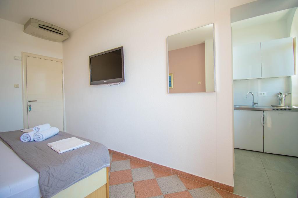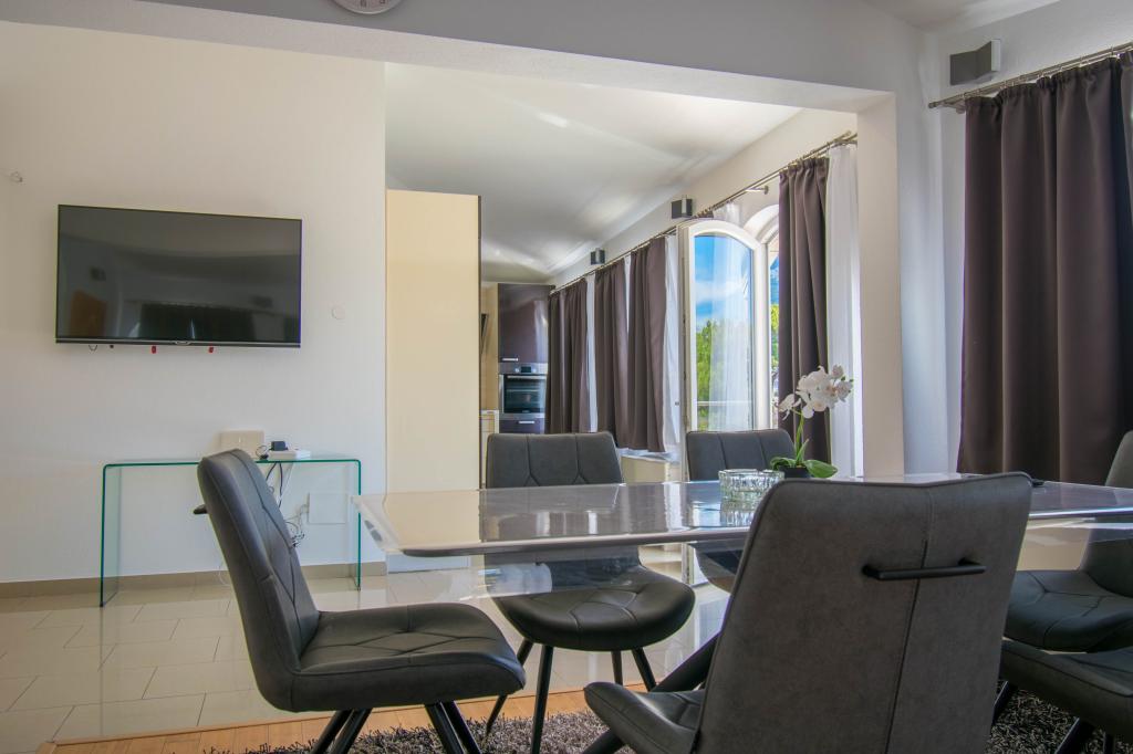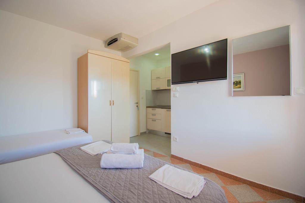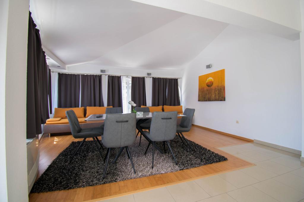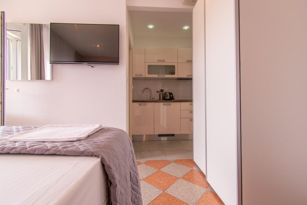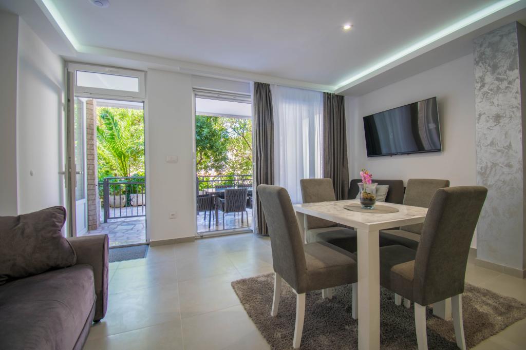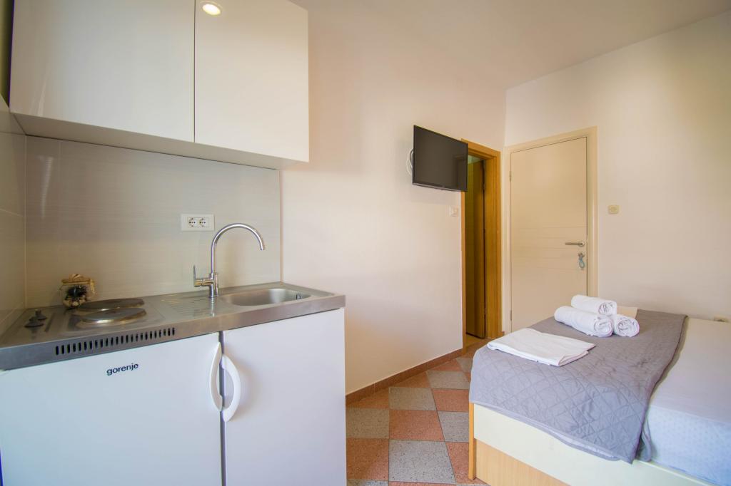 Vi boede i en studiolejlighed 2+2. Lejligheden er den samme som vist på billederne, meget ren og pæn, al ros for lejligheden og dens vedligeholdelse. Værtinden er meget behagelig, ikke påtrængende og vil altid hjælpe dig, hvis du har brug for det ... balkonen i lejligheden har en vidunderlig udsigt, udsigten er fortryllende. Vi er glade, og børnene hyggede sig virkelig. Jeg anbefaler det på det varmeste til alle, du vil ikke fortryde det!