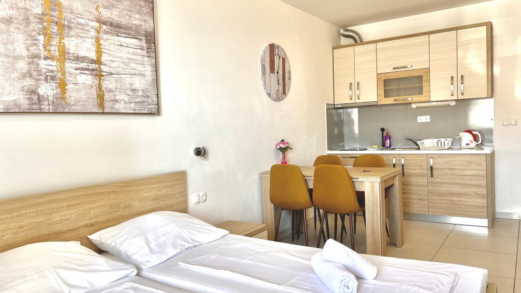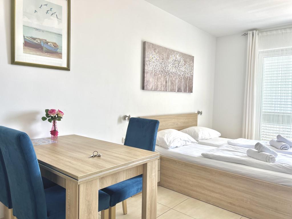 Vores hus blev bygget efter de nyeste standarder og blev åbnet for første gang i 2014. I vores tilbud får du følgende ydelser: Aircondition i alle rum Parkering til din bil Gratis Wi-Fi i hele huset Badeværelse med brus (badekar i Premium Lejlighed nr. 5 og 9) Sat TV med mange kanaler Køkken med keramiske fliser og køleskab/køleskab Sengetøj og håndklæder