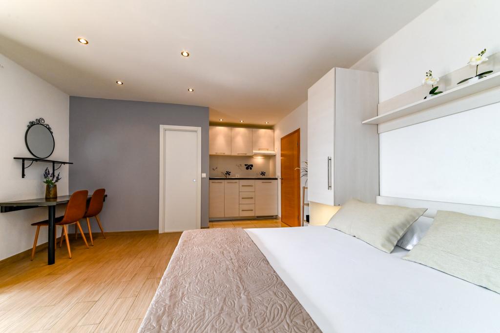 Lejlighederne er smukke, moderne, upåklageligt rene. Alt er nyt, og der er tænkt på hver eneste detalje for at gøre gæsternes ophold meget behageligt. Parkering i nærheden. På et roligt sted, med en vidunderlig udsigt fra balkonen. Tæt på havet og centrum! Værtinden er meget venlig, professionel, fremragende kommunikation! Vi anbefaler og kommer helt sikkert igen!