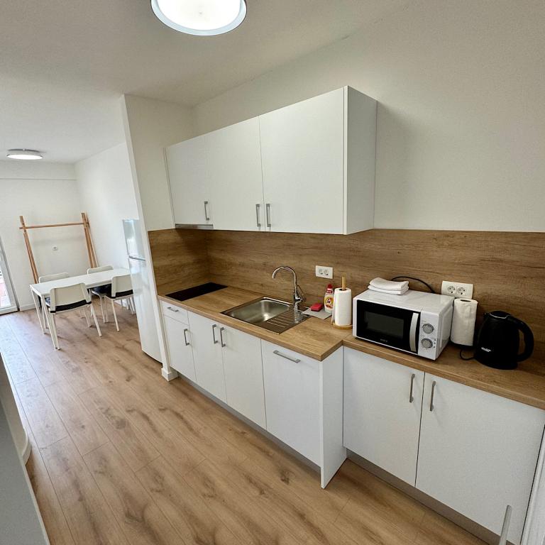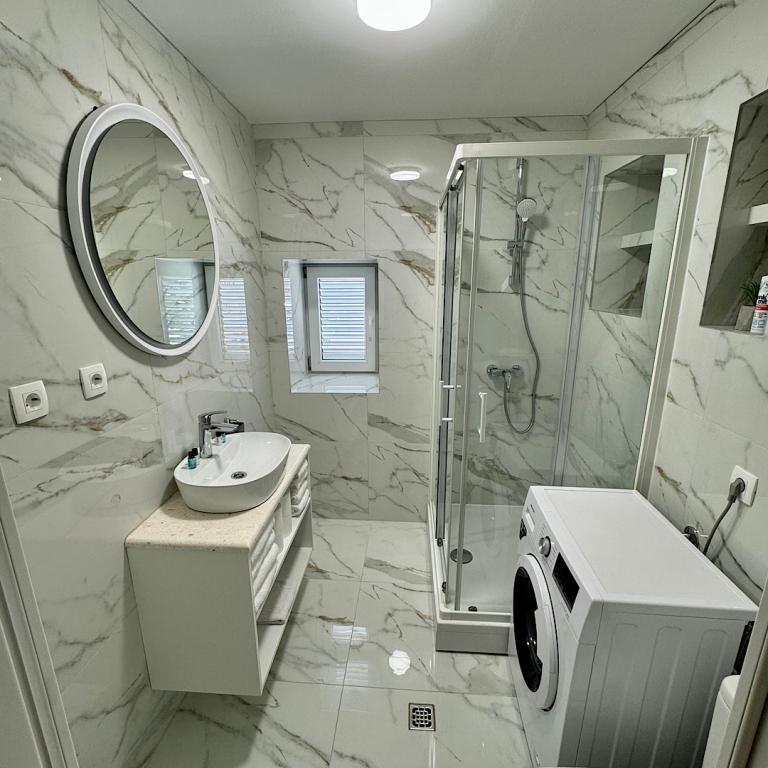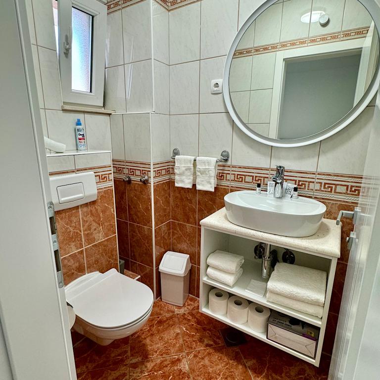 Villa Rozika ligger i centrum af Baska Voda, så alt hvad du har brug for er tæt, og du behøver ikke en bil. Den første butik ligger få skridt fra villaen, caféer og restauranter også i nærheden og stranden på tværs af vejen. Hvis du kommer i bil, er der gratis parkering i nærheden, hvor du kan forlade din bil. Lejligheden hvor jeg tilbragte 5 nætter var ren, rummelig og har alt hvad du har brug for til en rigtig ferie. Det ligger på øverste etage af huset og har en fantastisk udsigt over havet og havnen. Villa Rozika blev overtaget af de venlige værter, der står til din rådighed for spørgsmål og hjælp, og som gjorde vores ophold behageligt. Vi håber at vende tilbage snart! Adriana
