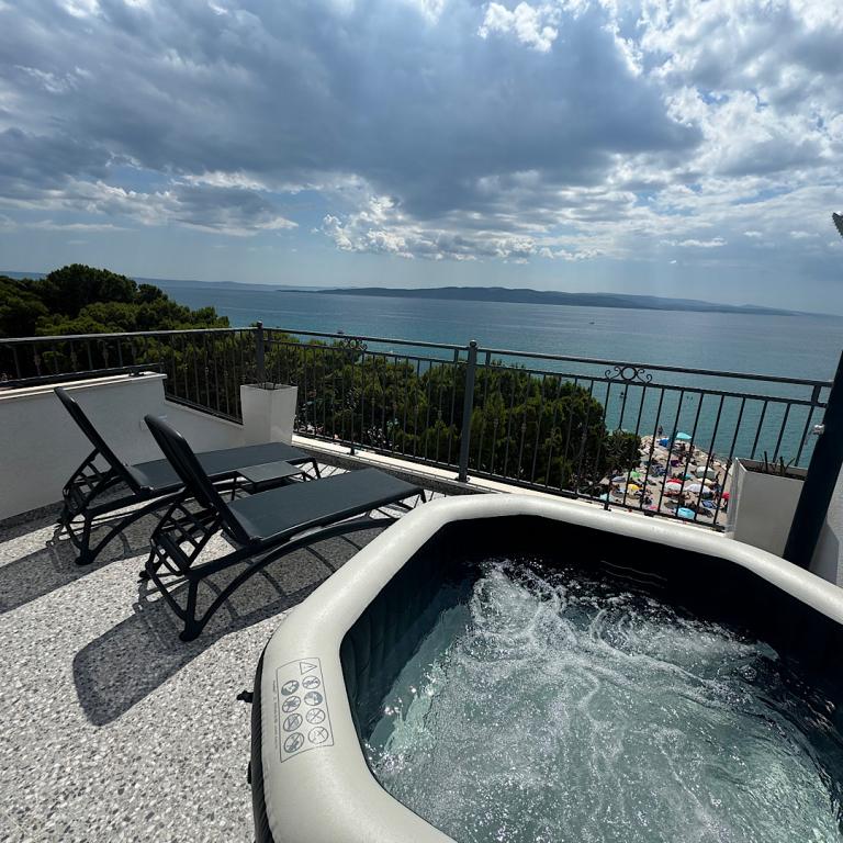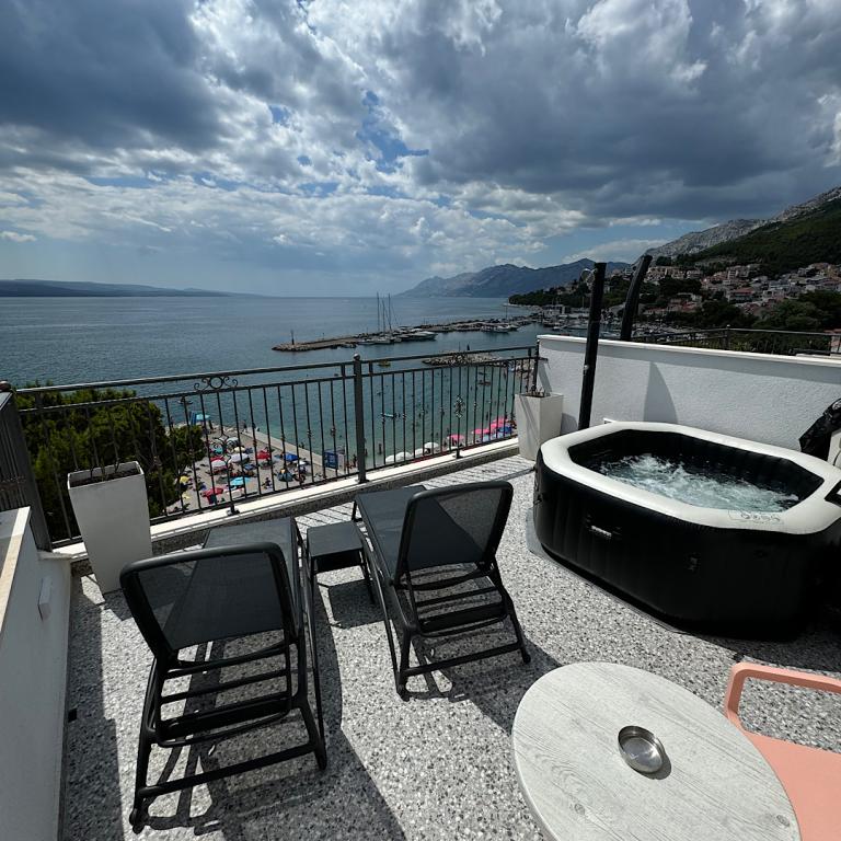 Villa Rozika er en smuk og moderne villa beliggende i Baška Voda, en lille by på Makarska-rivieraen i Kroatien. Villaen tilbyder komfortabel og moderne indkvartering for gæster, der ønsker at slappe af og slappe af i fredelige omgivelser. Villaen har rummelige og veludstyrede lejligheder med moderne faciliteter, nogle lejligheder har eget hydromassagebad og solterrasse. Gæsterne kan nyde en smuk udsigt over Adriaterhavet og de omkringliggende bjerge fra villaens balkon og udendørsområde. Villa Rozika ligger kun få minutters gang fra byens centrum, hvor gæsterne kan finde restauranter, butikker og smukke strande. Villaens bekvemme beliggenhed gør det nemt for gæsterne at udforske den charmerende by Baška Voda og den fantastiske dalmatiske kyst. Uanset om du leder efter en afslappende strandferie eller en aktiv ferie med at udforske Kroatiens naturlige skønhed, er Villa Rozika det perfekte sted at bo. Med komfortabel indkvartering og en fantastisk beliggenhed vil gæsterne helt sikkert få et uforglemmeligt og behageligt ophold i Baška Voda.
