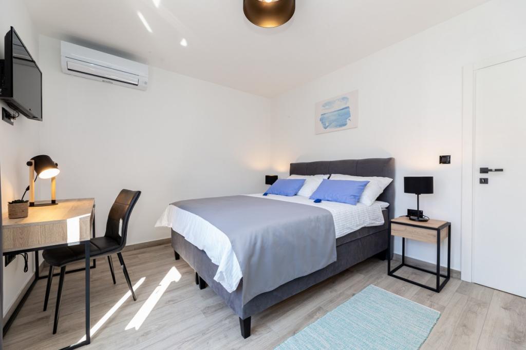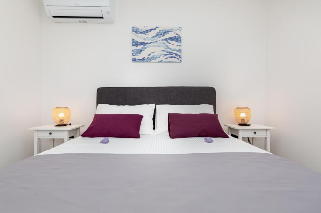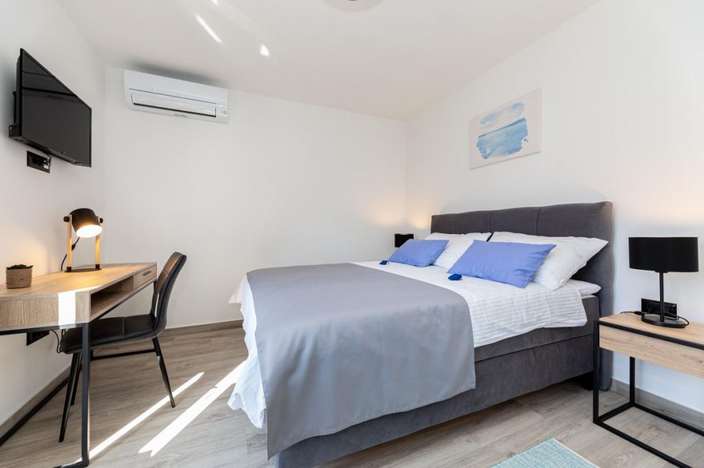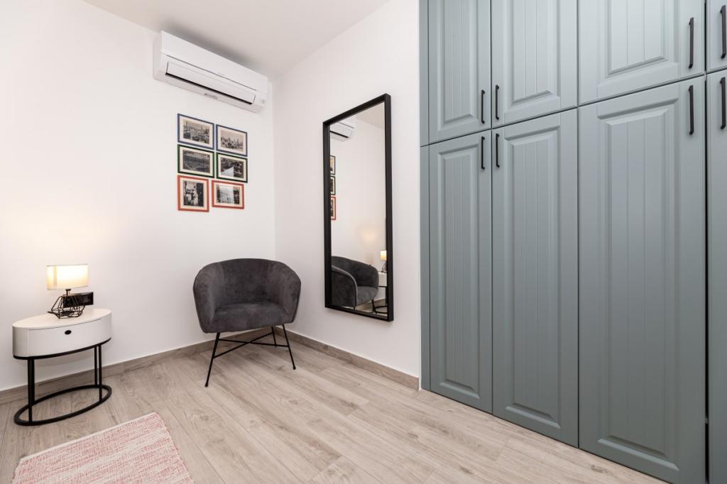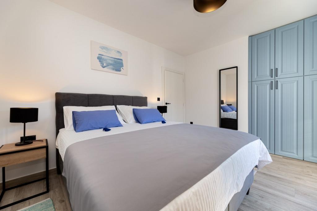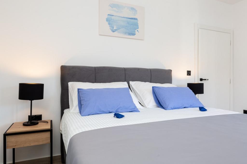 Moderne lejlighed i roligt område, ca. 200 m fra havet. Det er beliggende på 1. sal i et familiehus. Anlægget ligger 5 til 10 minutters gang til stranden eller bymidten, og har 2 parkeringspladser. Lejligheden består af 3 soveværelser med dobbeltsenge, hvoraf 2 har balkon. Samtlige værelser har aircondition, satellit-tv og hårtørrer. Køkken udstyret med køleskab, fryser, opvaskemaskine, kogeplader, mikroovn, filterkaffemaskine, elkedel, brødrister og alle nødvendige redskaber. Stuen har også aircondition og satellit-tv. Lejligheden har 2 badeværelser med bruser. WI FI inkluderet i prisen. Lejligheden har også en haveterrasse med siddepladser og grill. Vi ønsker dig et behageligt ophold i vores lejlighed.