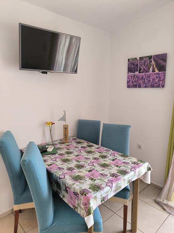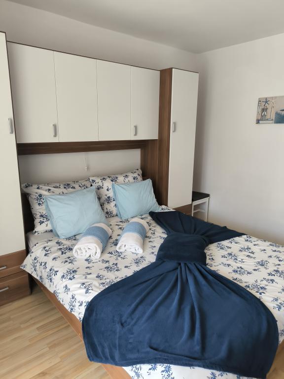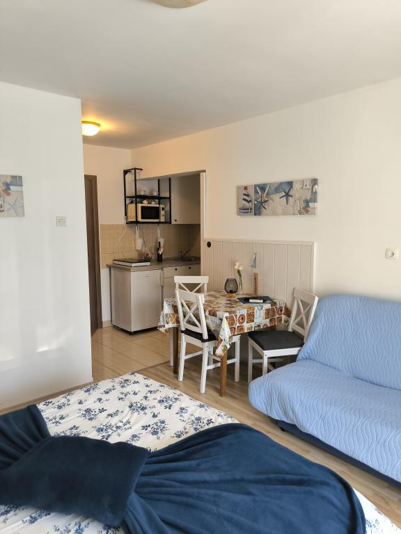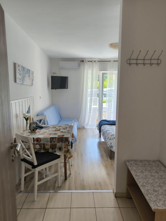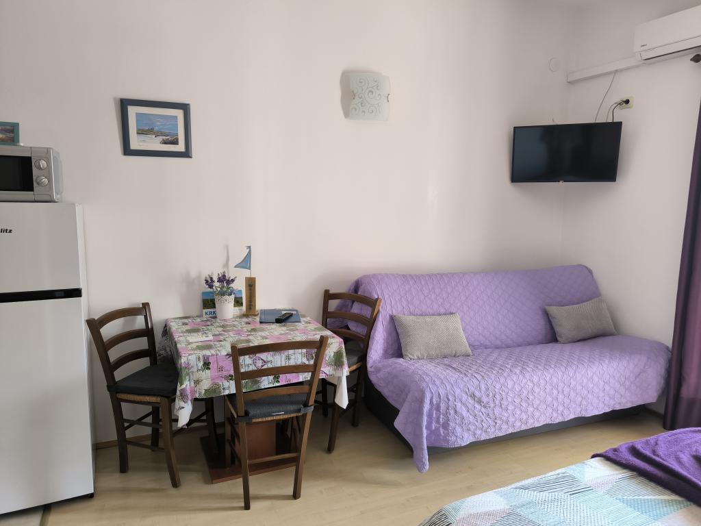 Smukt og moderne indrettede og fuldt udstyrede studielejligheder og lejligheder i et familiehus i en rolig del af Baška. Alle boligenheder er udstyret med aircondition, Wi-Fi, TV-SAT, køkkener med køleskabe og mikrobølgeovne. Mulighed for opredning i alle lejligheder. Sikker parkering ved siden af huset. Stranden er meget tæt på, kun 5 minutters gang, ideel for børn at lege ved havet. Den gamle bymidte ligger 15 minutters let gåtur langs en smuk promenade.