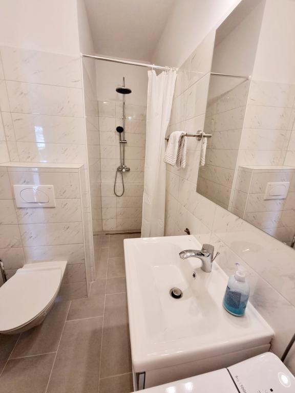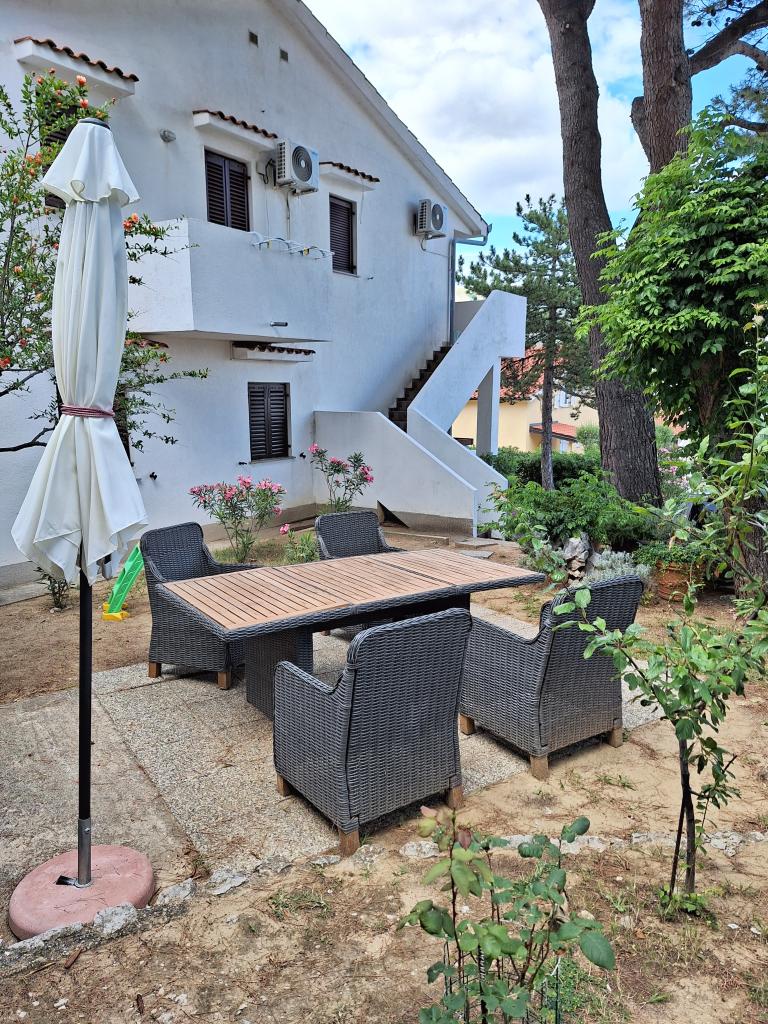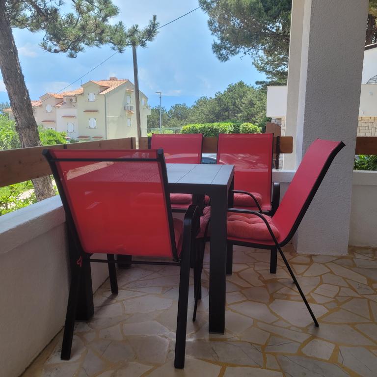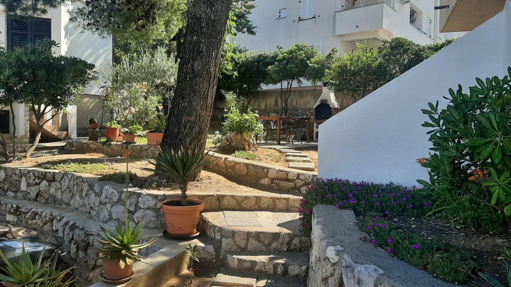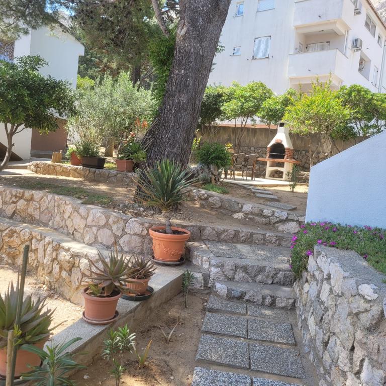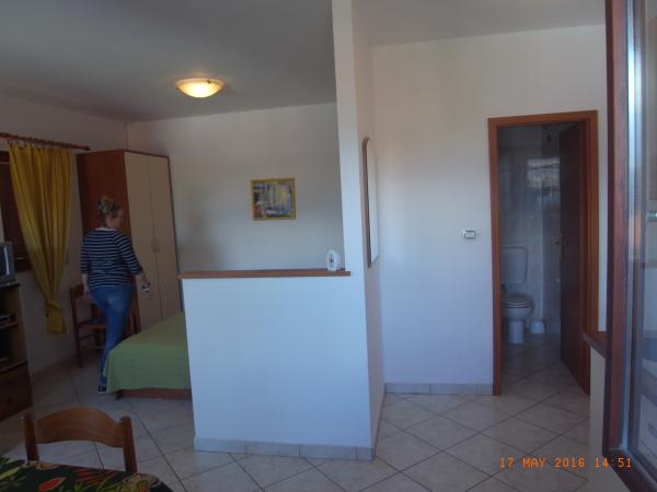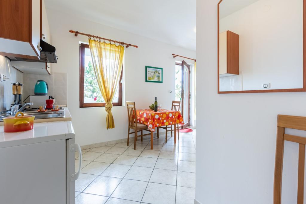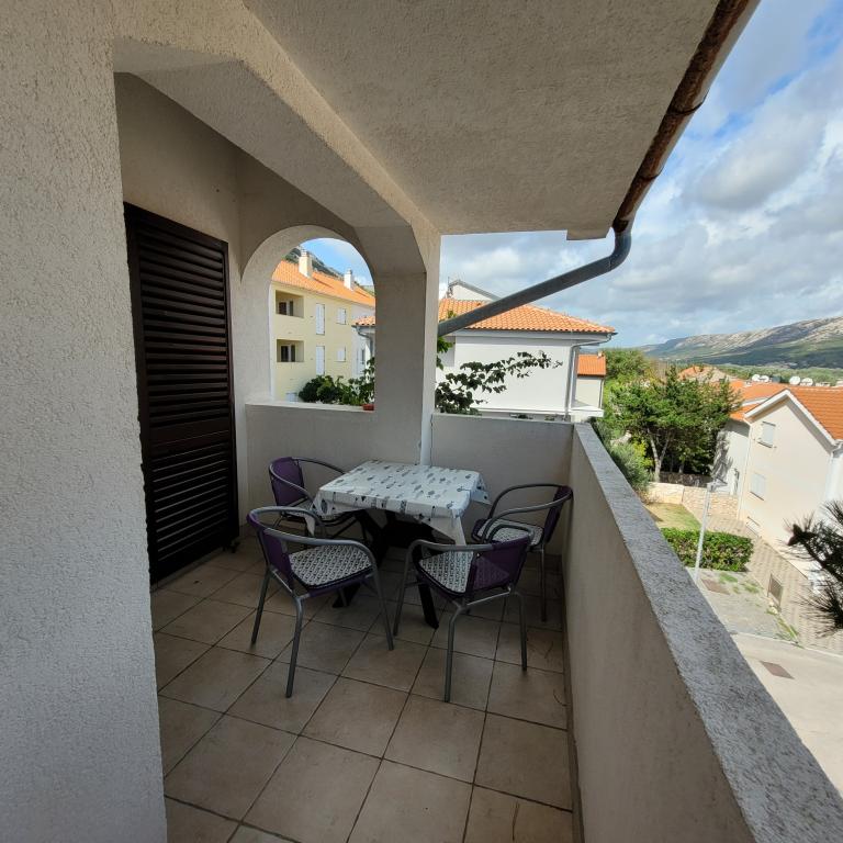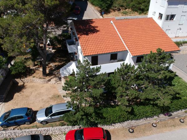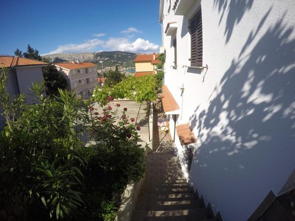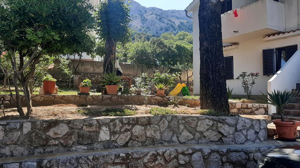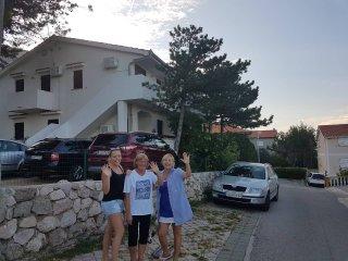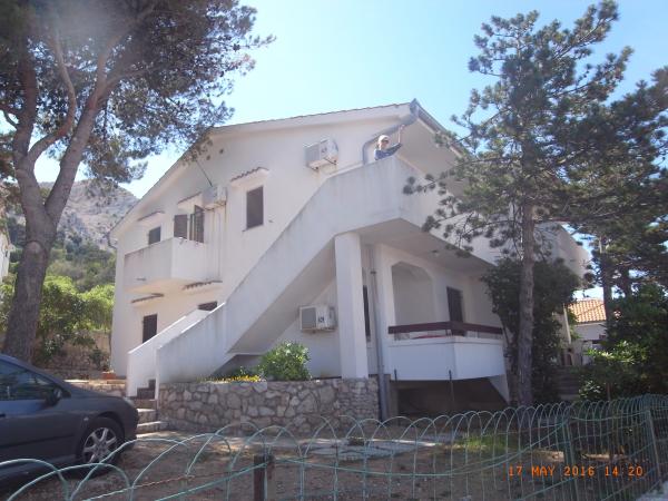 Vi er beliggende i et smukt og nyt hus omgivet af grønne områder i en stille del af Baska på øen Krk, 250 meter fra havet og ca. 300 meter fra den smukke og unikke stenstrand. Vi er omkring 1000 meter fra centrum, hvor der er et posthus, bank, vekselkontor, klinik, restauranter. De nærmeste butikker, restauranter osv. Ligger ca. 200 meter væk. Vi tilbyder 3 lejligheder til 4-5 personer og 3 studiolejligheder til 2-3 personer. Hver af de store lejligheder har 2 soveværelser, stue, køkken, badeværelse, terrasse. Hver lejlighed har en separat indgang og udgang til haven og parkering. Alle lejligheder er udstyret med aircondition, satellit-tv, trådløst internet (WI-FI), køleskab, kaffemaskine, opvaskemaskine osv. Pleje af gæster og lejligheder i løbet af sæsonen ud over ejeren og værtinden, der er til stede hele dagen . Sengelinned og håndklæder skiftes en gang om ugen