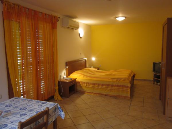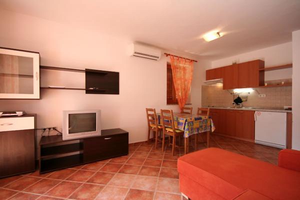 I lejlighedskomplekset er der 4 lejligheder. Af disse to store suiter for i alt 4 personer hver med 42 m2. På bagsiden af huset er der 2 studie-lejligheder til 2 personer. I bygningen er der parkering med parkeringsplads til hver lejlighed. Alle lejligheder har aircondition og satellit-tv. Lejlighed Bygningen er beliggende 10 minutters gang til den berømte største strand (1800 meter lang, som er specielt velegnet til børn), og en 10 minutters gang til byens centrum. Nærheden er der to butikker i en afstand af 100 meter, og en meget god restaurant. Rengøring er inkluderet i prisen, sengetøj skiftes hver 7 dage.