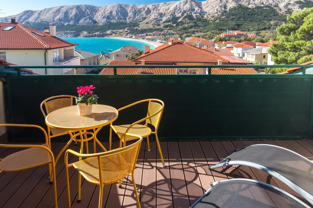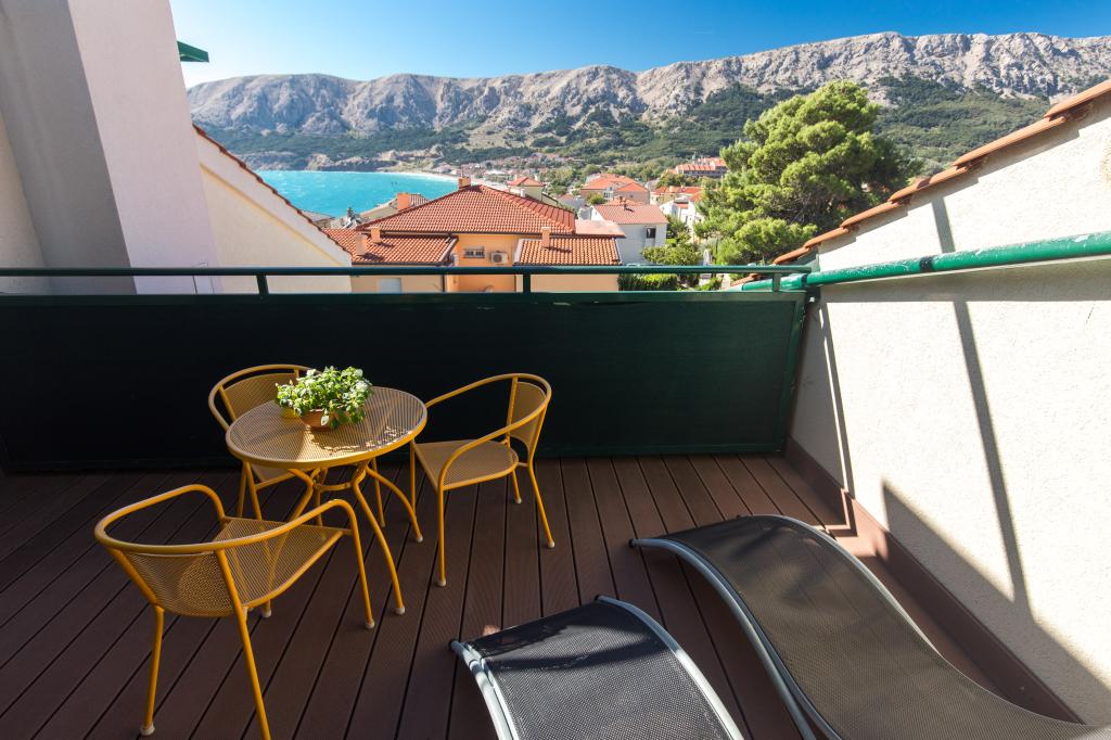 Apartments DDD ligger i Baška på øen Krk, under 2 minutters gang fra Vela Baška Strand, og tilbyder indkvartering med gratis WiFi, grillfaciliteter og have. Have og gratis privat parkering. Huset ligger i centrum af byen ved siden af stranden. Ferieboligerne har terrasse eller balkon med udsigt over havet og bjergene, aircondition, opholdsområde, fladskærms-tv med satellitkanaler og køkken. Ferieboligerne har eget fuldt udstyret badeværelse med bruser og hårtørrer. Populære seværdigheder i nærheden af Apartments DDD omfatter Helena Strand, Bunculuka Strand og Baška Busstation. Rijeka Lufthavn ligger 44 km fra ejendommen.