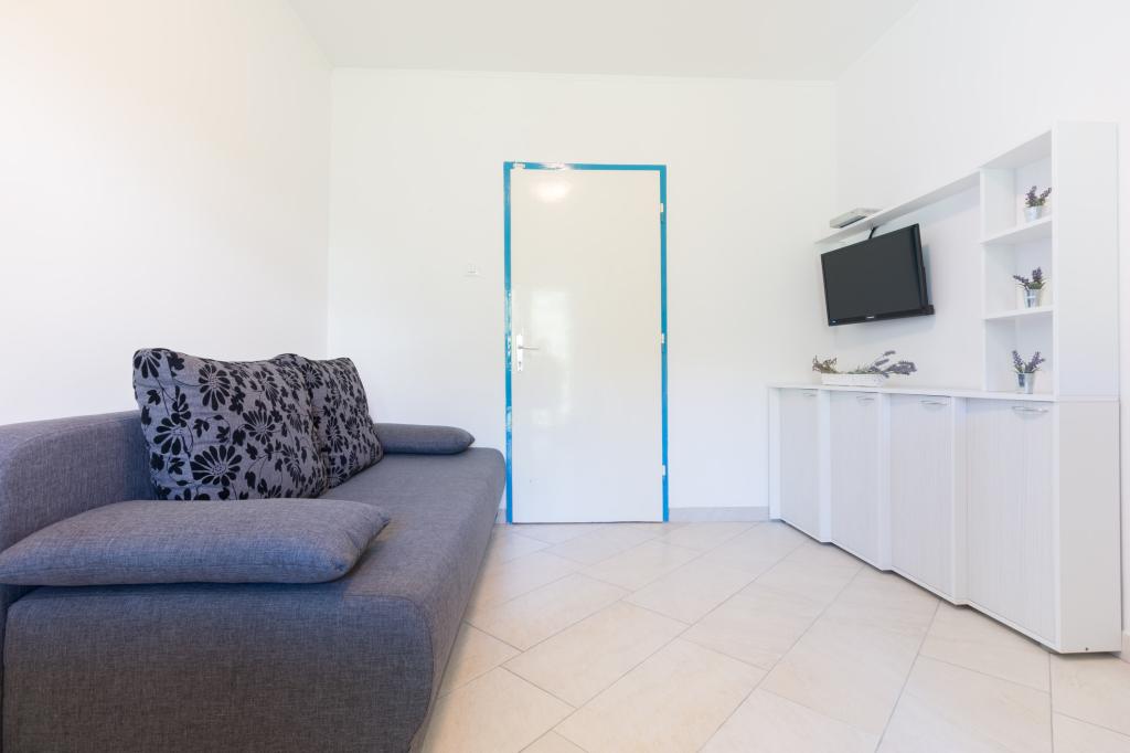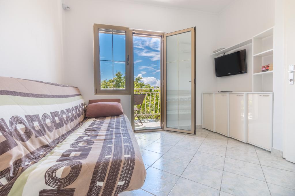 Huset ligger i en rolig del af Baška, langt nok væk fra støjende veje og den travle bymidte til, at din ferie kan være fredelig og afslappende. Du kan dog nå havet, butikker og restauranter til fods på bare 2-3 minutter. Huset er omgivet af grønne områder, og der er parkering til rådighed for alle gæster. Hele huset er dækket af WiFi. En grill i haven er tilgængelig for alle gæster.