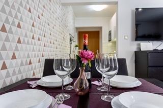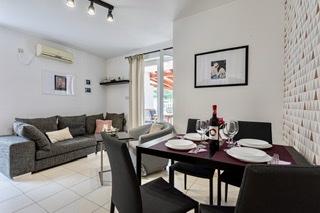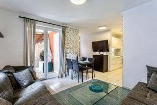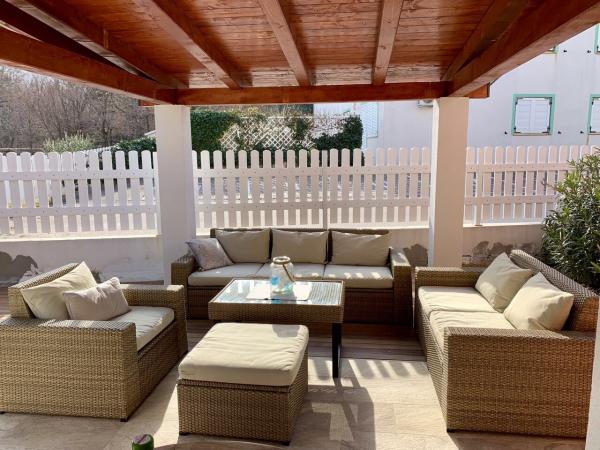 Moderne indrettet og fuldt udstyret lejlighed med stor terrasse og have. Det ligger i Baška, det mest populære sommerferiested på øen Krk, kendt for sin smukkeste sandstrand. Lejligheden er beliggende i en stille gade kun 400 m fra den største strand i Bašča - Vela strand, alle restauranter, caféer, en promenade, der omgiver den 3 km lange strand. Lejligheden består af et køkken udstyret med kogeplader, ovn, køleskab, nødvendige service, elkedel, brødrister, filterkaffemaskine. Soveværelset er udstyret med en 160x200 seng og et klædeskab. Badeværelse med brusekabine. Stuen er udstyret med et tv, en parabol, en stor sofa og et spisebord. Den anden seng, størrelse 160x200, er placeret i stuen. Lejligheden har aircondition og ubegrænset WIFI. Terrassen er udstyret med havemøbler, og i haven kan du nyde at slappe af på havestolene og nyde solens stråler. Foran bygningen er der 1 parkeringsplads pr. lejlighed.