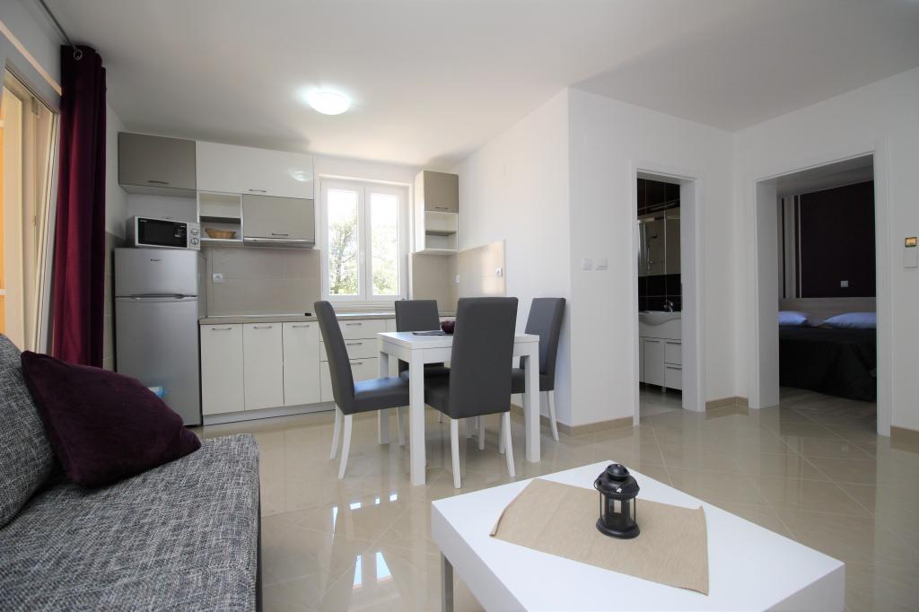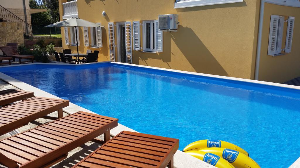 Moderne møblerede lejligheder, kun 5 minutters gang fra den smukke Vela-strand, med fælles udendørs pool og grill. Huset har 9 lejligheder udstyret med opvaskemaskine, vaskemaskine, pengeskab, aircondition, internet og satellit-tv. Hver lejlighed har én parkeringsplads. Kæledyr er ikke velkomne.