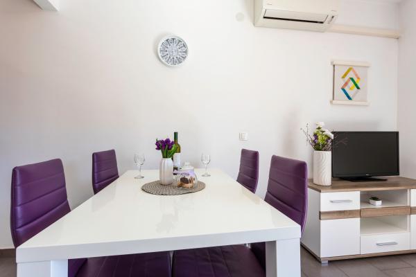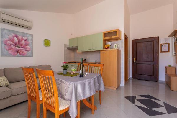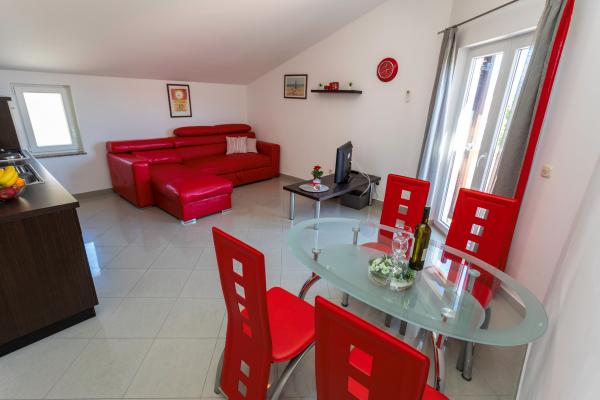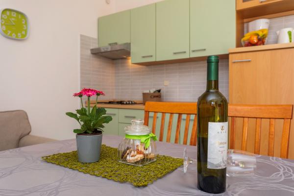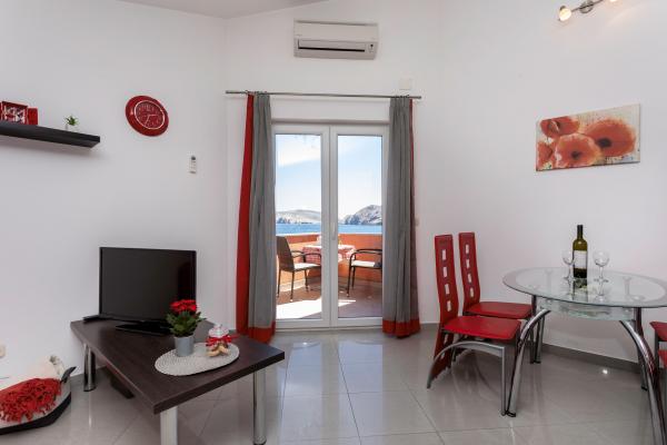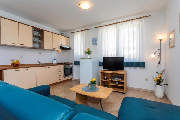 Lejlighederne er beliggende i en rolig del af Baska. Vidt kendte Bascanska sandstrand er kun 200 m. Butikken ligger 100 m og restauranter 200 m. Ud over at svømme på den smukke strand og de nærliggende mindre strande, der er en mulighed vandreture og cykling på godt afmærkede stier. I haven sikret parkering til hver lejlighed og en grill. Vi ønsker dig et behageligt ophold i vores lejligheder.