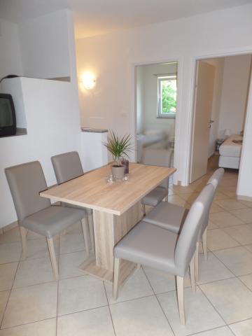 Bygningen rummer 8 lejligheder, heraf 4 etværelses i stueetagen og 4 toværelses lejligheder på 1. sal. Stuelejlighederne har egen terrasse og altan, mens lejlighederne ovenpå har egen altan. Poolen og den udendørs terrasse med gasgrill er fællesarealer, som kan benyttes af alle husets gæster.