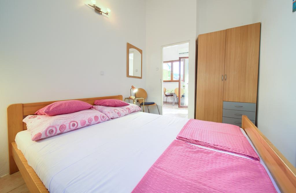 Lejlighederne Olea ligger i et roligt område af Baška i et familiehus omgivet af fyrretræer og grønne områder. Der er parkering til tre biler i husets gårdhave. Ejendommen ligger tæt på en stenstrand (180-200 m) og et vandland for børn, samt alle nødvendige faciliteter, såsom en butik, bageri, restauranter. Liggestole og parasoller kan lejes på stranden, og der er også griffoner. Den gamle, maleriske bymidte i Baška ligger 15 minutters gang derfra. Vi tilbyder 3 lejligheder: A 2+1, A 2+2 og A 4+2. Alle lejligheder er moderne og fuldt udstyrede, har TV/SAT, aircondition, grill, WiFi, balkon/terrasse med hav- eller byudsigt.