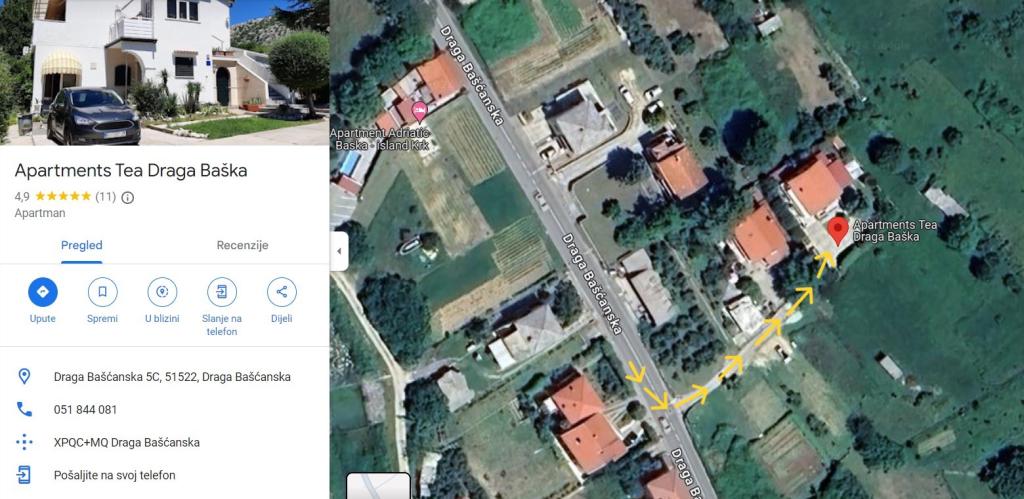 Apartments Tea ligger omkring et minuts kørsel fra centrum af Baška og Vela plaza, i en rolig del af Draga Baška.