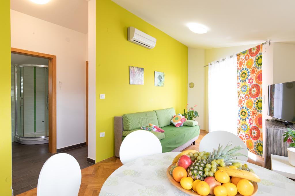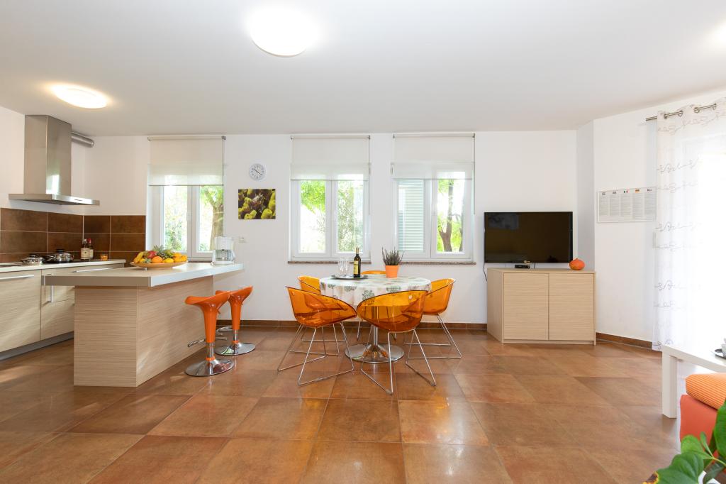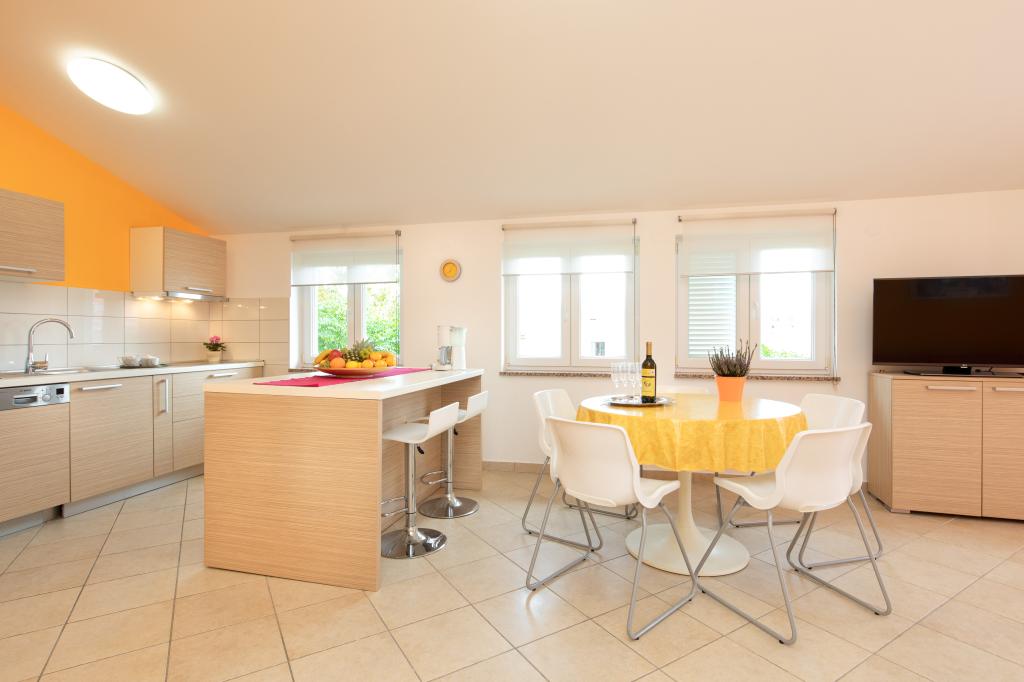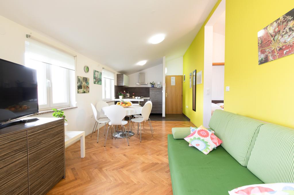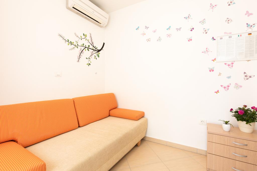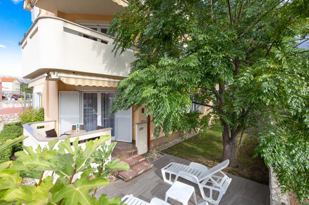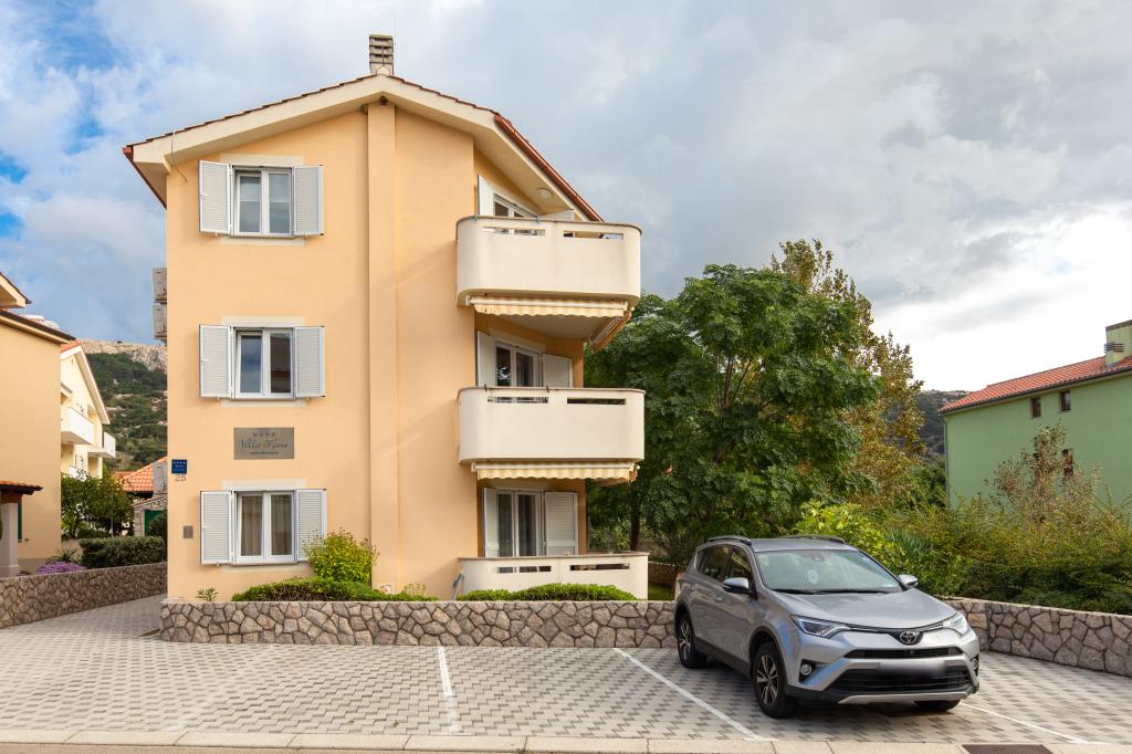 Apartments VillaMare er beliggende i en rolig del af Baška, 5-7 minutters gang til en smuk sandstrand samt selve centrum med alle de faciliteter, en turistby tilbyder. Der er 5 lejligheder i 4**** kategorien: 4 x A/4+2 til max 4-6 personer, 1 x A/2+2 til max 2-4 personer og et dejligt studie til max 1-2 personer . Alle lejligheder har aircondition og moderne udstyr, gratis WiFi, satellit-tv, 1 parkeringsplads pr. lejlighed; i gårdhaven er et haveområde med grill, et træpavillon og en legeplads tilgængelig for alle gæster. På forespørgsel er en barneseng, høj stol/fodrestol, vaskemaskine til rådighed. Alle lejligheder i tilbygningen har en komfortabel terrasse, hvor du kan slappe helt af og nyde den smukke udsigt over Baška og bjerget, der omgiver det, mens lejligheden i stueetagen har en ekstra udvidet terrasse med liggestole og direkte adgang til den smukke have ( ...og figentræer :-)