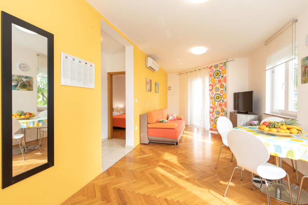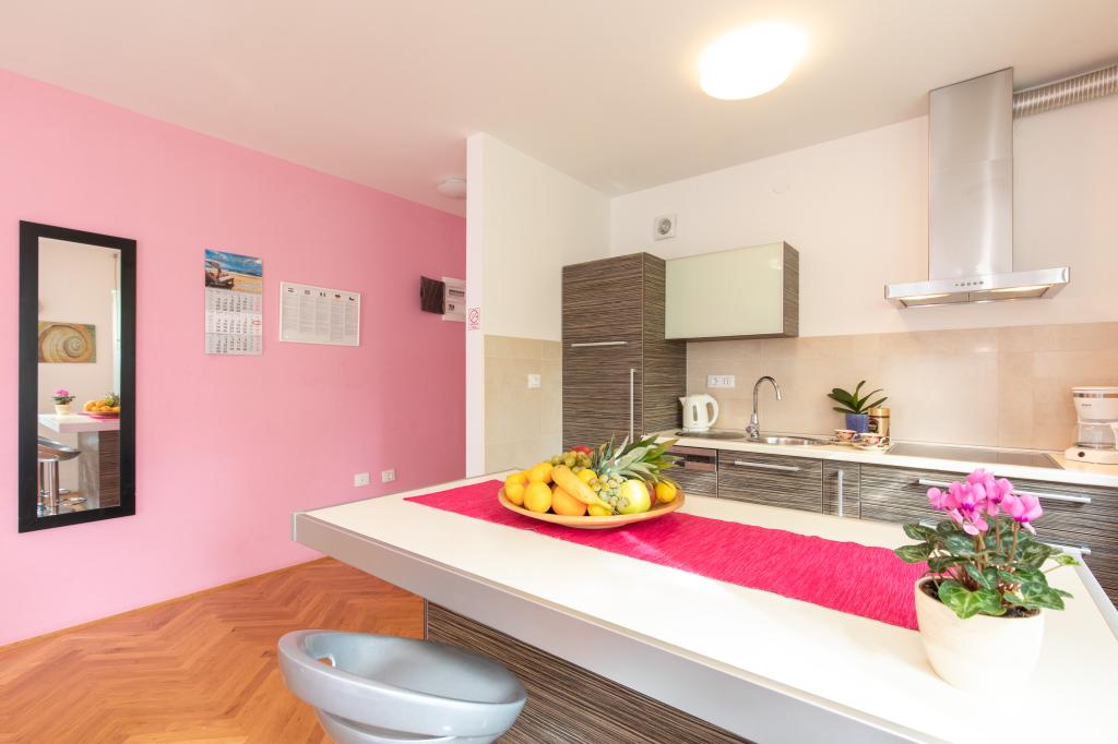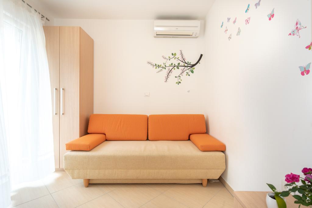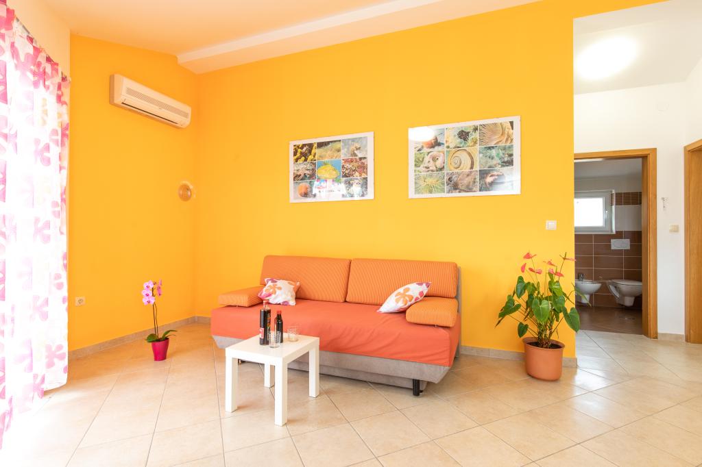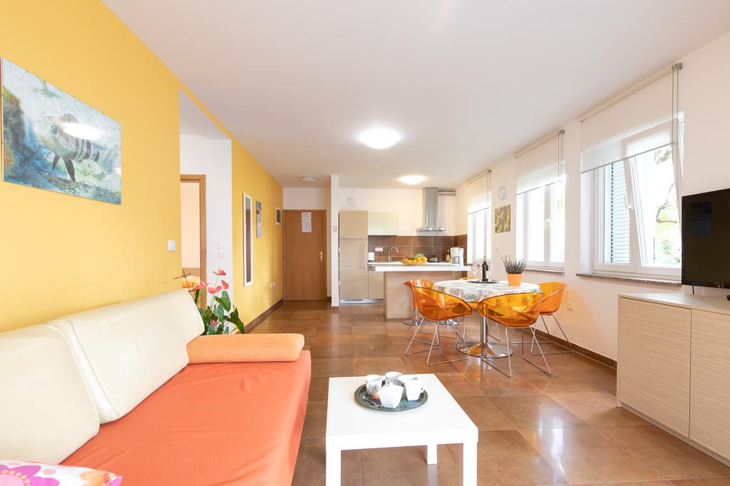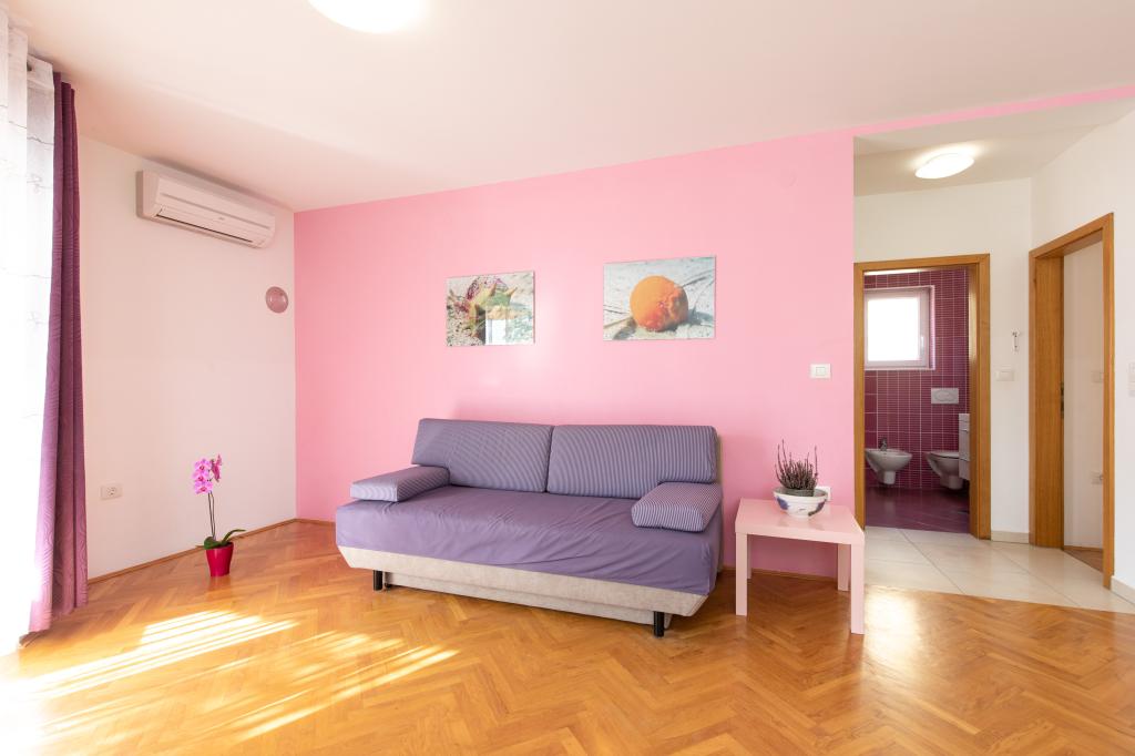 Apartments VillaMare er beliggende i en rolig del af Baška, 5-7 minutters gang til en smuk sandstrand samt selve centrum med alle de faciliteter, en turistby tilbyder. Der er 5 lejligheder i 4**** kategorien: 4 x A/4+2 til max 4-6 personer, 1 x A/2+2 til max 2-4 personer og et dejligt studie til max 1-2 personer . Alle lejligheder har aircondition og moderne udstyr, gratis WiFi, satellit-tv, 1 parkeringsplads pr. lejlighed; i gårdhaven er et haveområde med grill, et træpavillon og en legeplads tilgængelig for alle gæster. På forespørgsel er en barneseng, høj stol/fodrestol, vaskemaskine til rådighed. Alle lejligheder i tilbygningen har en komfortabel terrasse, hvor du kan slappe helt af og nyde den smukke udsigt over Baška og bjerget, der omgiver det, mens lejligheden i stueetagen har en ekstra udvidet terrasse med liggestole og direkte adgang til den smukke have ( ...og figentræer :-)