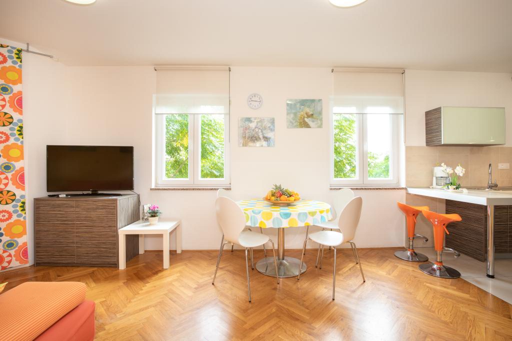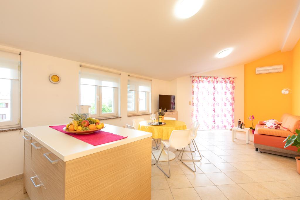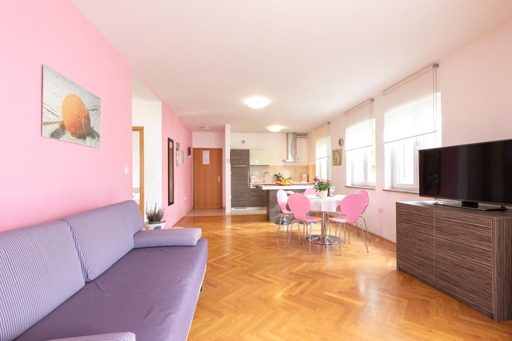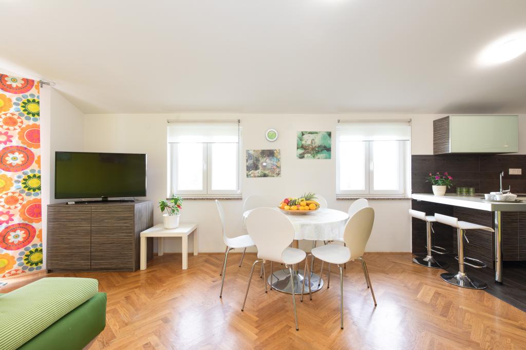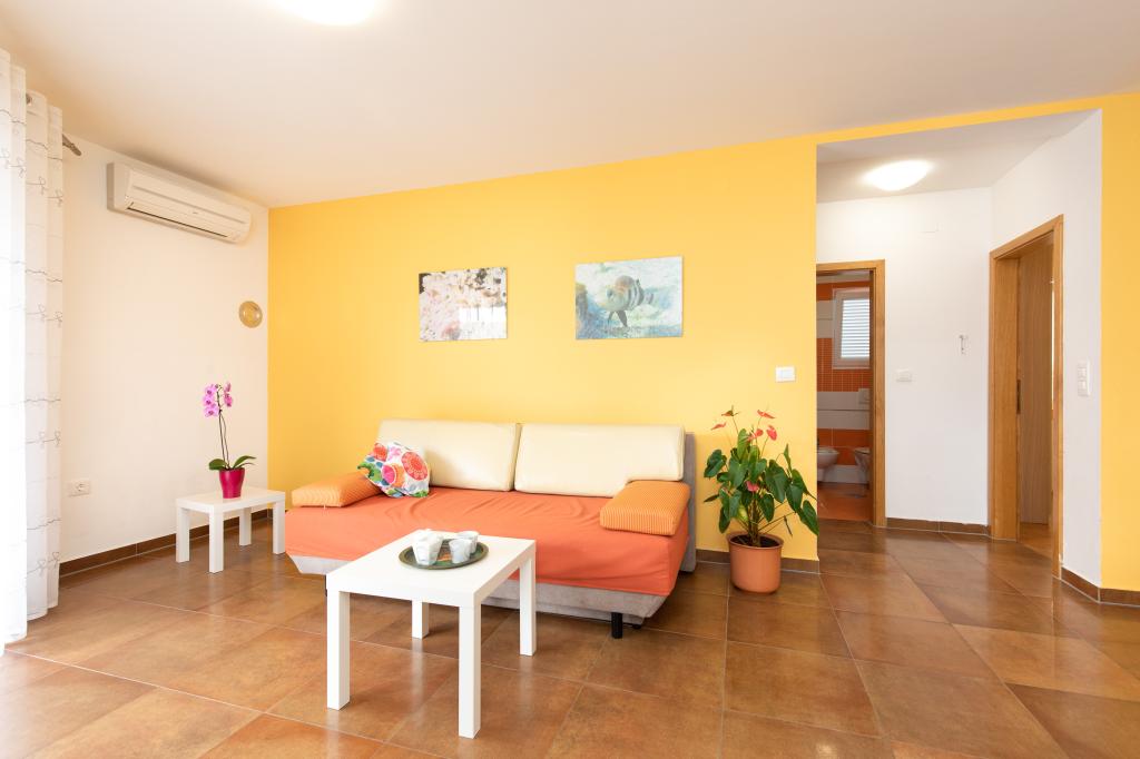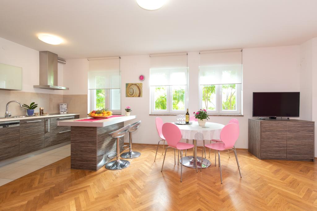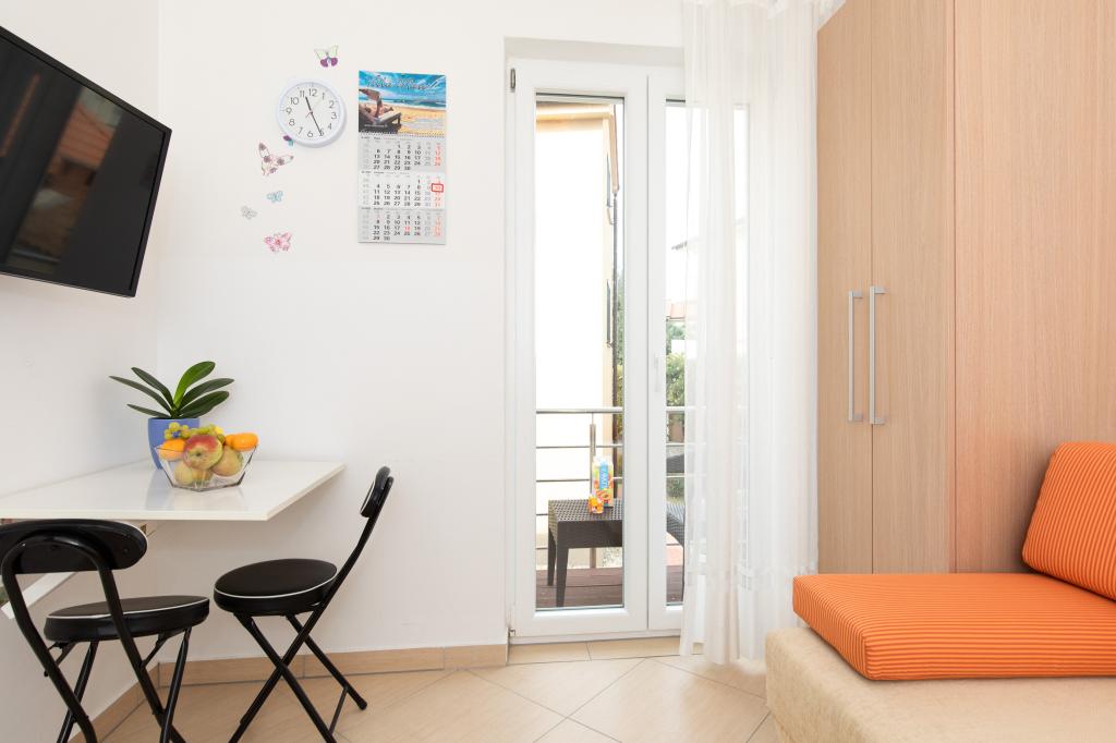 Apartments VillaMare er beliggende i en rolig del af Baška, 5-7 minutters gang til en smuk sandstrand samt selve centrum med alle de faciliteter, en turistby tilbyder. Der er 5 lejligheder i 4**** kategorien: 4 x A/4+2 til max 4-6 personer, 1 x A/2+2 til max 2-4 personer og et dejligt studie til max 1-2 personer . Alle lejligheder har aircondition og moderne udstyr, gratis WiFi, satellit-tv, 1 parkeringsplads pr. lejlighed; i gårdhaven er et haveområde med grill, et træpavillon og en legeplads tilgængelig for alle gæster. På forespørgsel er en barneseng, høj stol/fodrestol, vaskemaskine til rådighed. Alle lejligheder i tilbygningen har en komfortabel terrasse, hvor du kan slappe helt af og nyde den smukke udsigt over Baška og bjerget, der omgiver det, mens lejligheden i stueetagen har en ekstra udvidet terrasse med liggestole og direkte adgang til den smukke have ( ...og figentræer :-)