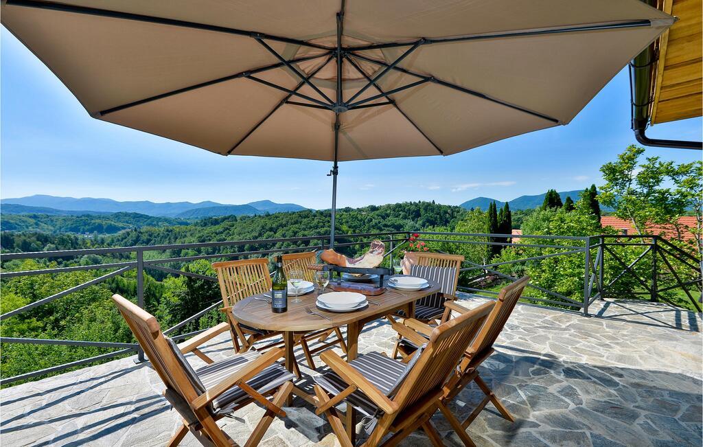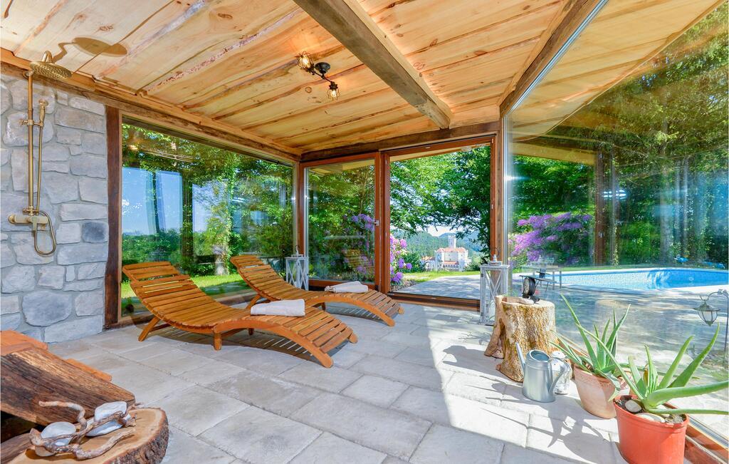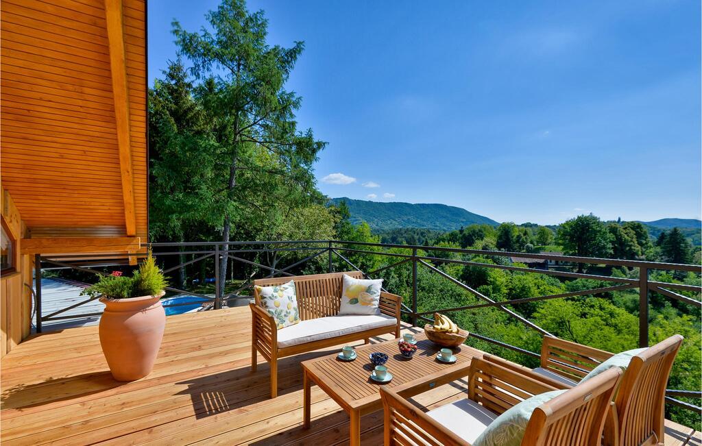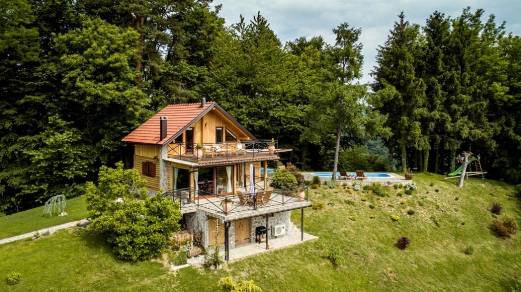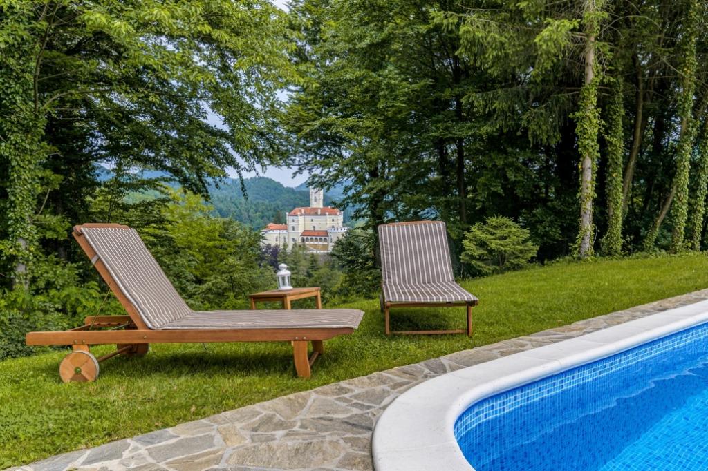 På bakken ved siden af Trakošćan-slottet ligger dette skønne feriehus med swimmingpool og indendørs wellness. Huset er mest dekoreret med sin fremragende beliggenhed på en bakke, hvorfra udsigten når det nærliggende Trakošćan slot og dens park-skov. Det er ideelt til en ferie for en familie, der elsker naturen. I stueetagen er der indendørs wellness med hydromassage og sauna, hvilket gør huset til et ideelt valg om vinteren, og om sommeren kan du finde en forfriskning i den udendørs pool. I husets stueetage er der stue med køkken, spisestue og badeværelse, og på første sal er der to soveværelser.