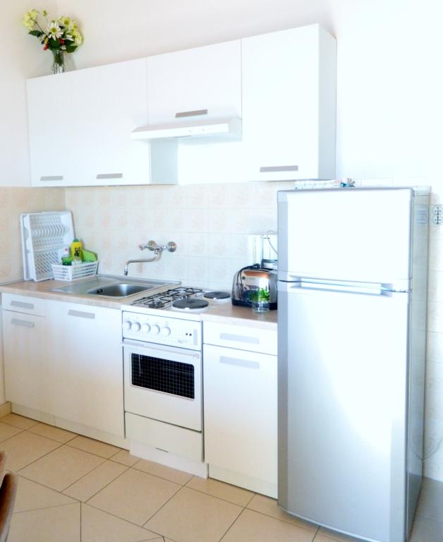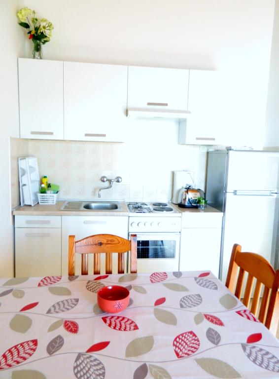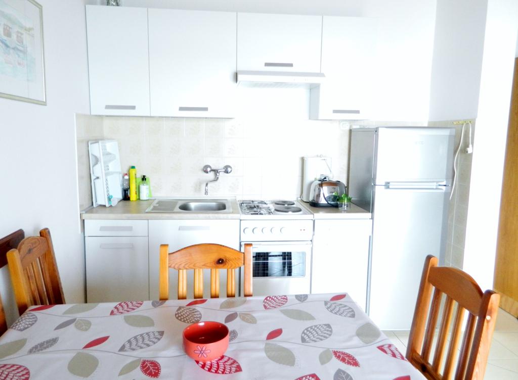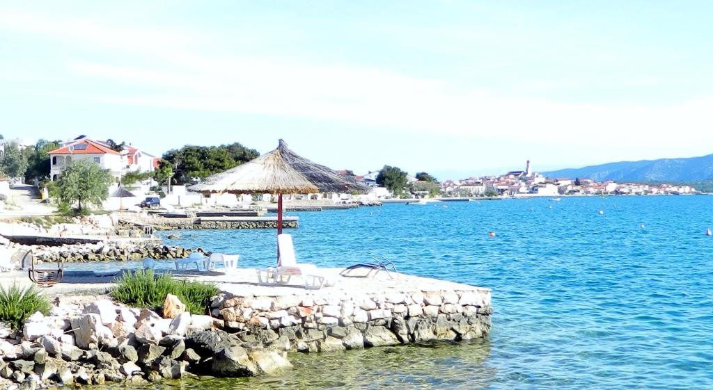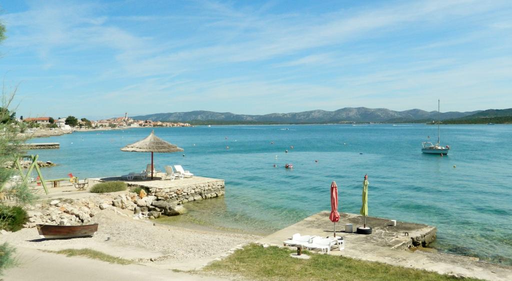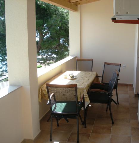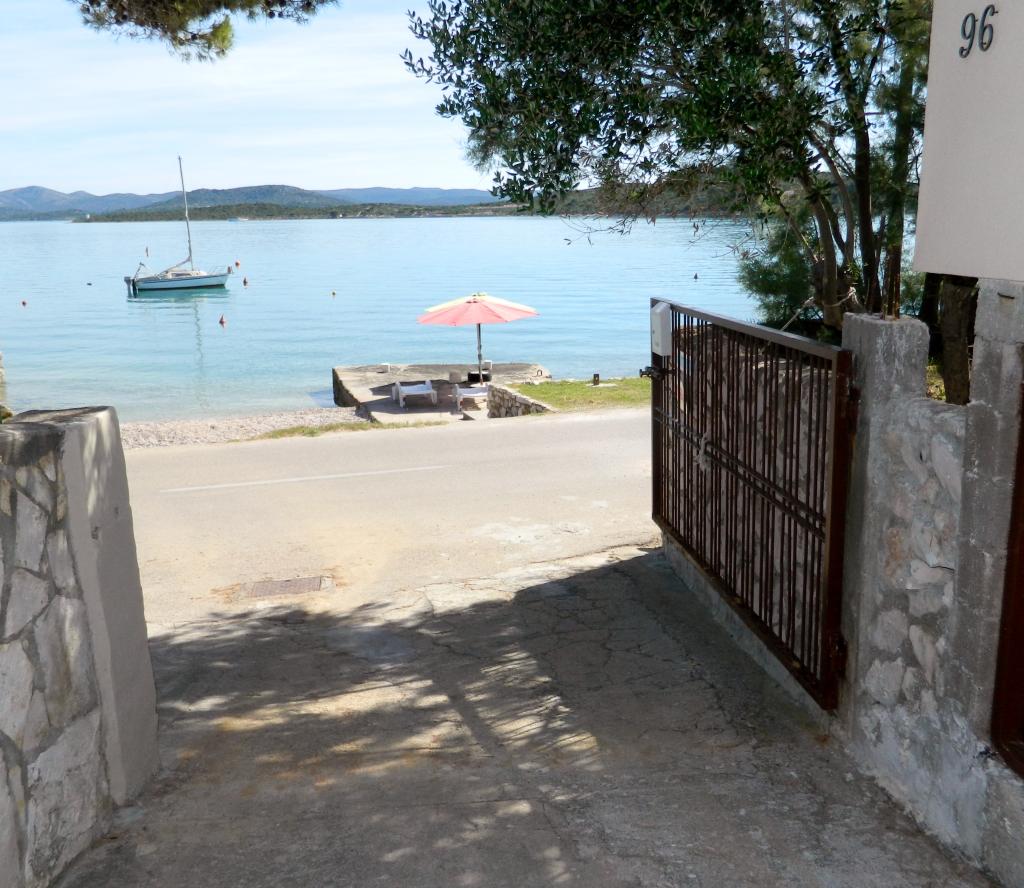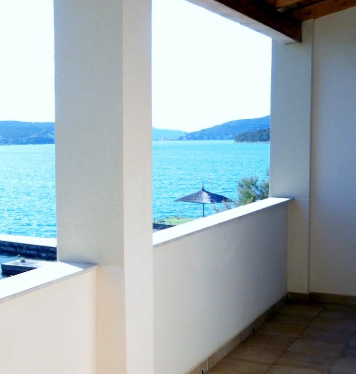 Lejligheden er velegnet til at rumme to par eller en familie på fire. Lejligheden er beliggende på første sal i et familiehus, første række til havet i Betina. Lejligheden er komfortabel og rummelig. Den består af to soveværelser, en stue, et køkken og et badeværelse. Hvert værelse har to senge (dobbeltseng). I stuen er der sofa, tv og trådløs internetadgang. Køkkenet er udstyret til madlavning (komfur, ovn, køleskab, espressomaskine, vandvarmer, brødrister, mixer, mikroovn, bestik og køkkenredskaber). Hvert værelse har sit eget aircondition. Fra stuen er der udgang til en stor terrasse med havudsigt. I gården bag huset er der en parkeringsplads til en bil, en udendørs bruser og en udendørs grill. Foran huset er der en strand til svømning og solbadning, parasoller og liggestole. Byen Betina ligger omkring 800 meter fra lejligheden, 10 minutters let gåtur langs havet.