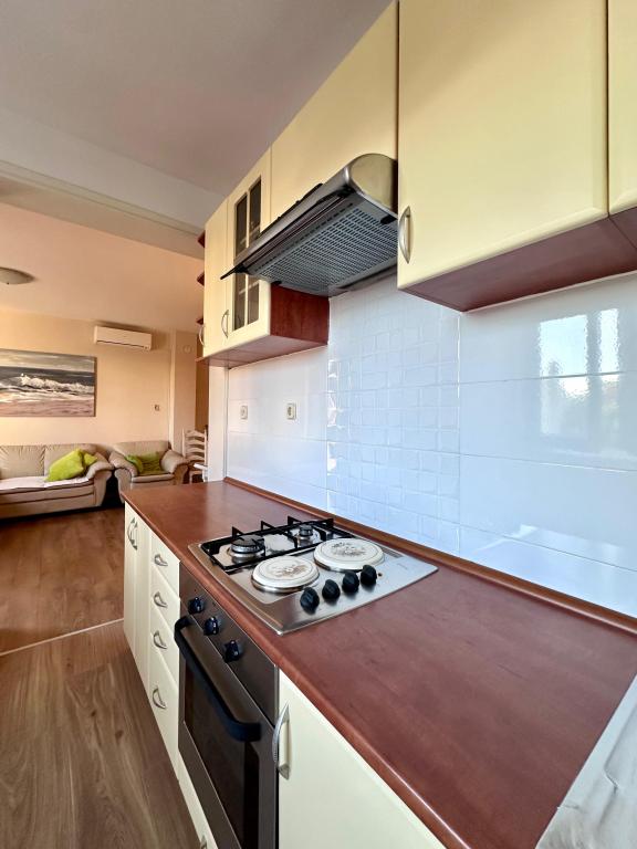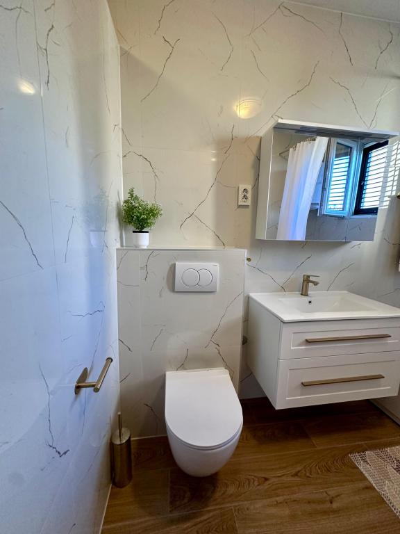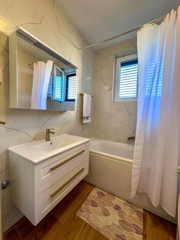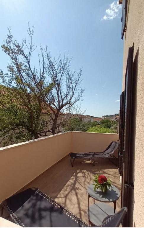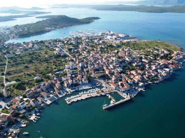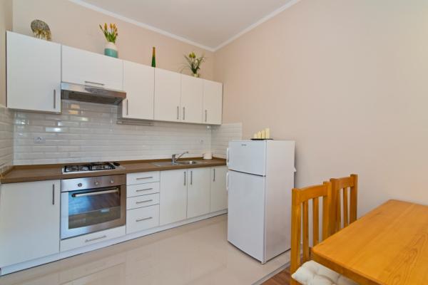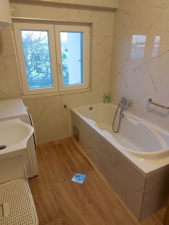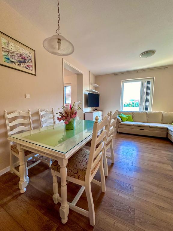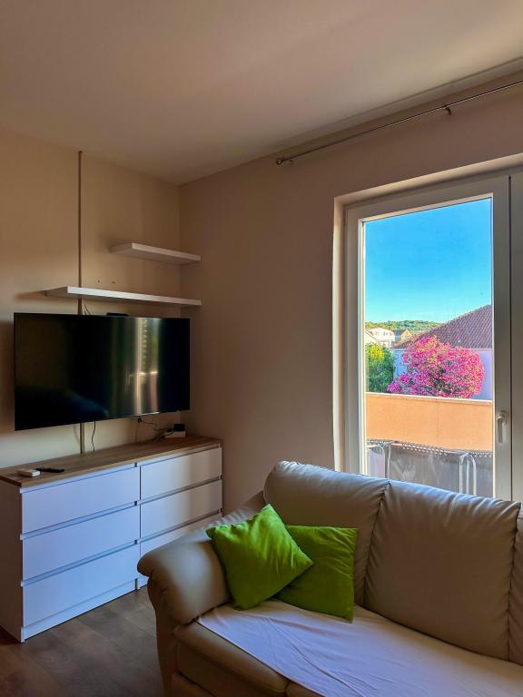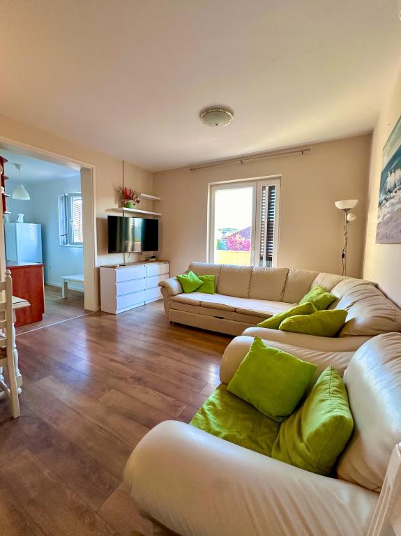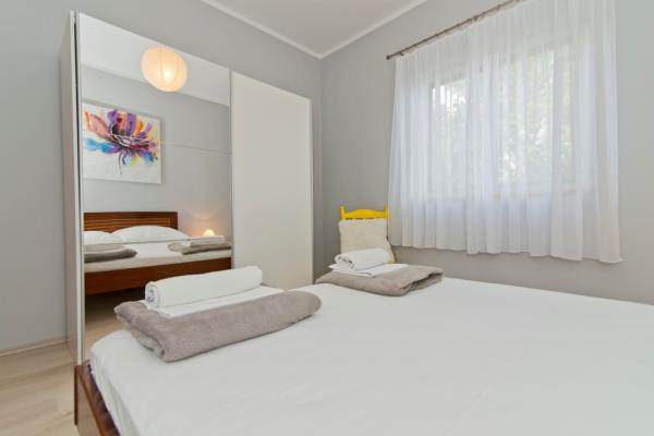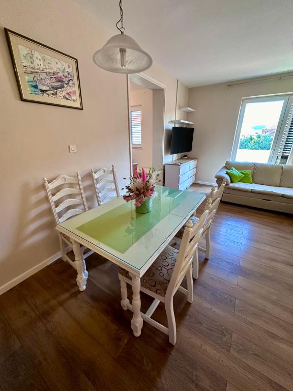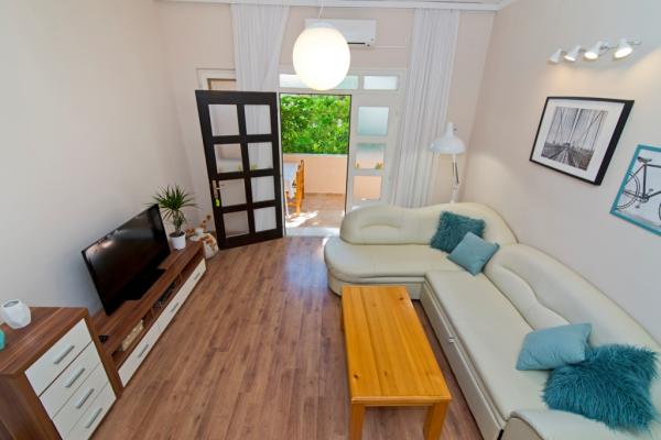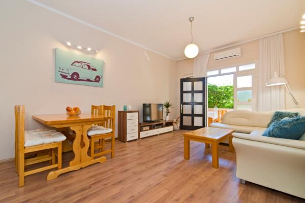 Lejlighedshuset ligger i en rolig del af Betina, omgivet af grønne områder. Huset har 4 lejligheder og ligger kun 5 minutters gang fra centrum og 10 minutters gang fra stranden. Gæsterne har gratis parkering og kan benytte grillen i haven.