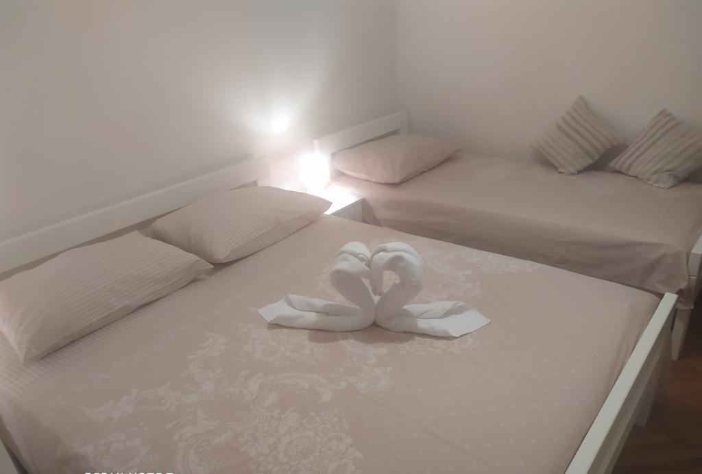 Lejlighederne \MARIJA\ er fuldt udstyrede og ligger i et familiehus beliggende i en rolig del af byen. På første sal er der lejlighed 2 (35 m2) med to altaner, køkken, soveværelse med dobbeltseng, bad/toilet, internet og aircondition. I stueplan er der lejlighed 1 (67 m2) med 2 soveværelser, køkken med spisestue, bad/toilet, stor terrasse med grill og lejligheden har aircondition og internet. Parkering er placeret lige ved siden af huset og er gratis. Turistskat er inkluderet i prisen. Ejendommen ligger 5 minutters gang fra butikken og 10 minutters gang fra sand- og stenstranden Zdrače med en legeplads. Den lille by Betina er præget af middelhavsarkitekturen i dens gamle bymidte. Gamle stengader med buer og hvælvinger fører dig til toppen, hvor Fransk kirke fra det 15. århundrede ligger, som er blevet udvidet flere gange. På grund af det maleriske og bevarelse af det historiske centrum er byen beskyttet som et kulturminde. Du vil blive overrasket over Betina Wooden Shipbuilding Museum.