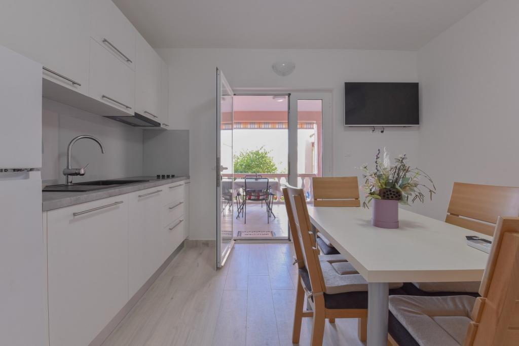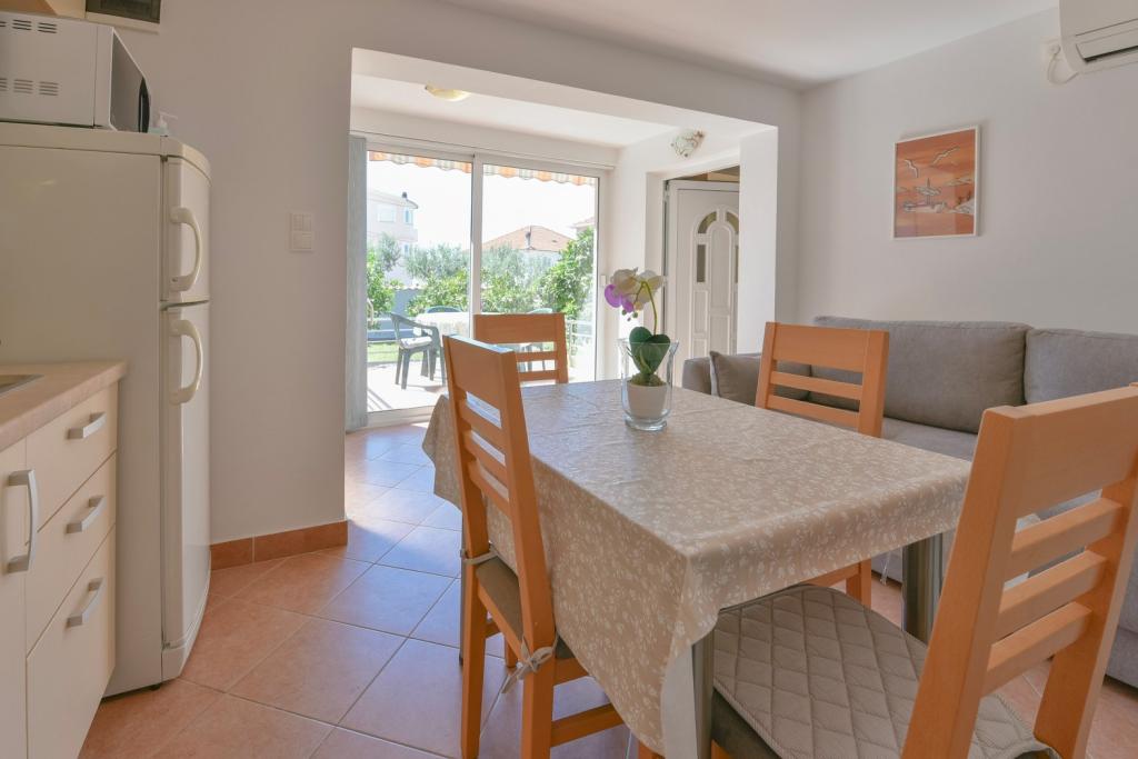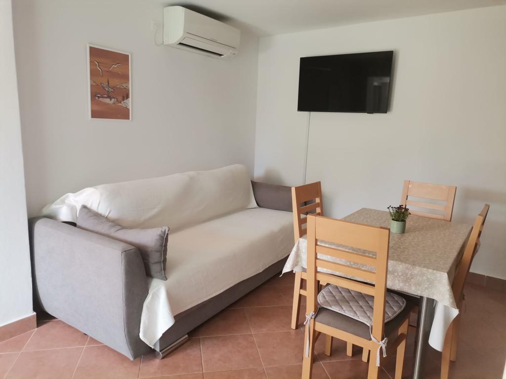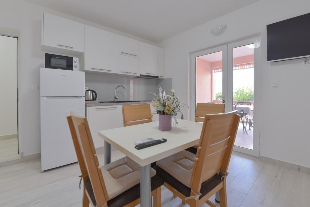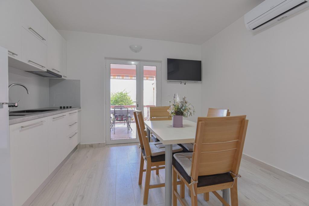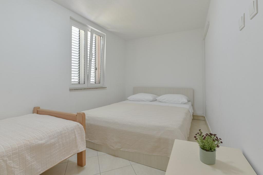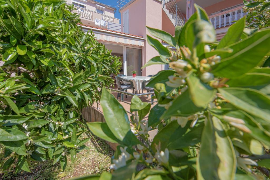 Tillykke til Frleti-familien! De tog imod os varmt og venligt. Lejligheden var pæn, ren, udstyret med service, sengetøj, TV, aircondition og WiFi. Ligesom det er på billederne, sådan er det i virkeligheden. Lejligheden er rummelig, pænt møbleret, sengene er behagelige at sove. Det har en stor terrasse med fortelt, hvorfra du kan nyde udsigten over Frlete-familiens middelhavshave. En lang række velholdte strande med klart blåt hav og smukt udsmykkede promenader langs havet med et stort antal restauranter og barer. Ideel til at flygte fra støj og hverdagsliv. Fred, stilhed med lyden af græshopper, mågeskrig og lyden af havet. Ren hedonisme!