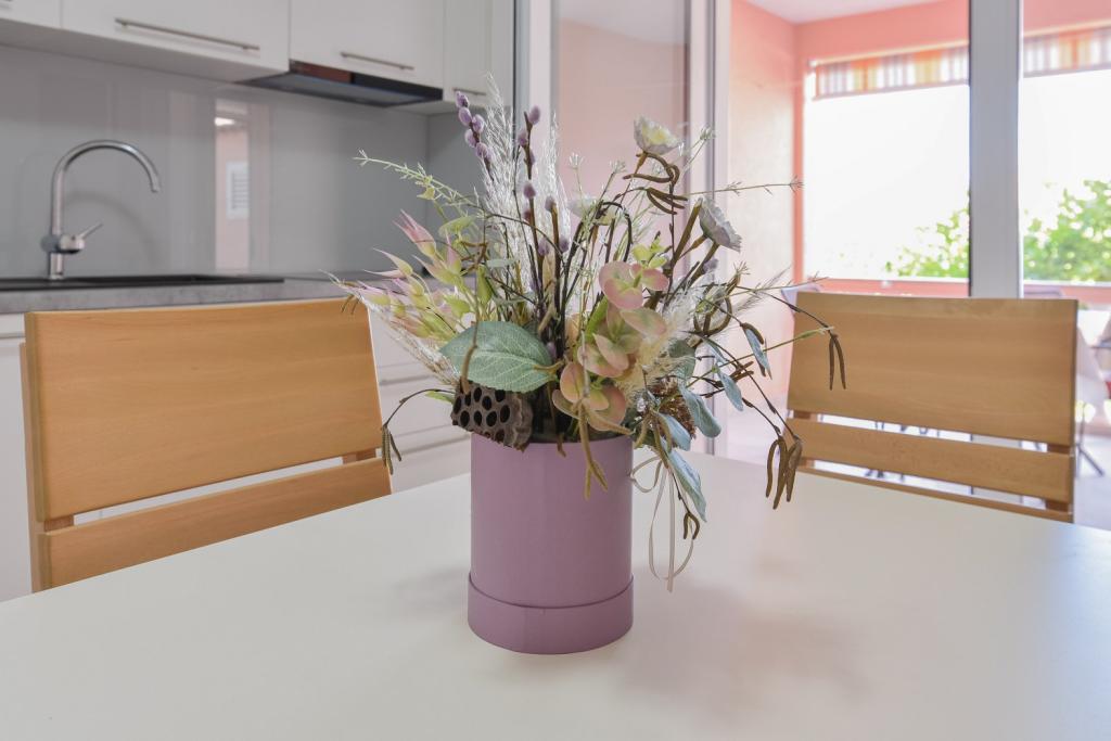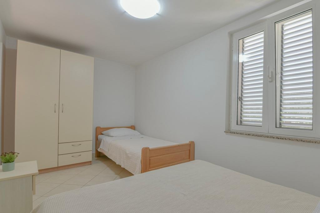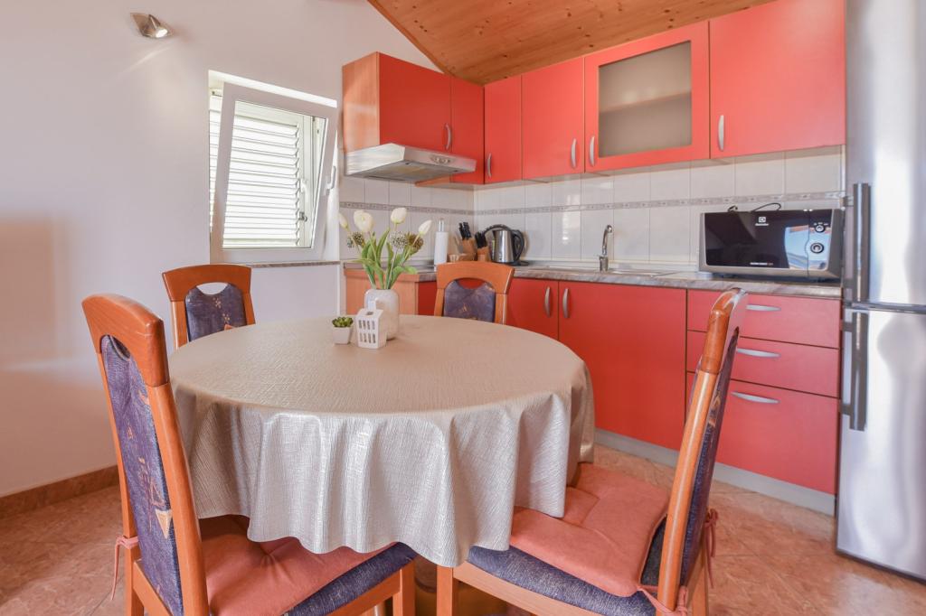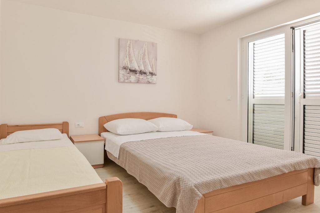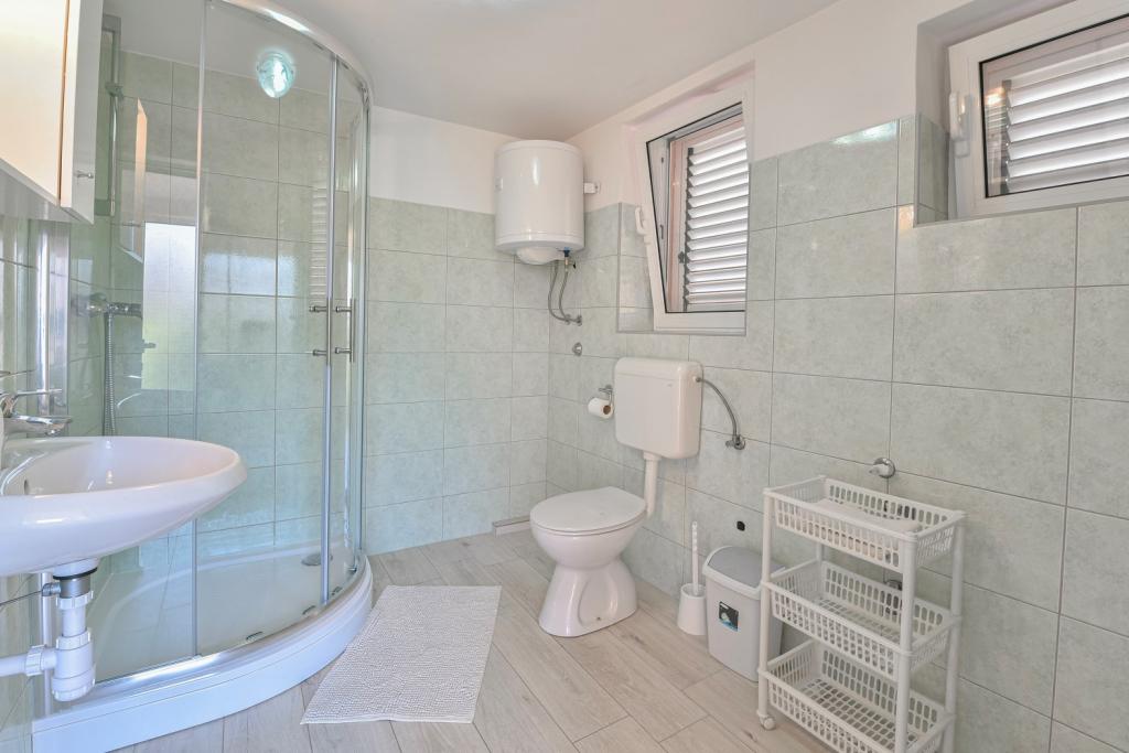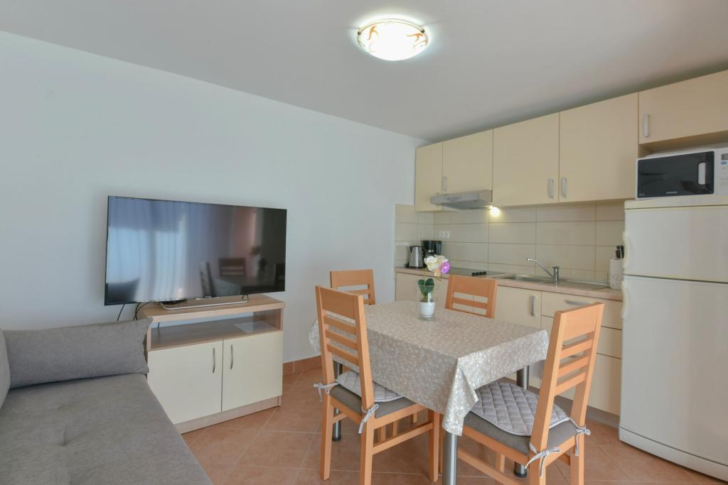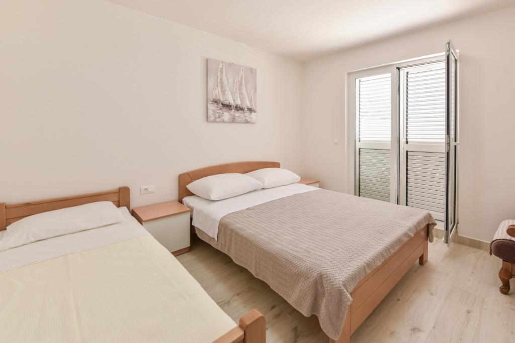 Tillykke til Frleti-familien! De tog imod os varmt og venligt. Lejligheden var pæn, ren, udstyret med service, sengetøj, TV, aircondition og WiFi. Ligesom det er på billederne, sådan er det i virkeligheden. Lejligheden er rummelig, pænt møbleret, sengene er behagelige at sove. Det har en stor terrasse med fortelt, hvorfra du kan nyde udsigten over Frlete-familiens middelhavshave. En lang række velholdte strande med klart blåt hav og smukt udsmykkede promenader langs havet med et stort antal restauranter og barer. Ideel til at flygte fra støj og hverdagsliv. Fred, stilhed med lyden af græshopper, mågeskrig og lyden af havet. Ren hedonisme!
