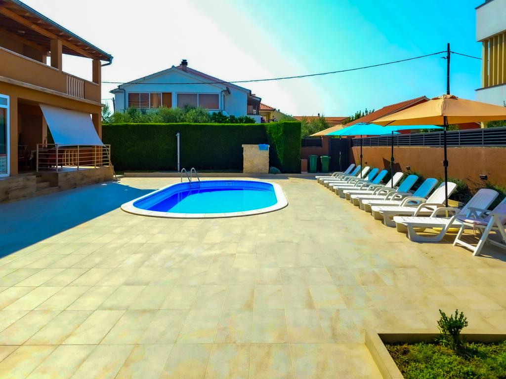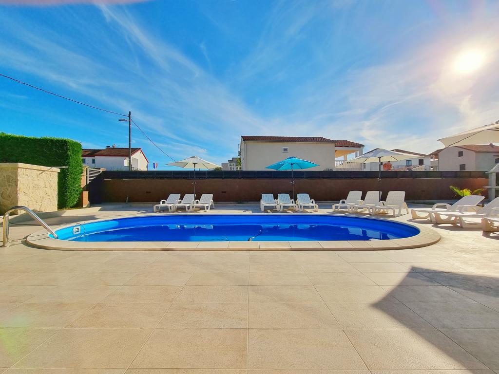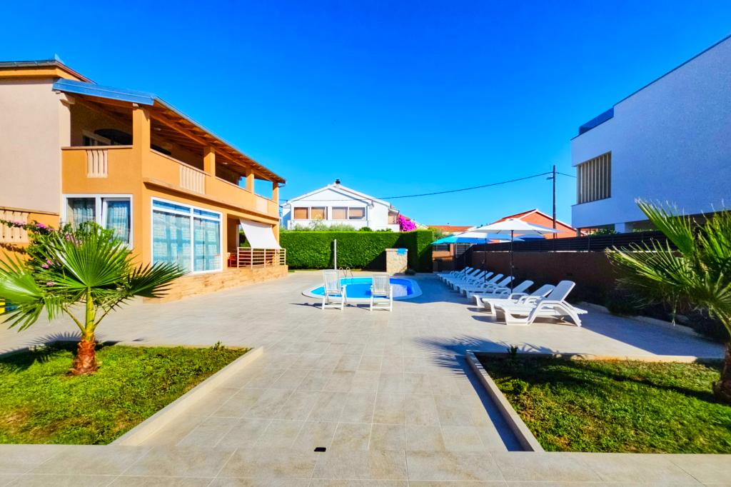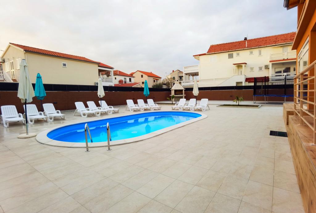 Beliggende i Bibinje, nær Zadar, er dette hus ideelt til en ferie! Kun 5 minutters gang adskiller dig fra strandene, den gamle landsby med restauranter og caféer, mens bageriet, butikkerne og lokale frugt- og vinproducenter er 2 minutter væk. Huset er indhegnet (2 m højt) for privatlivets fred og har to lejligheder, hver på 90 m², med 2 soveværelser, køkken, stue, 2 badeværelser og store terrasser. I gården er der en stor parkeringsplads, en swimmingpool (8x4 m) og en grill til fælles brug. Besøg nærliggende Zadar, Havorgelet og nationalparker for uforglemmelige udflugter! Svømmehallen er i drift fra 15.05.2025 til 15.10.2025.
