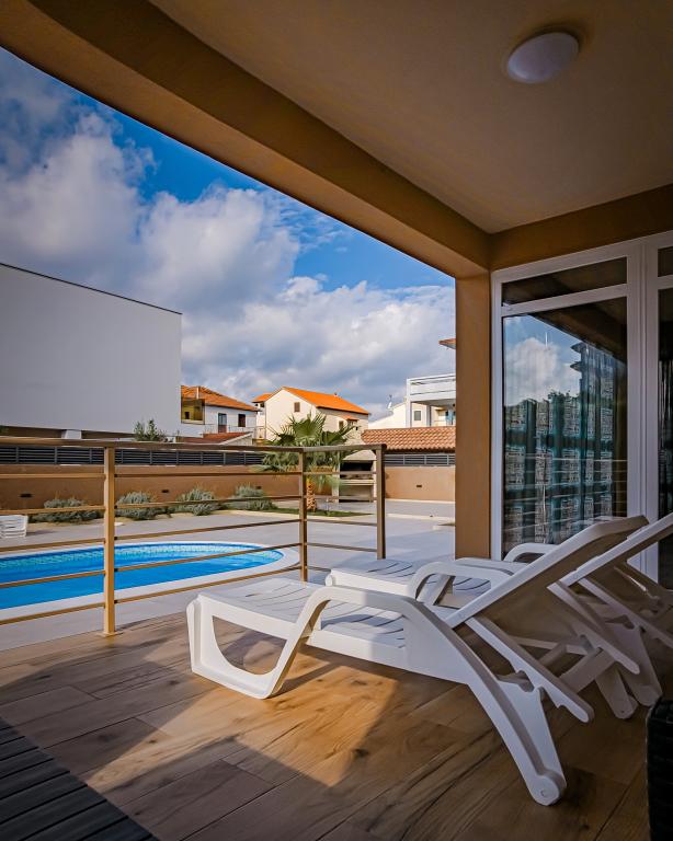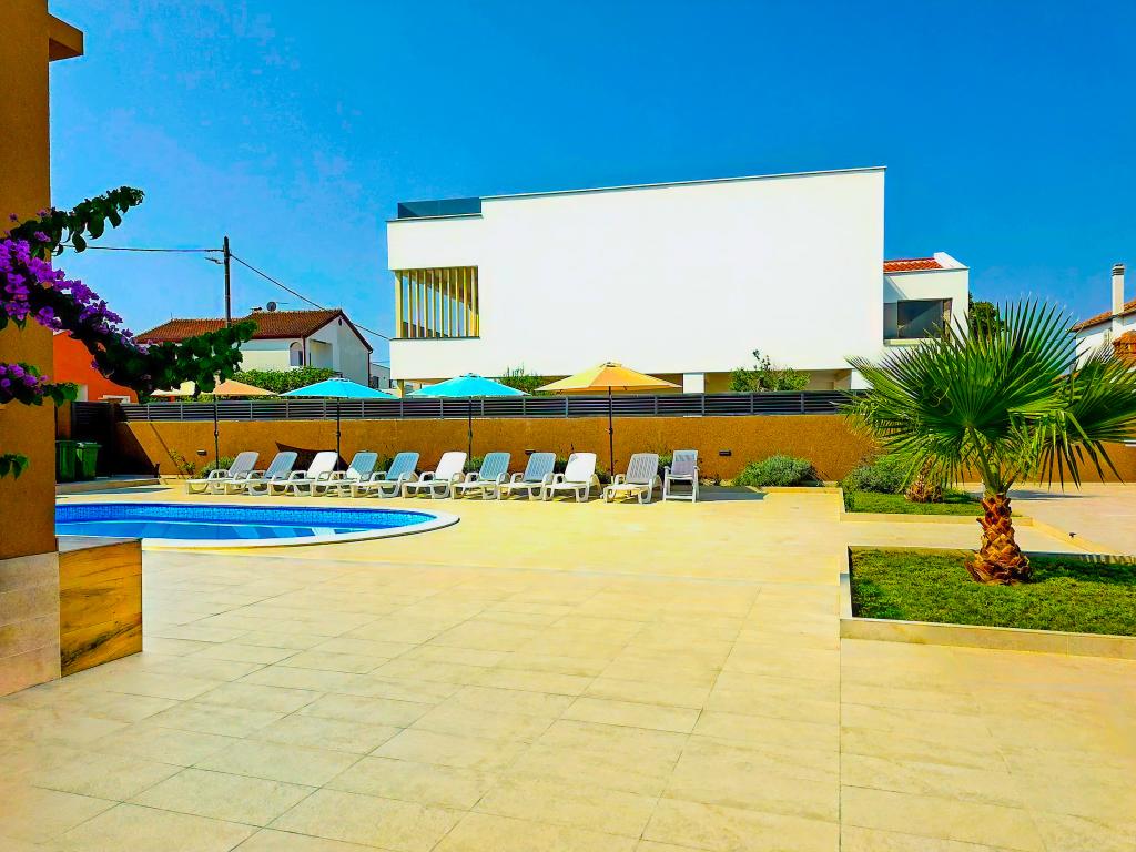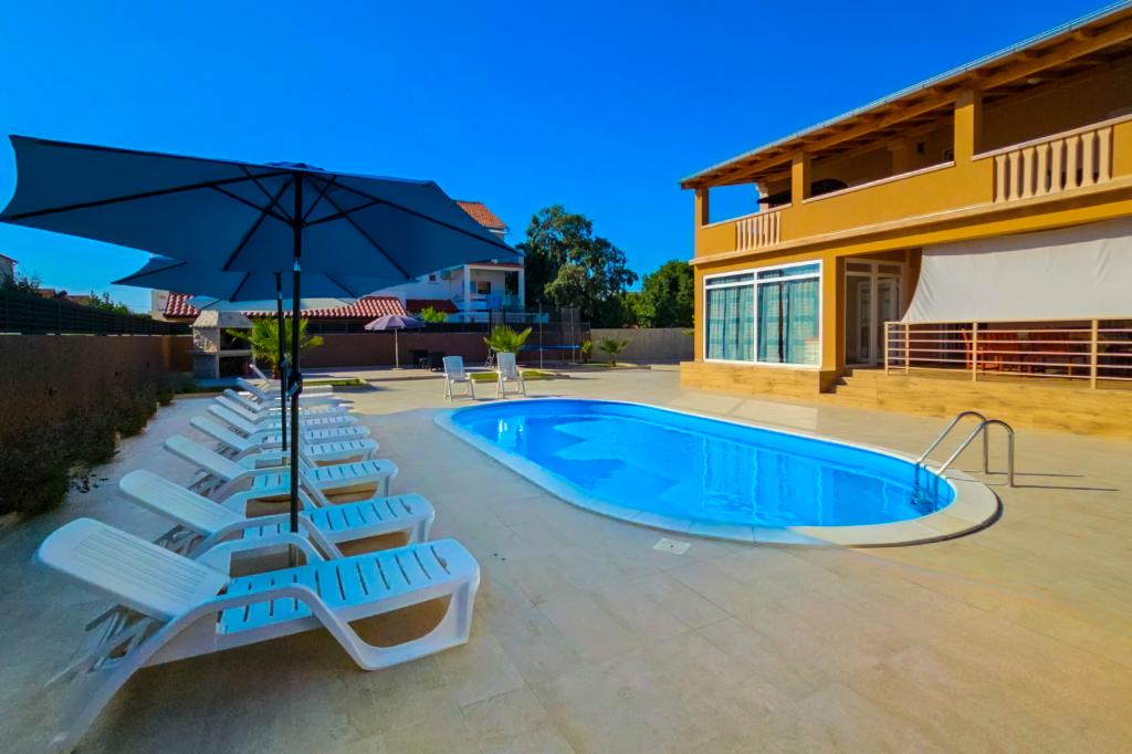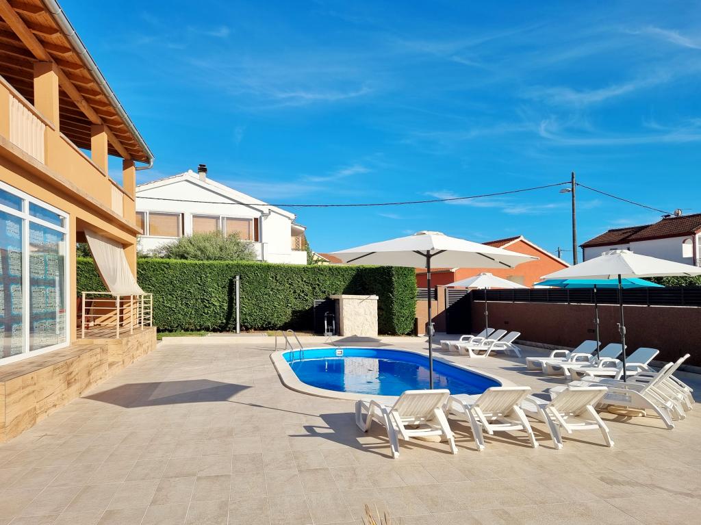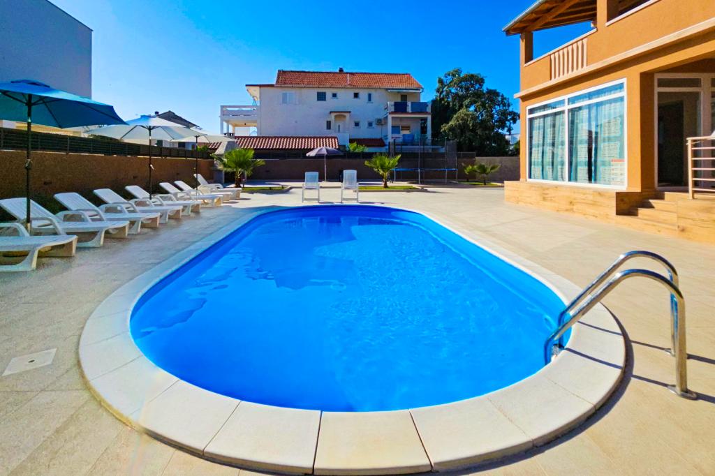 Beliggende i Bibinje, nær Zadar, er dette hus ideelt til en ferie! Kun 5 minutters gang adskiller dig fra strandene, den gamle landsby med restauranter og caféer, mens bageriet, butikkerne og lokale frugt- og vinproducenter er 2 minutter væk. Huset er indhegnet (2 m højt) for privatlivets fred og har to lejligheder, hver på 90 m², med 2 soveværelser, køkken, stue, 2 badeværelser og store terrasser. I gården er der en stor parkeringsplads, en swimmingpool (8x4 m) og en grill til fælles brug. Besøg nærliggende Zadar, Havorgelet og nationalparker for uforglemmelige udflugter! Svømmehallen er i drift fra 15.05.2025 til 15.10.2025.